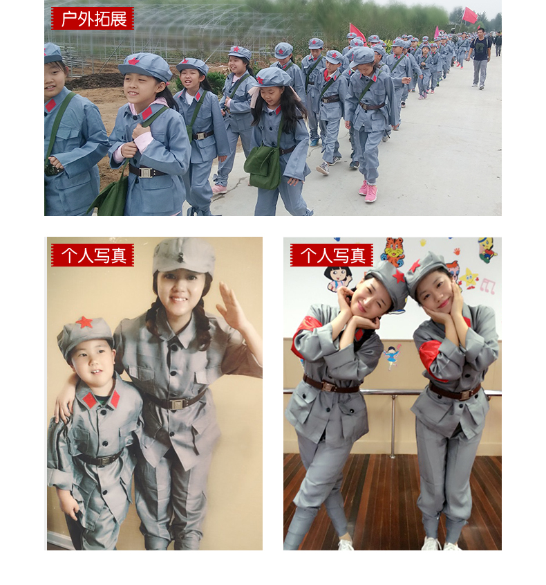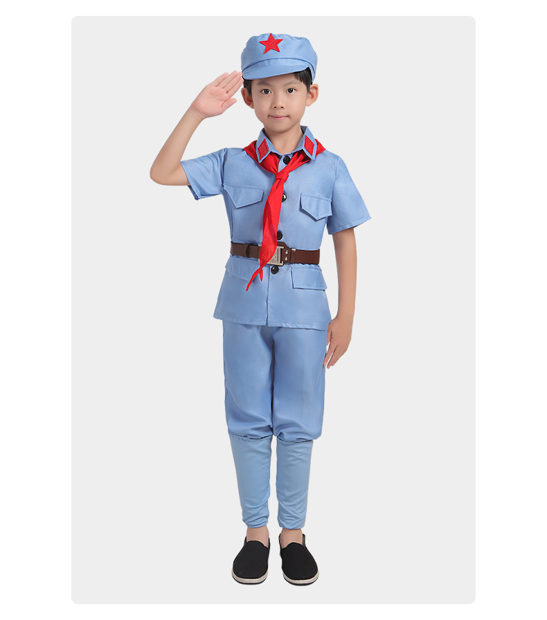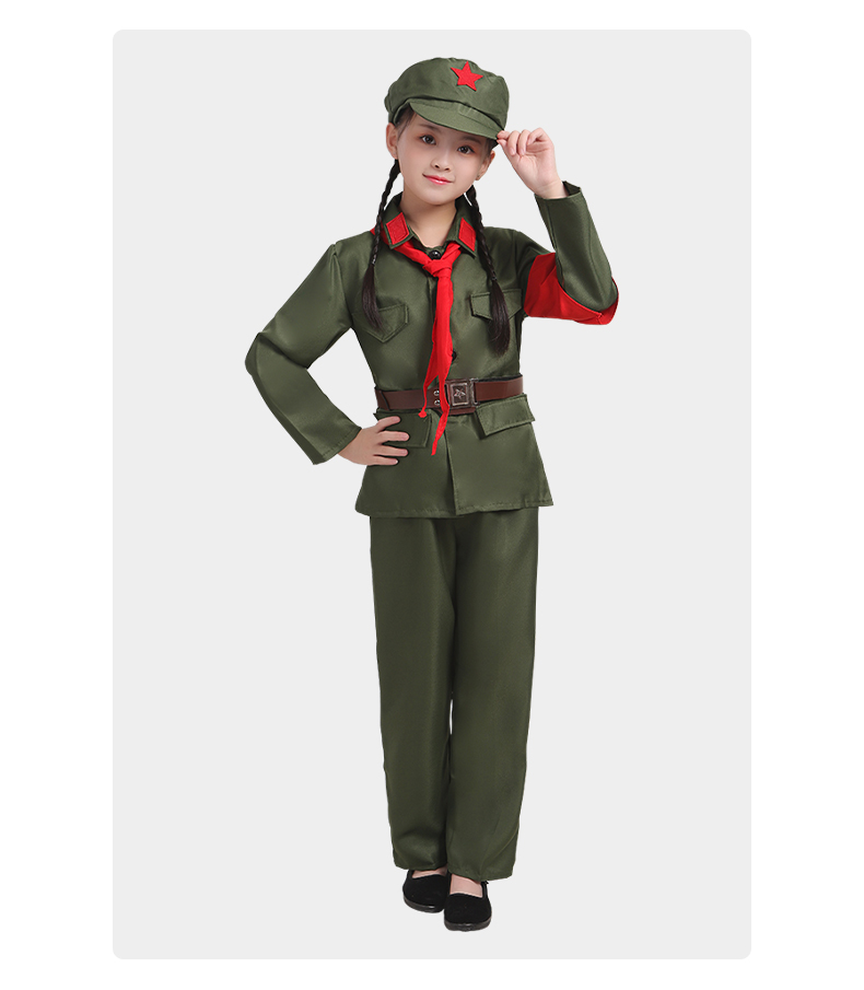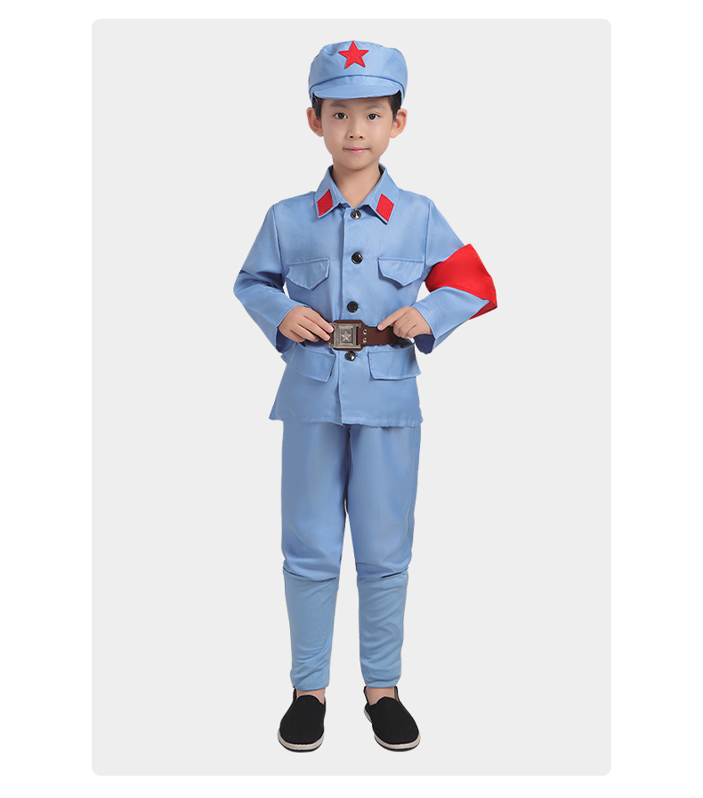 小红军演出服装,质地柔软亲肤,知名设计师原创设计,套装+八角帽+红领巾+腰带,孩子穿上秒变小红军、小八路~~