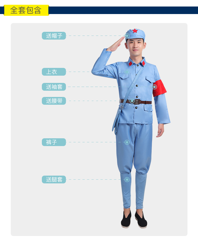 小红军八路军衣服抗战儿童演出服装成人红卫兵表演服解放红星闪闪