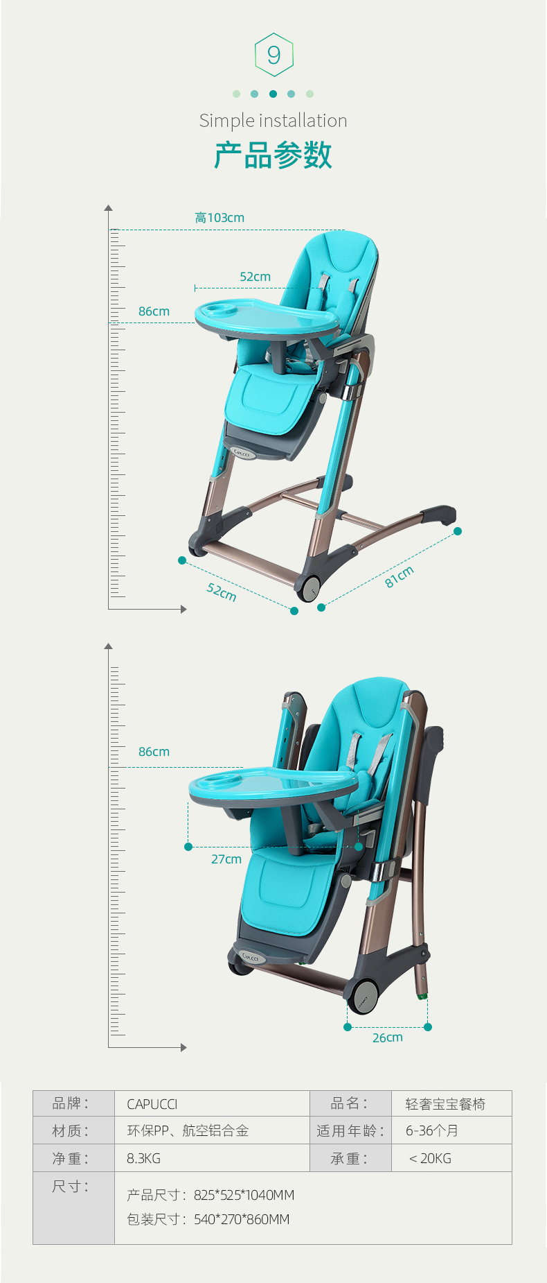 【美国潮牌,capucci】超轻便携式婴儿车,可单手收车,单手展开,可上飞机,实用便携,高度七档可调,可躺可坐,超强承重,稳字当头,座椅柔软,食品级PP餐盘,让宝宝养成独立吃饭好习惯【赠运费险】