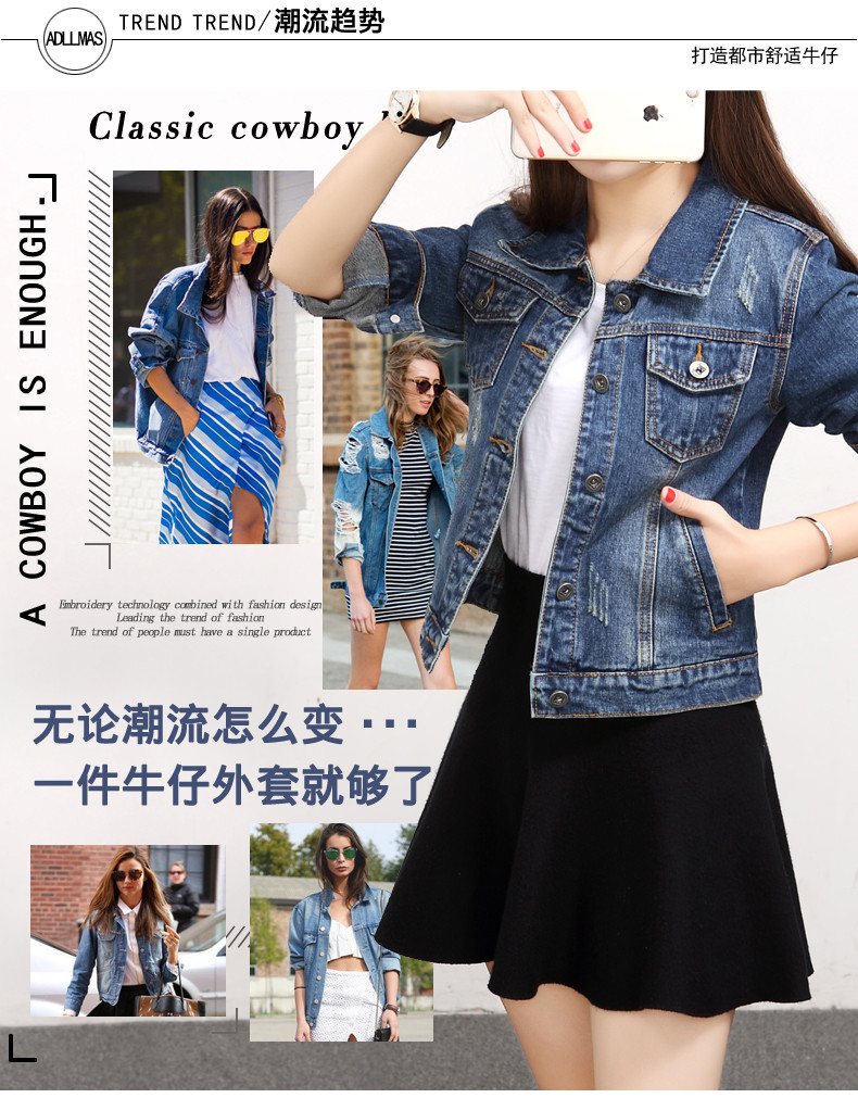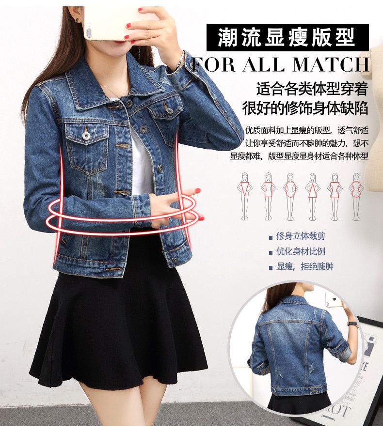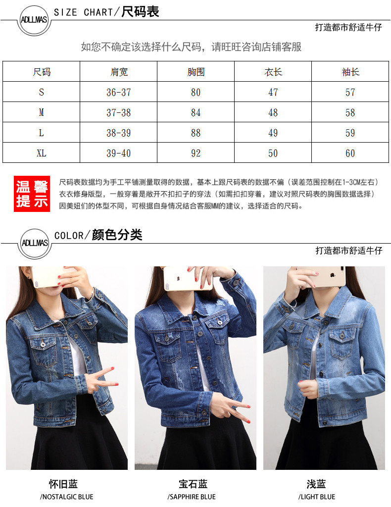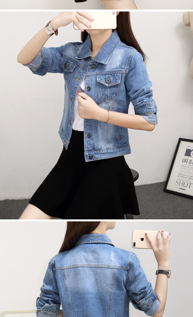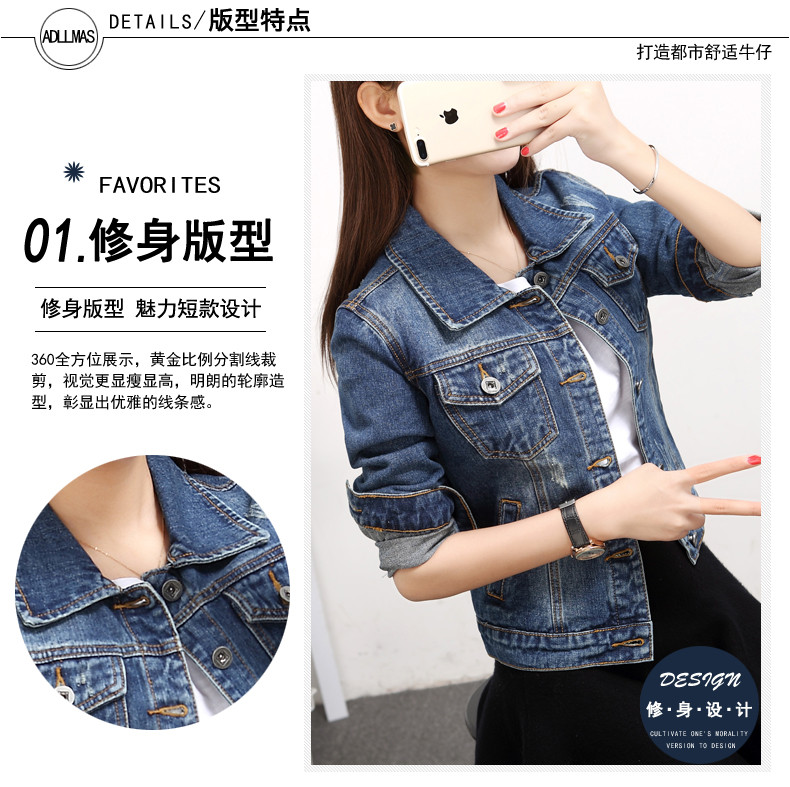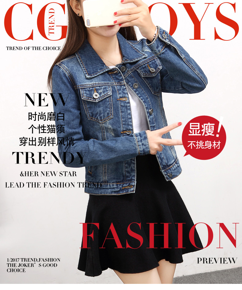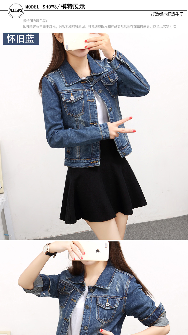 2019春秋季韩版短款修身牛仔外套女学生韩版大码复古牛仔衣服女潮
