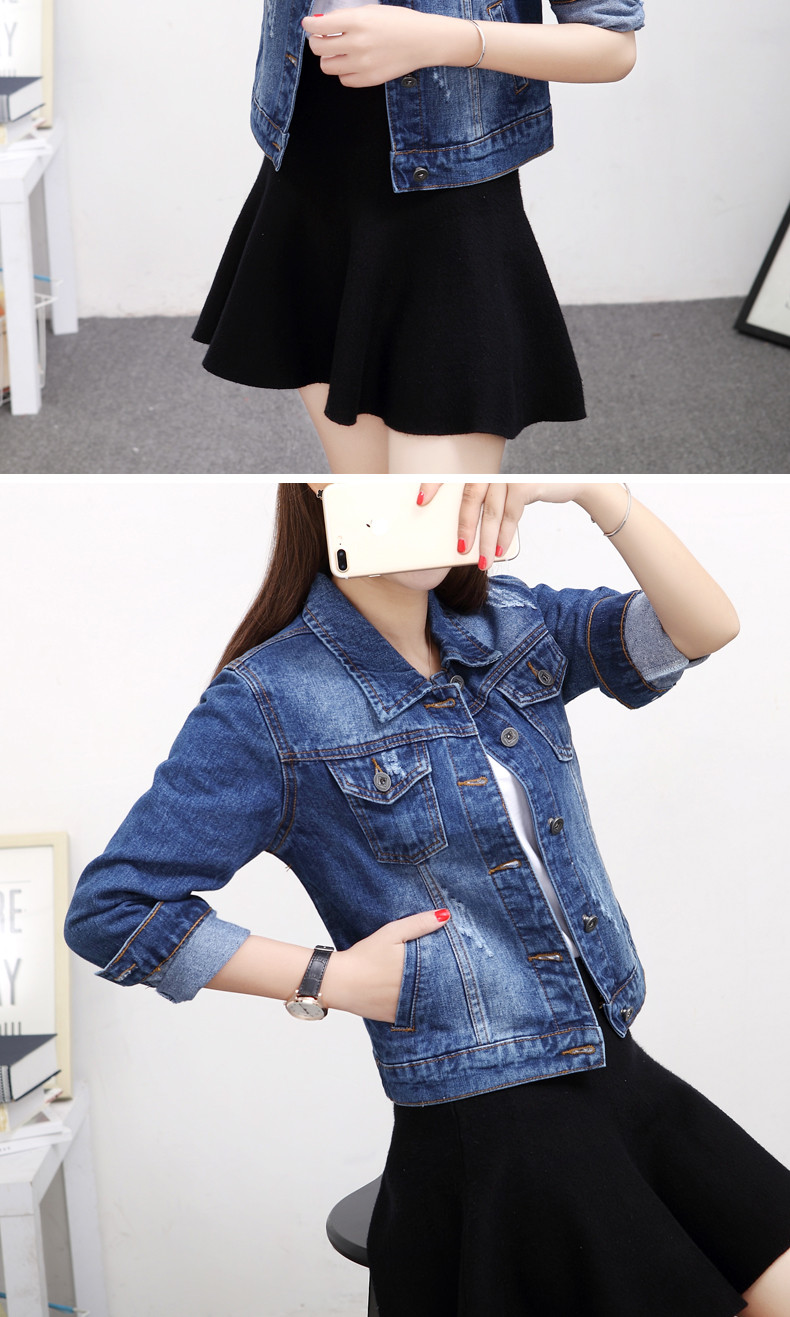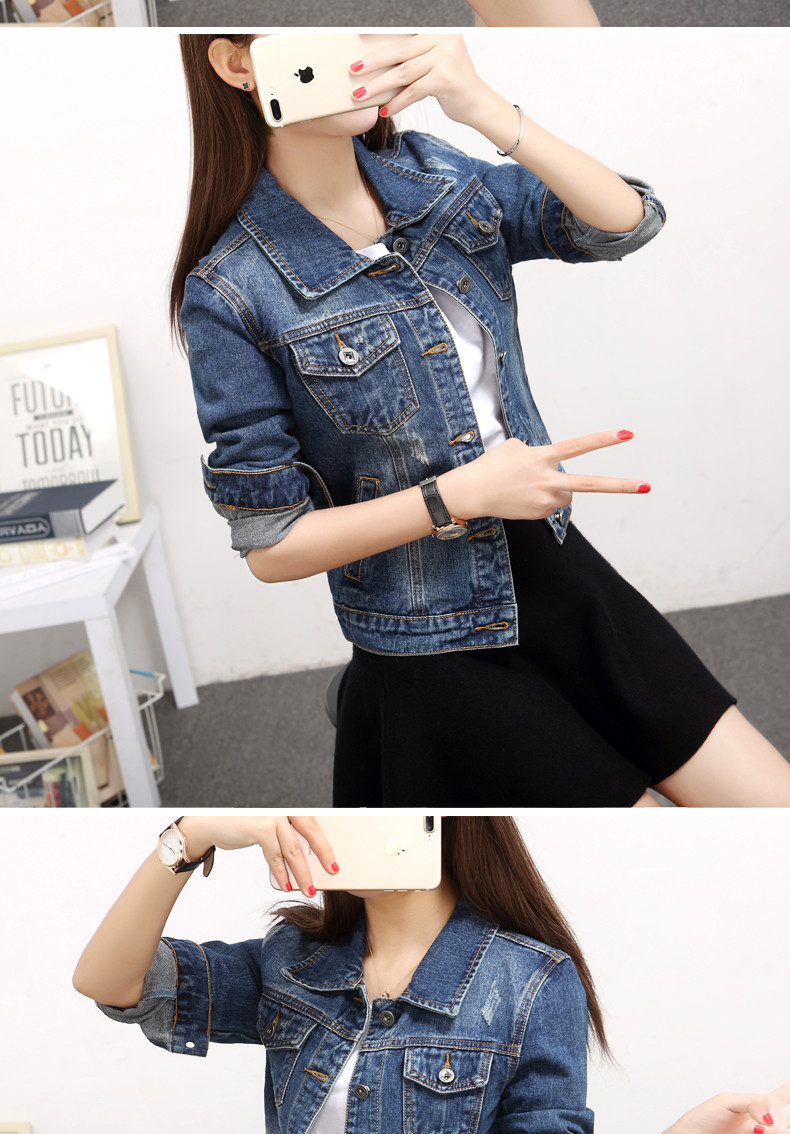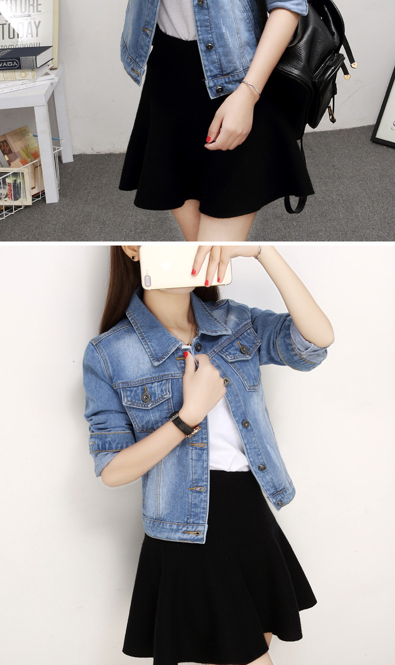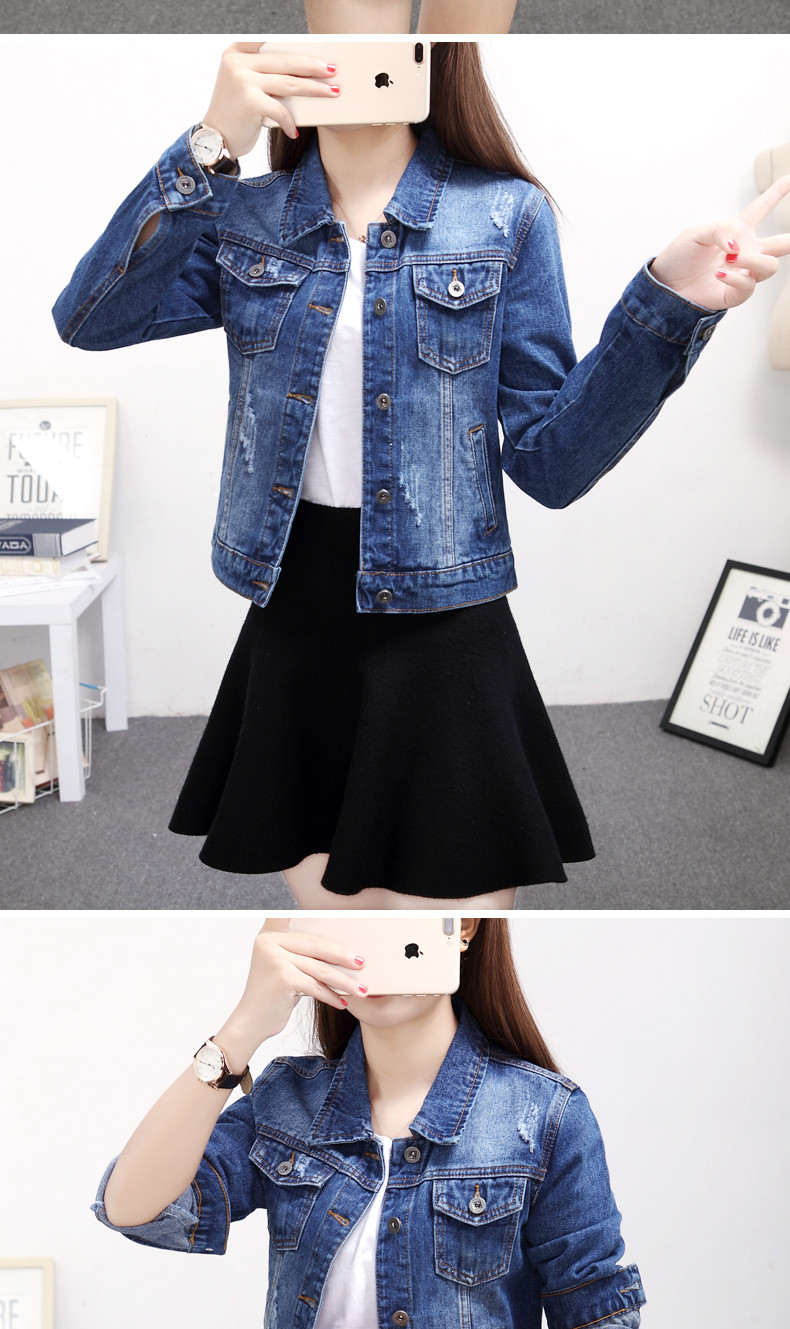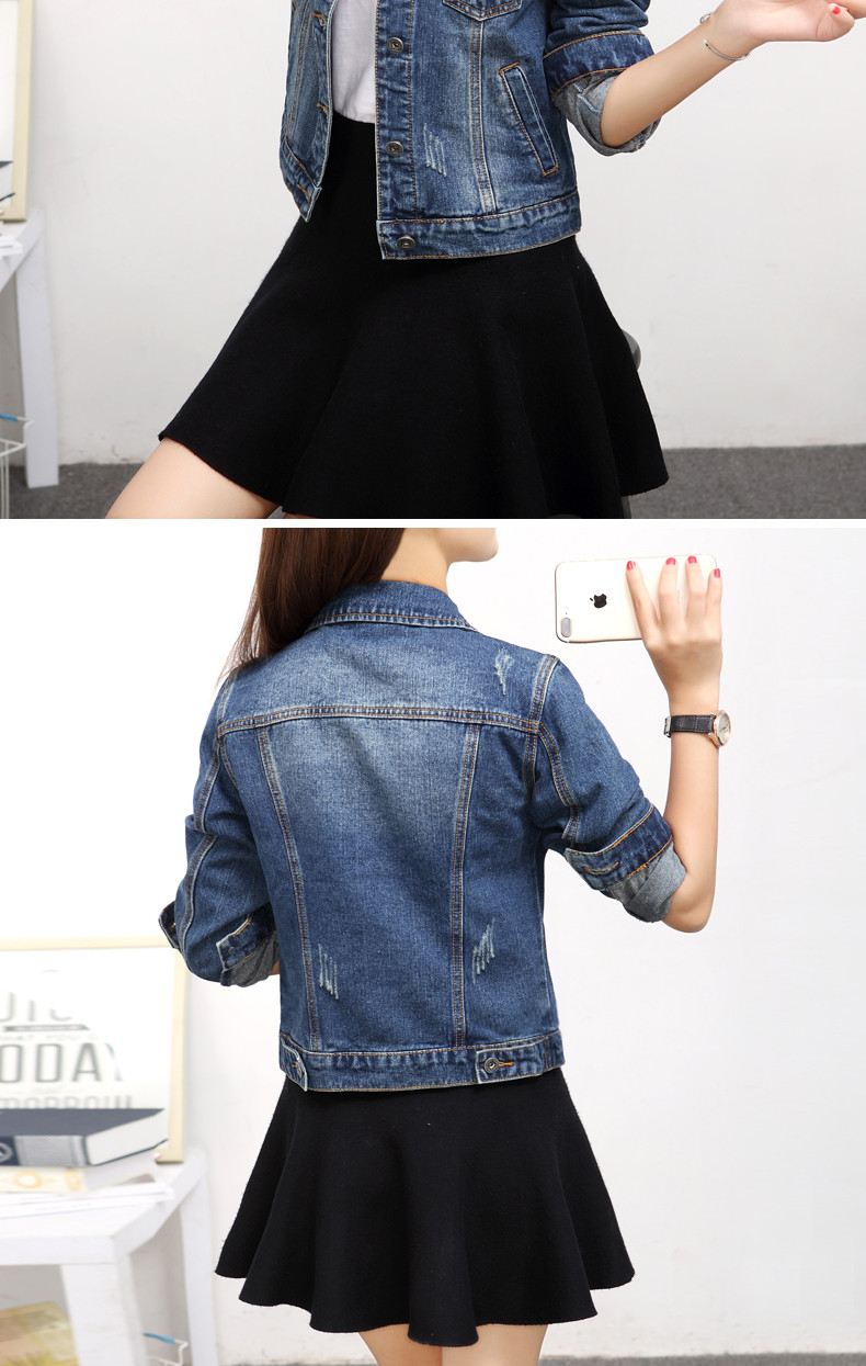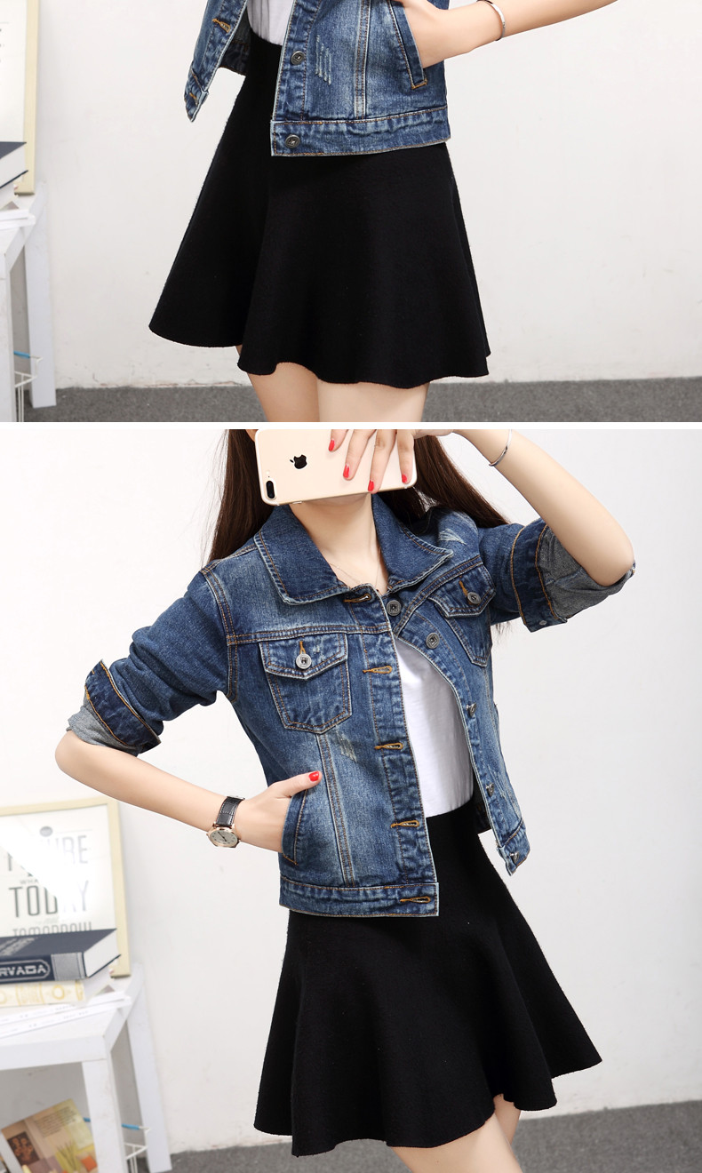 2019春秋季韩版短款修身牛仔外套女学生韩版大码复古牛仔衣服女潮