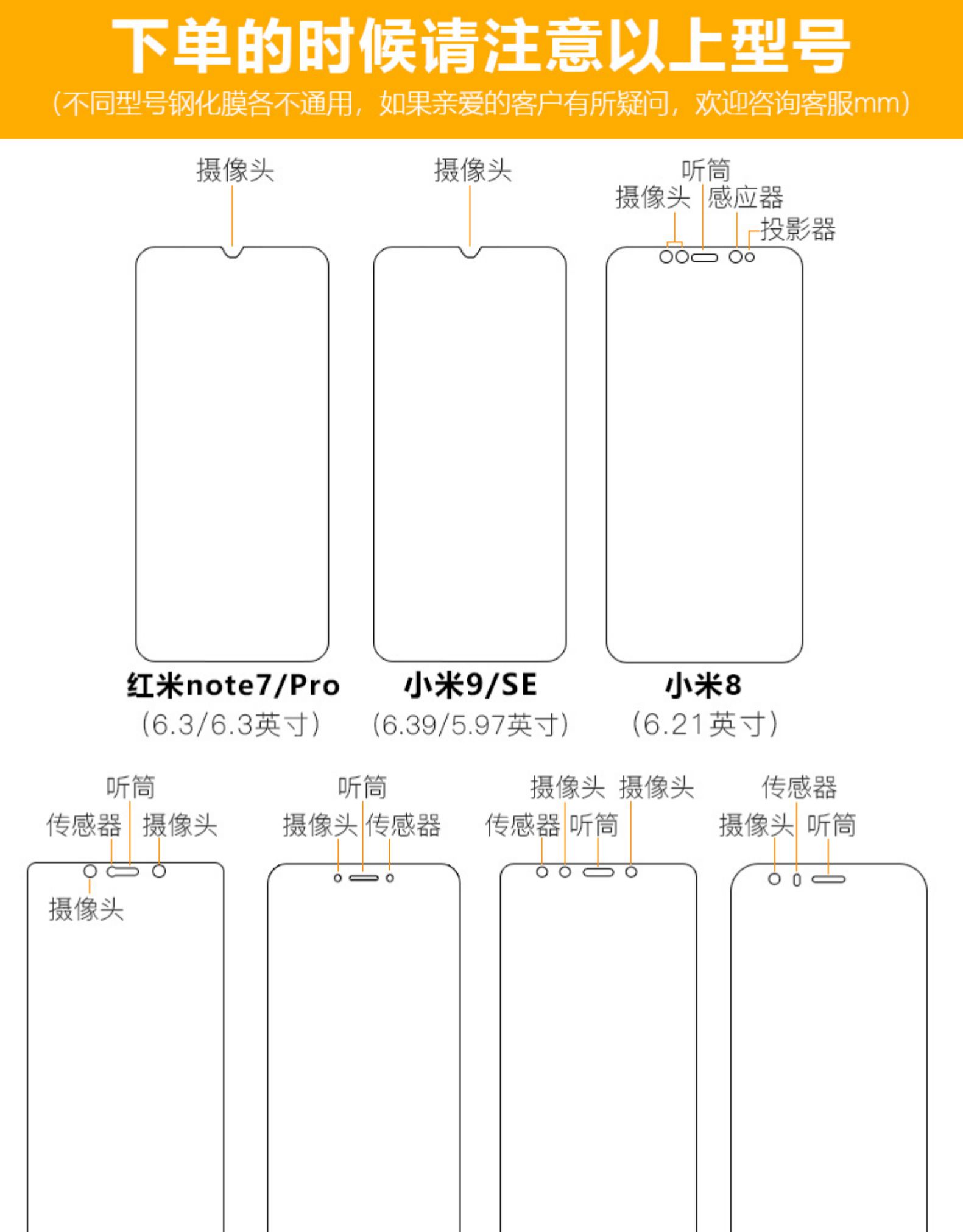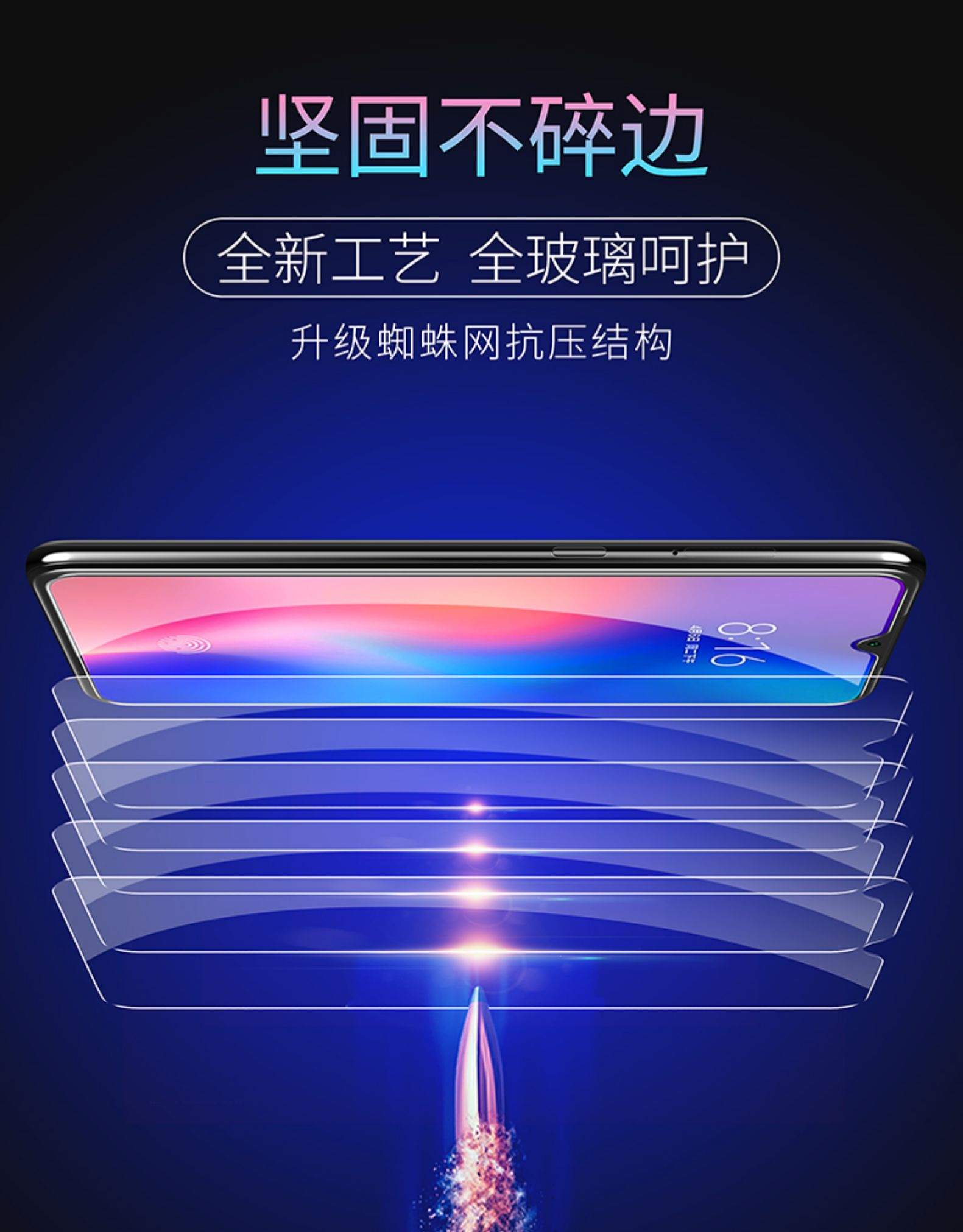 小米9钢化膜8手机se全屏6x cc9e青春note3版5九mix3原装2s八play红米k20pro无note7 note5白4边plus贴膜note8