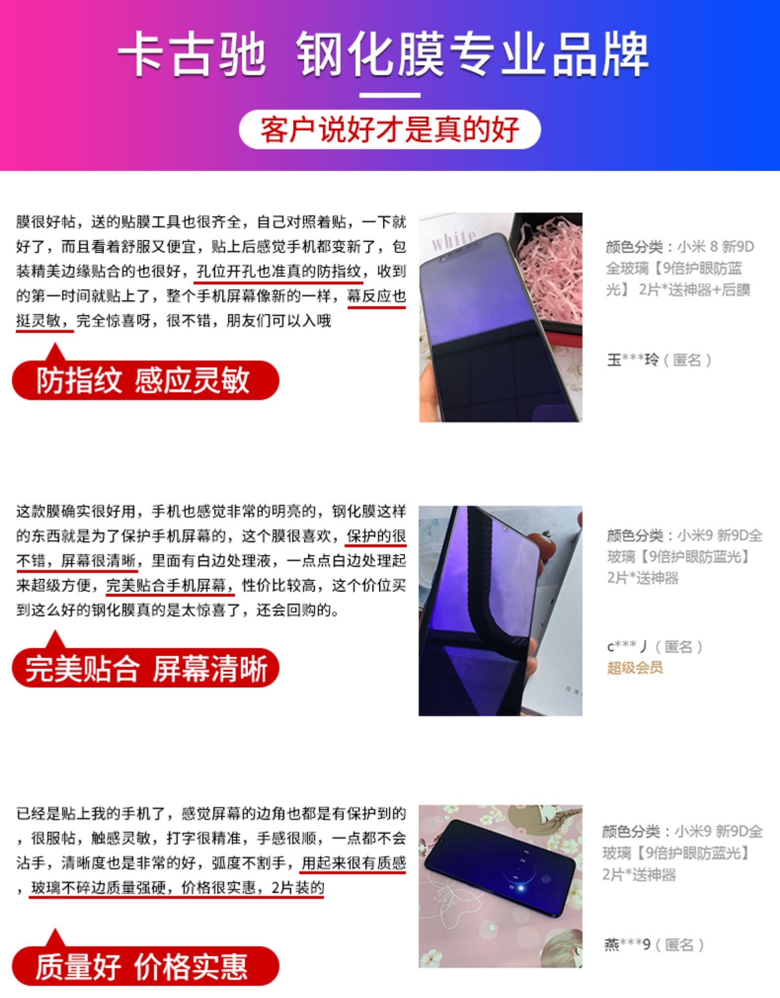 【后膜+贴膜神器】小米全型号优质钢化膜2片,九倍增强防护抗指纹,疏水疏油,一抹干净,手感好不易碎边,耐磨耐刮,透光性高!有效保护视力,缓解视觉疲劳!
