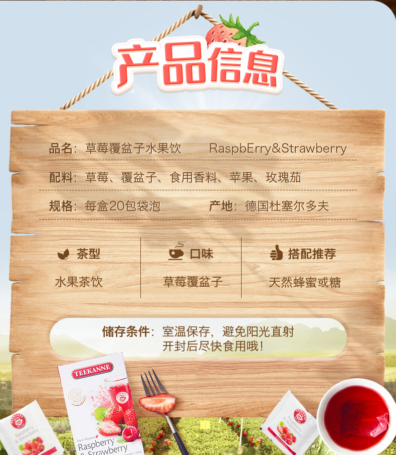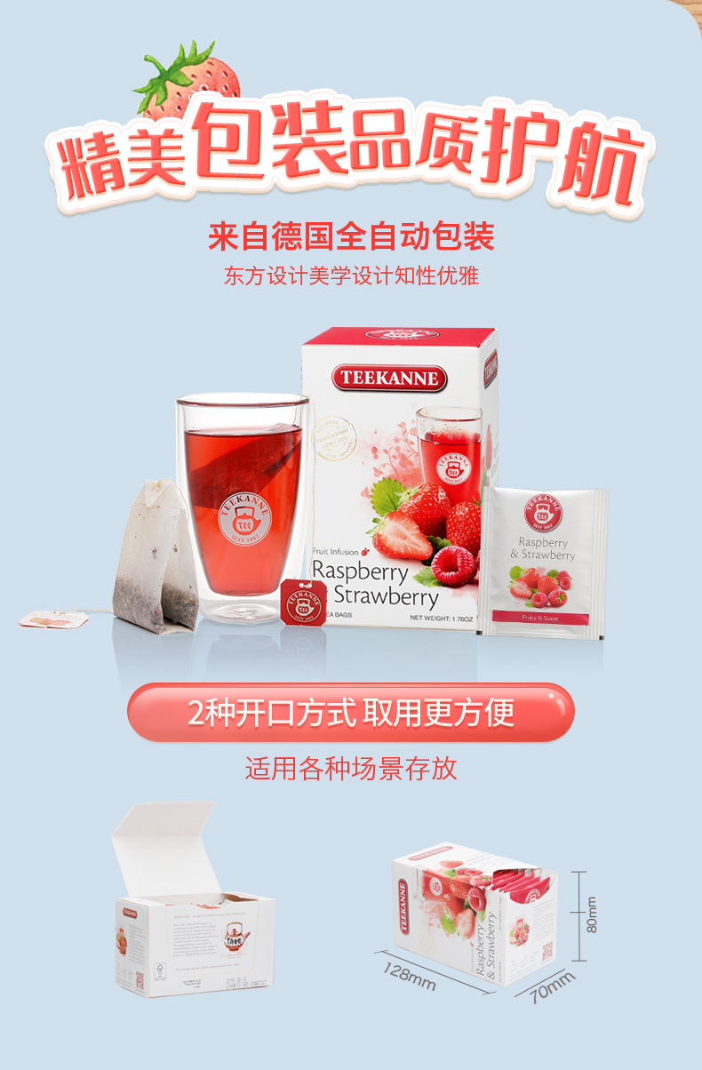 Teekanne草莓覆盆子水果茶小袋装德国进口花果茶养颜果粒茶袋泡茶