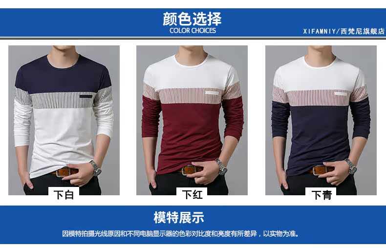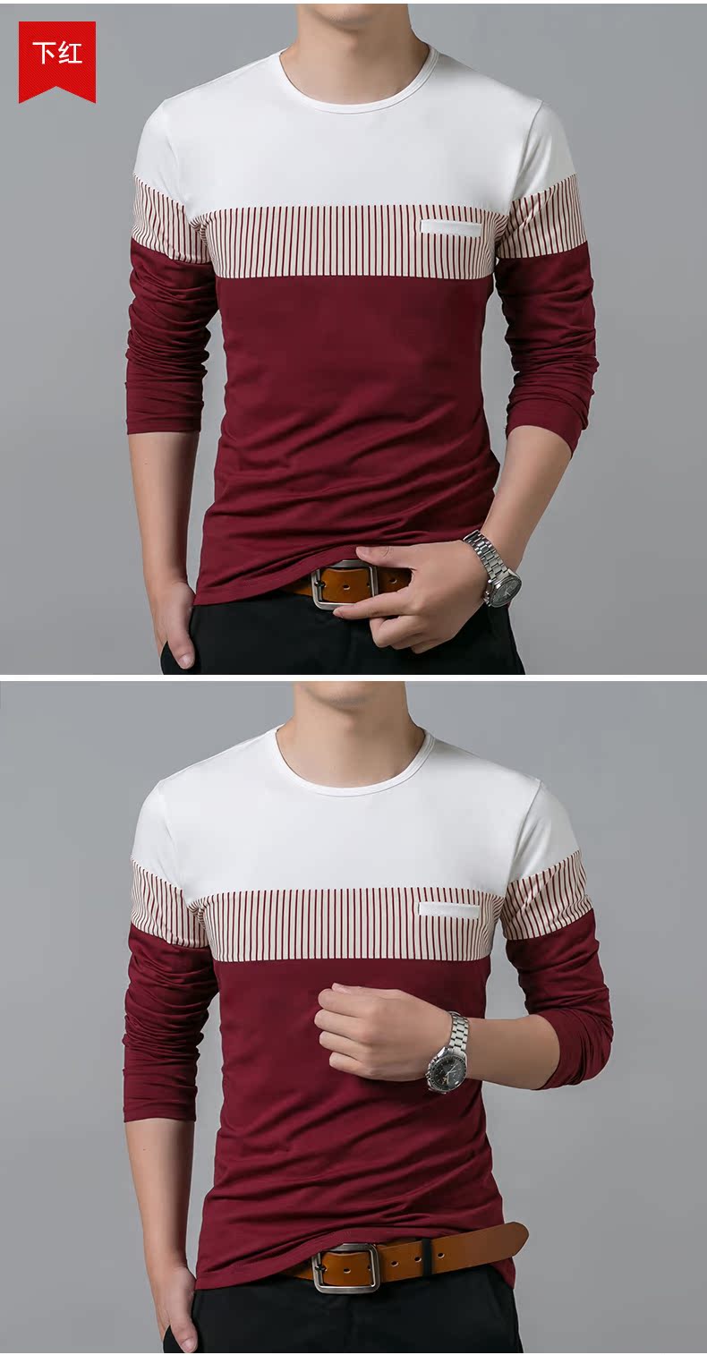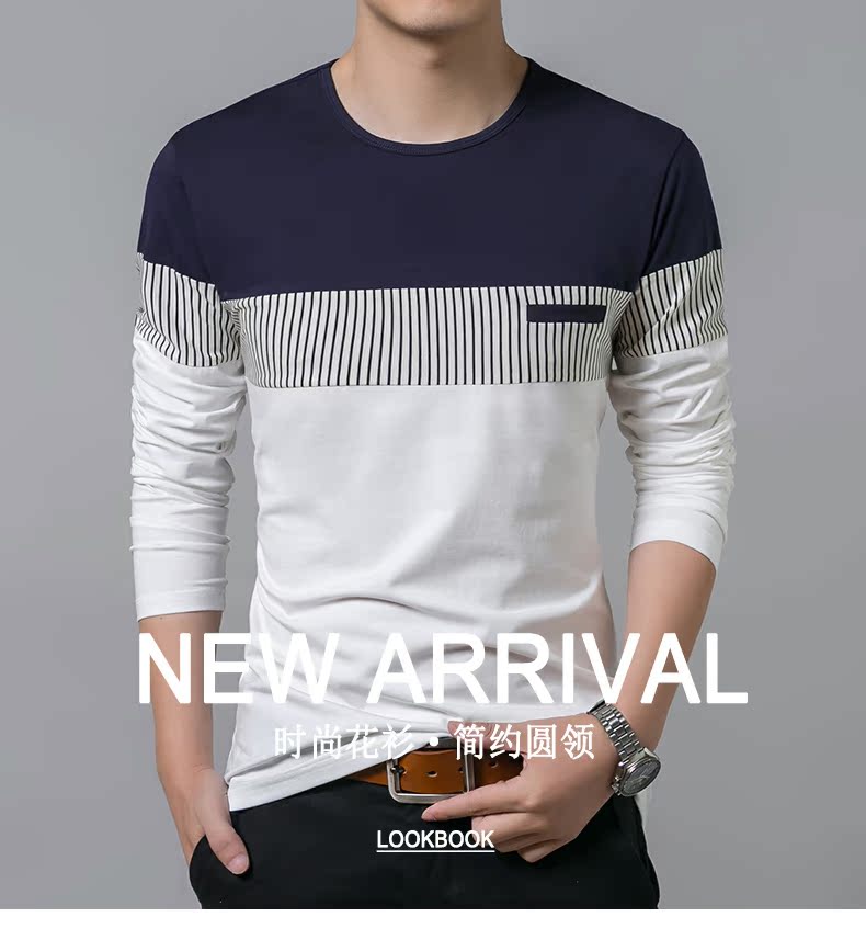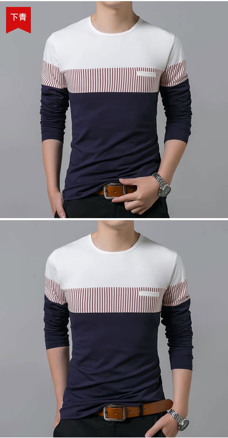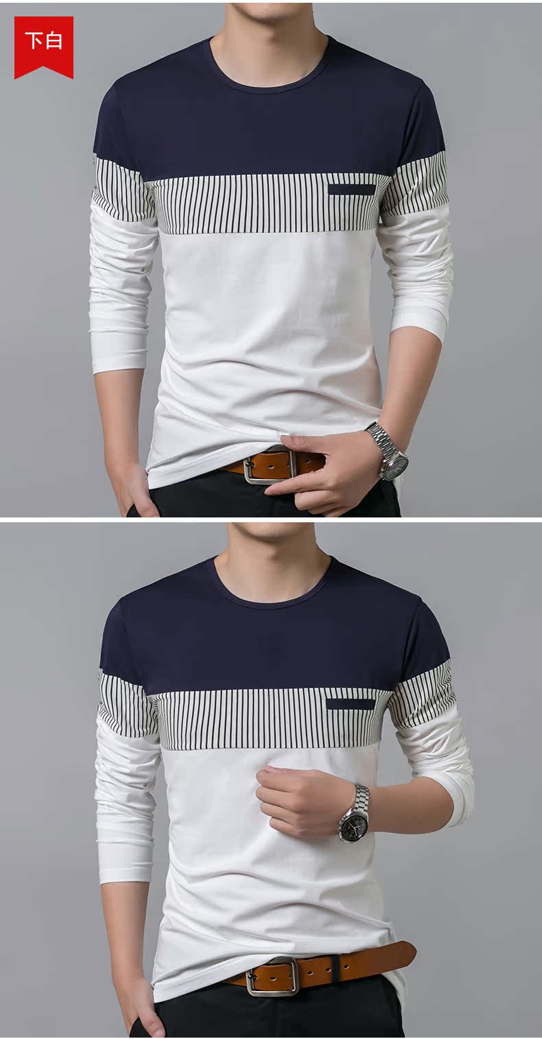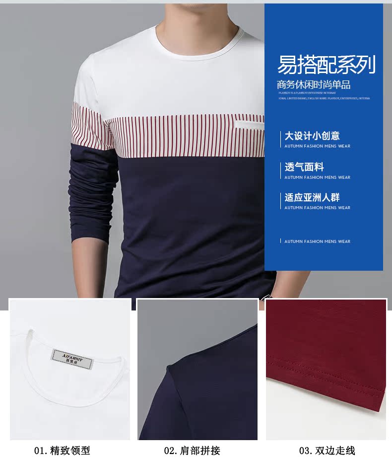 秋季新款条纹t恤男长袖新款韩版圆领上衣服男士修身套头男装潮流
