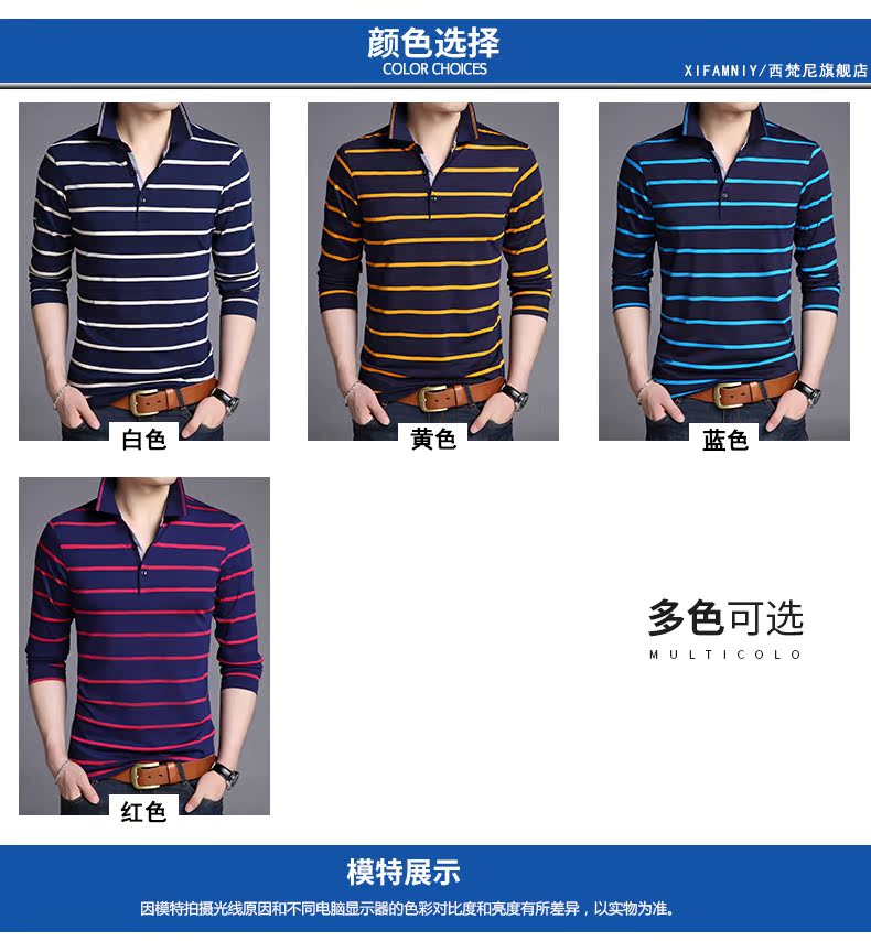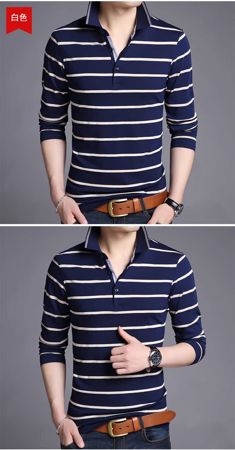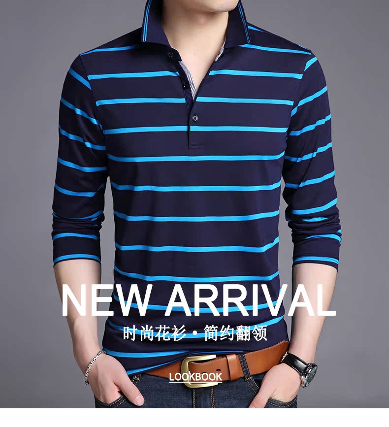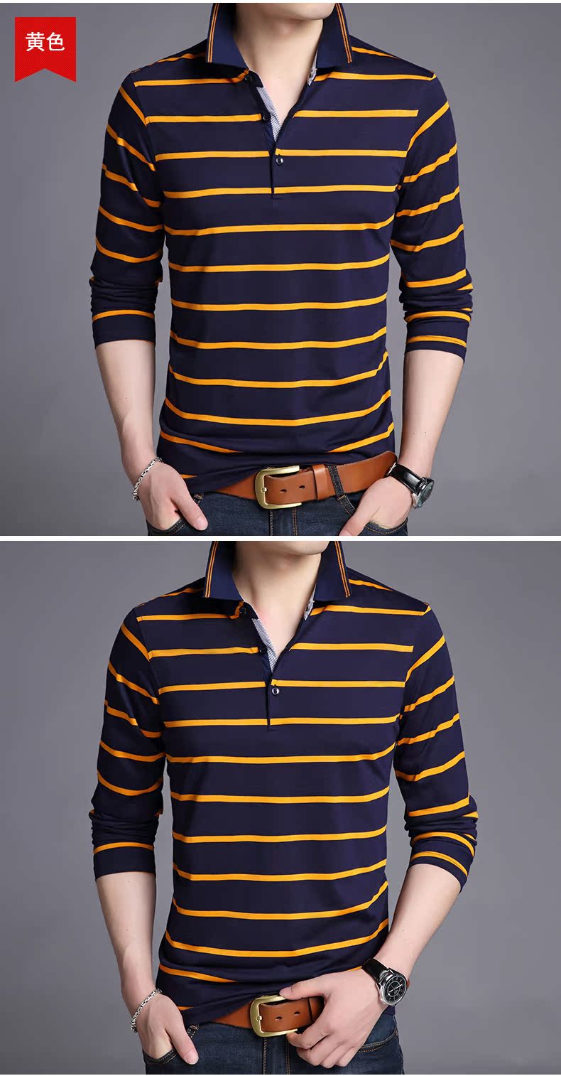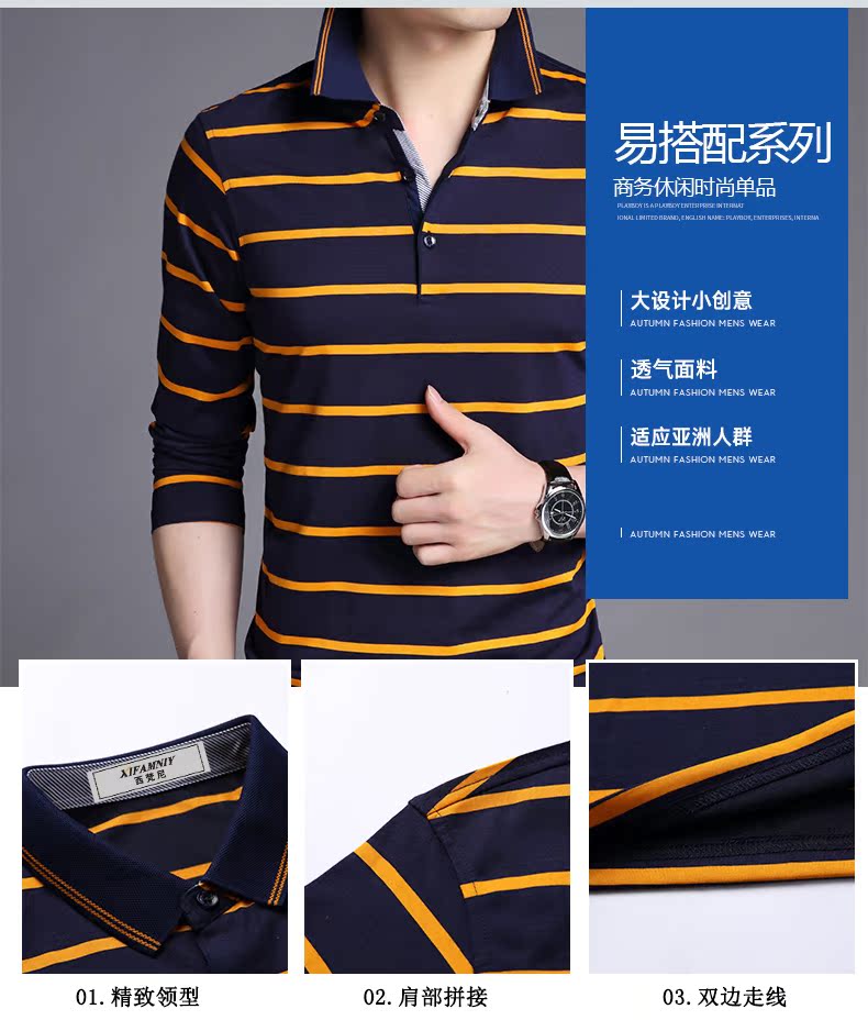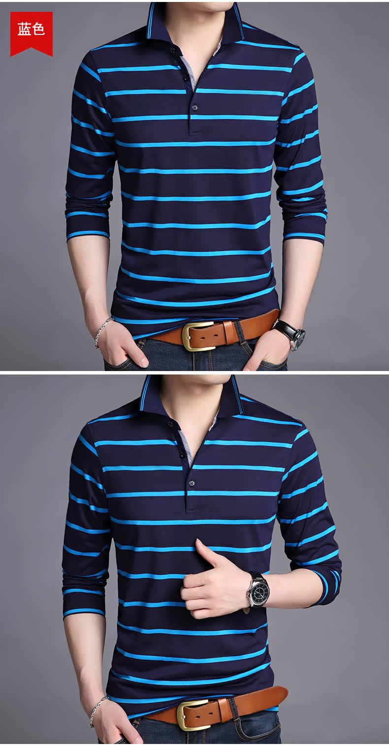 冬季男士长袖T恤翻领加厚青年男长袖polo衫修身条纹打底小衫潮流