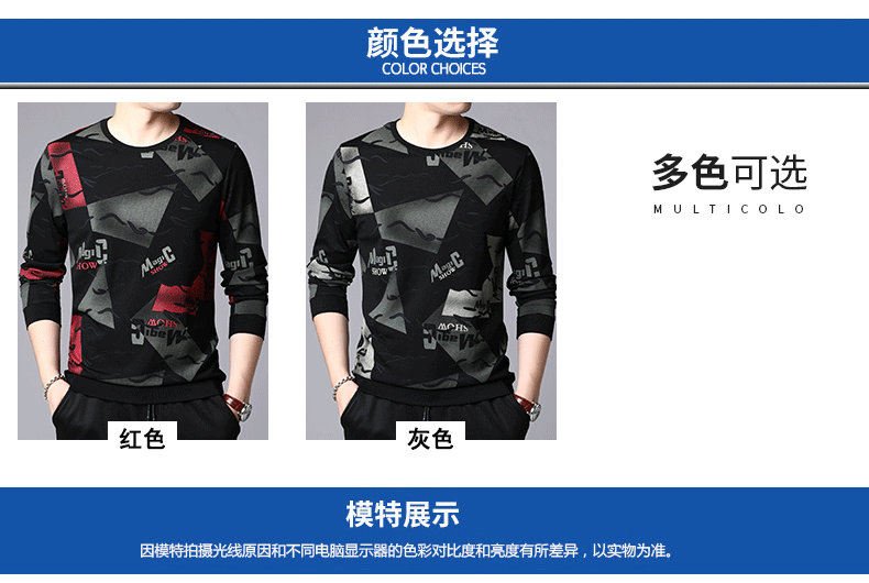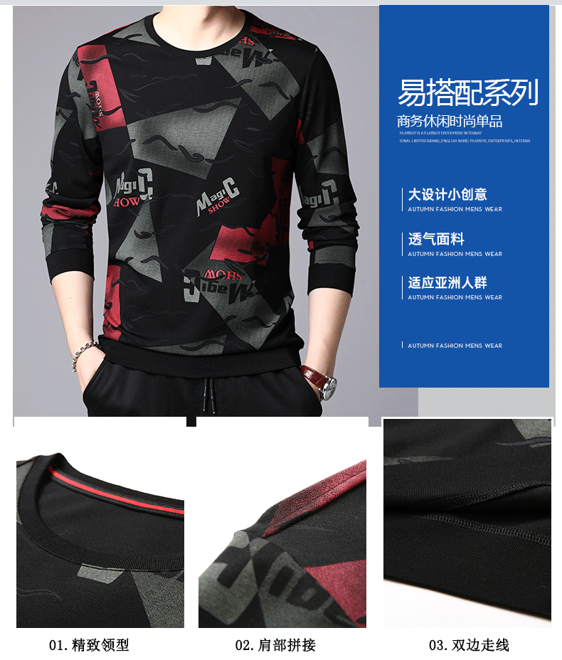 2019秋装男长袖t恤韩版打底衫潮流卫衣男印花长袖上衣服时尚丅恤