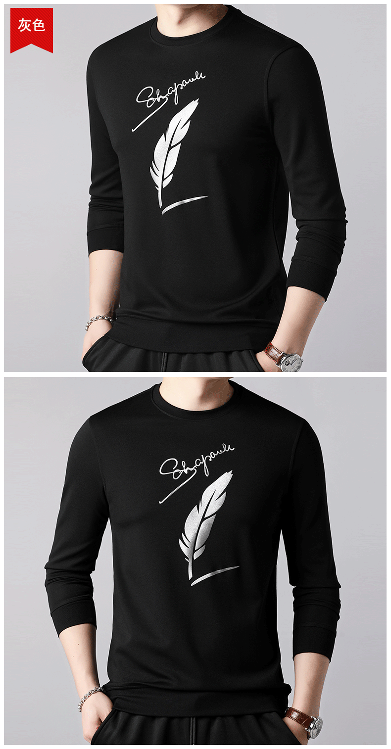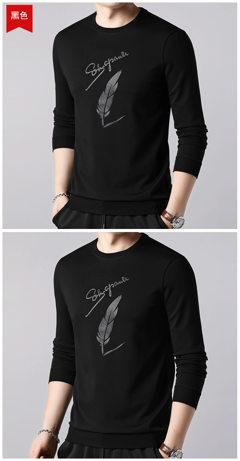 2019秋季圆领长袖T恤男士修身休闲卫衣潮流体恤衣服男打底衫潮流