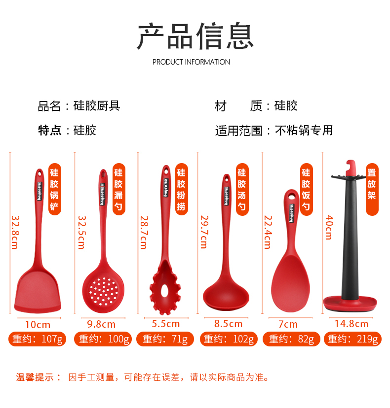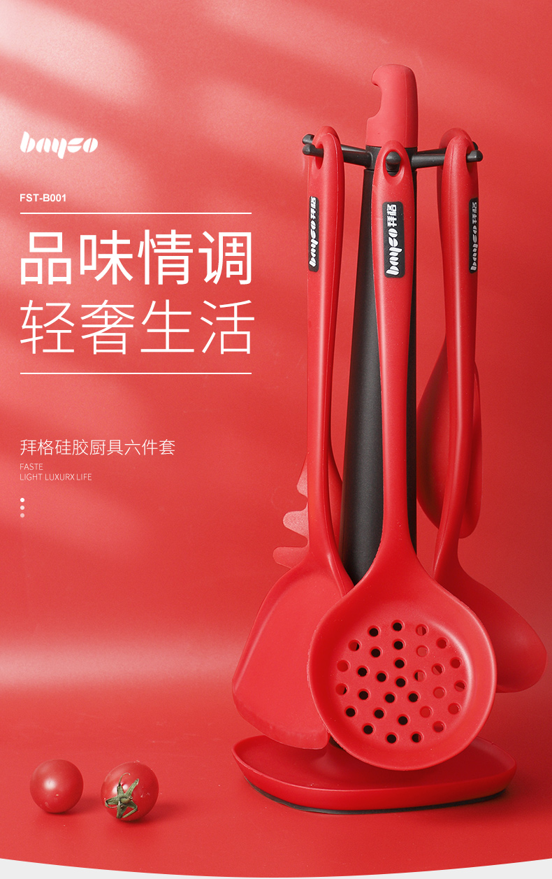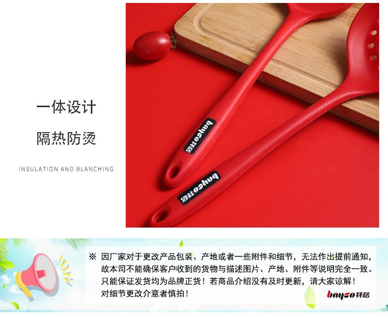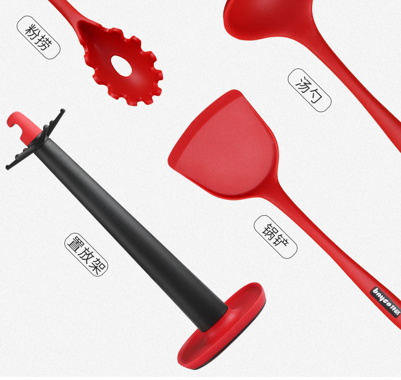 拜格硅胶铲不粘锅专用锅铲汤勺全套厨房家用炒菜耐高温厨具套装