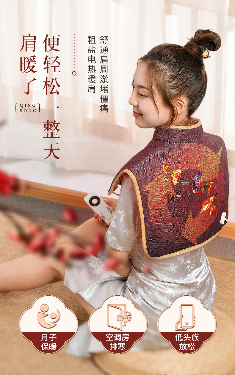高端刺绣,古法天然海盐+艾绒+天然草本三效电热热护肩,智能电热,买1个全身可用,护肩,护腰,护膝全身通用,遥控可定时调温,换季全身酸痛必备,自用实惠送礼有面子。