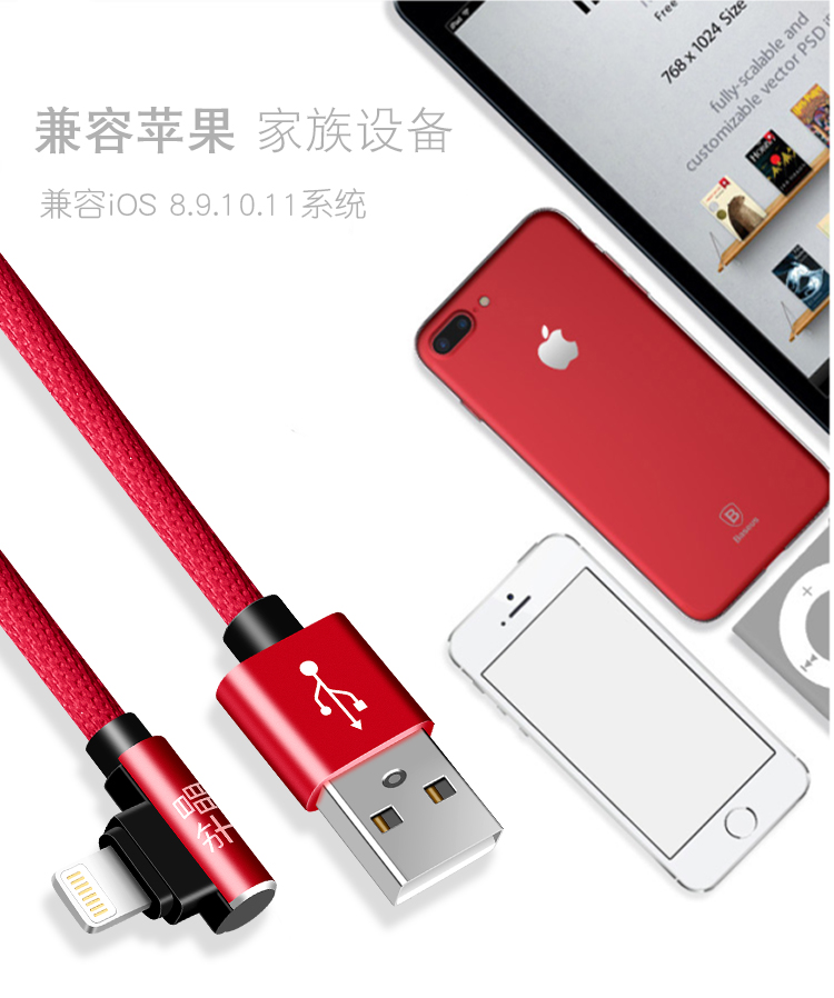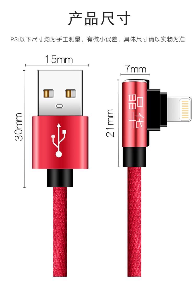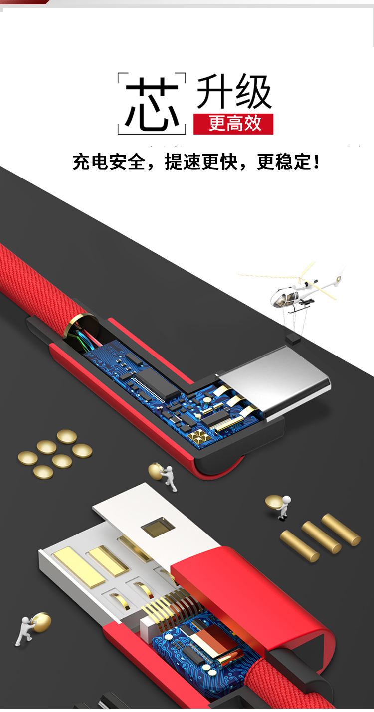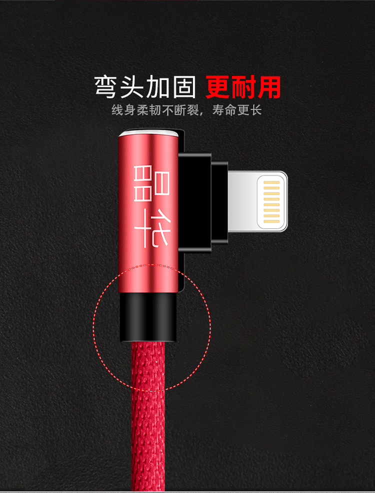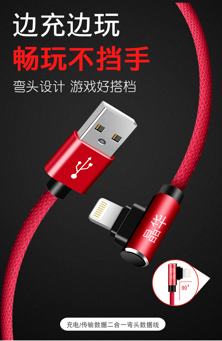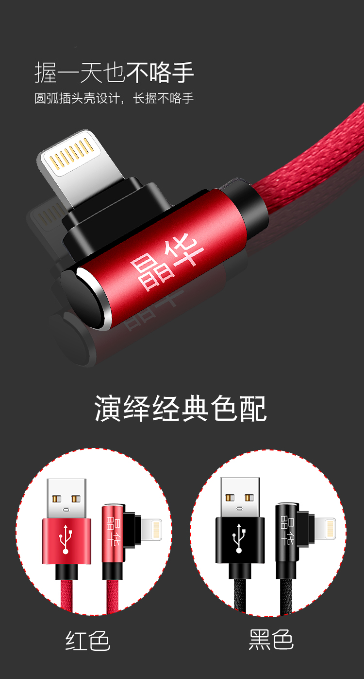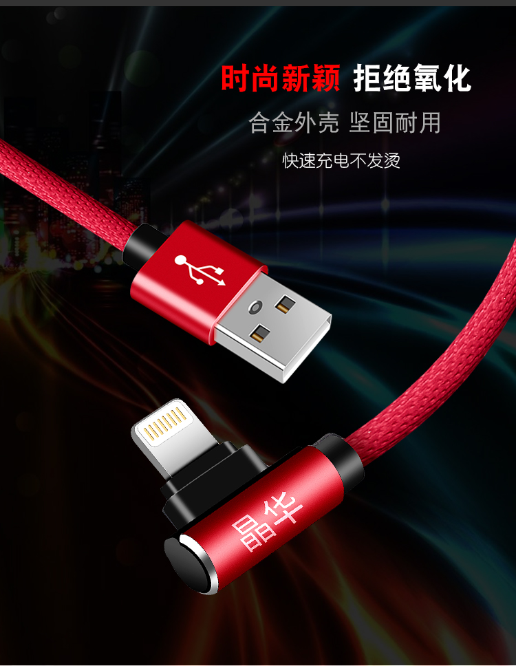 晶华 弯头数据线安卓iPhone苹果type-c手机通用usb数据传输充电线