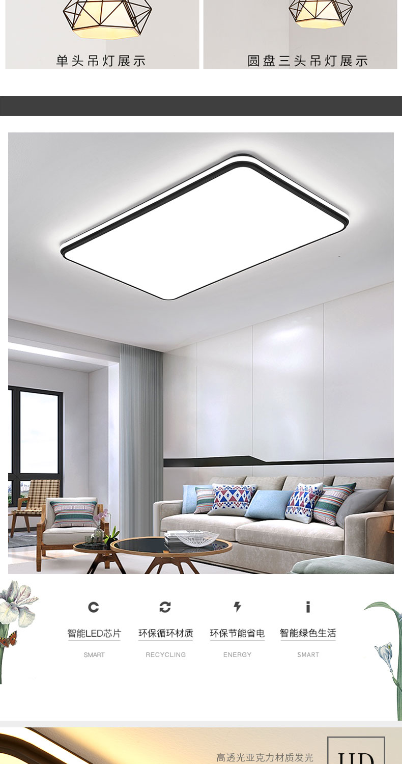 led客厅吸顶灯现代简约大气北欧卧室灯饰创意个性餐厅吊灯具套餐