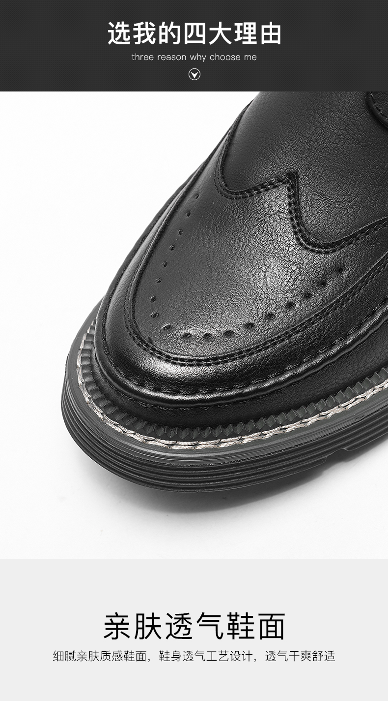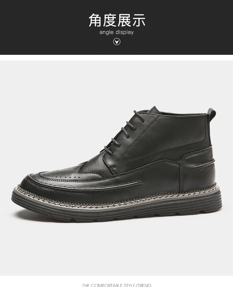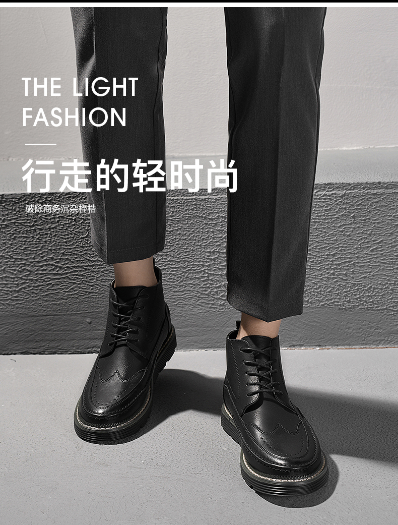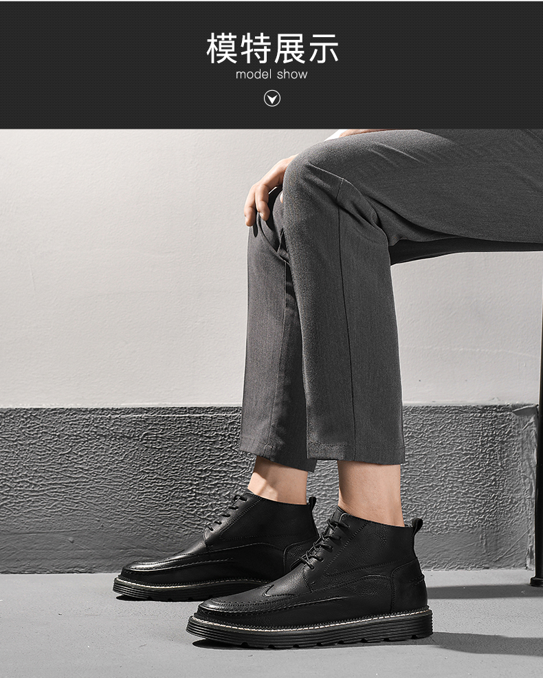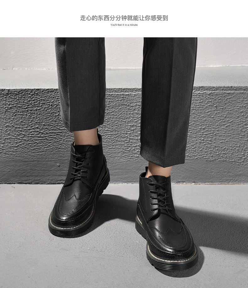 皮鞋男韩版休闲潮流布洛克高帮马丁靴英伦内增高黑色百搭男鞋冬季