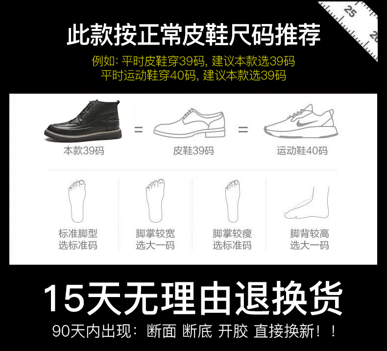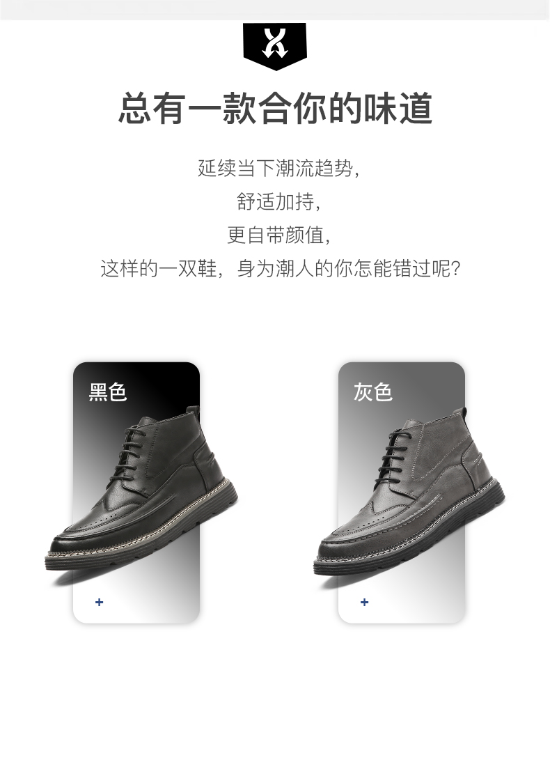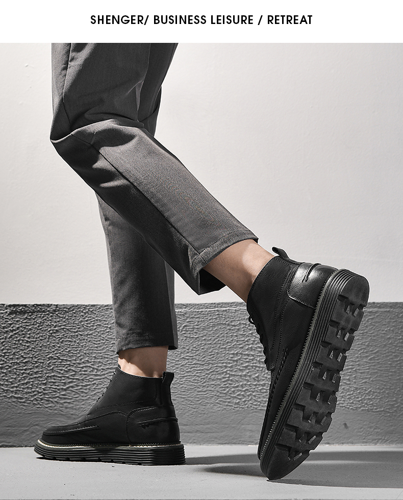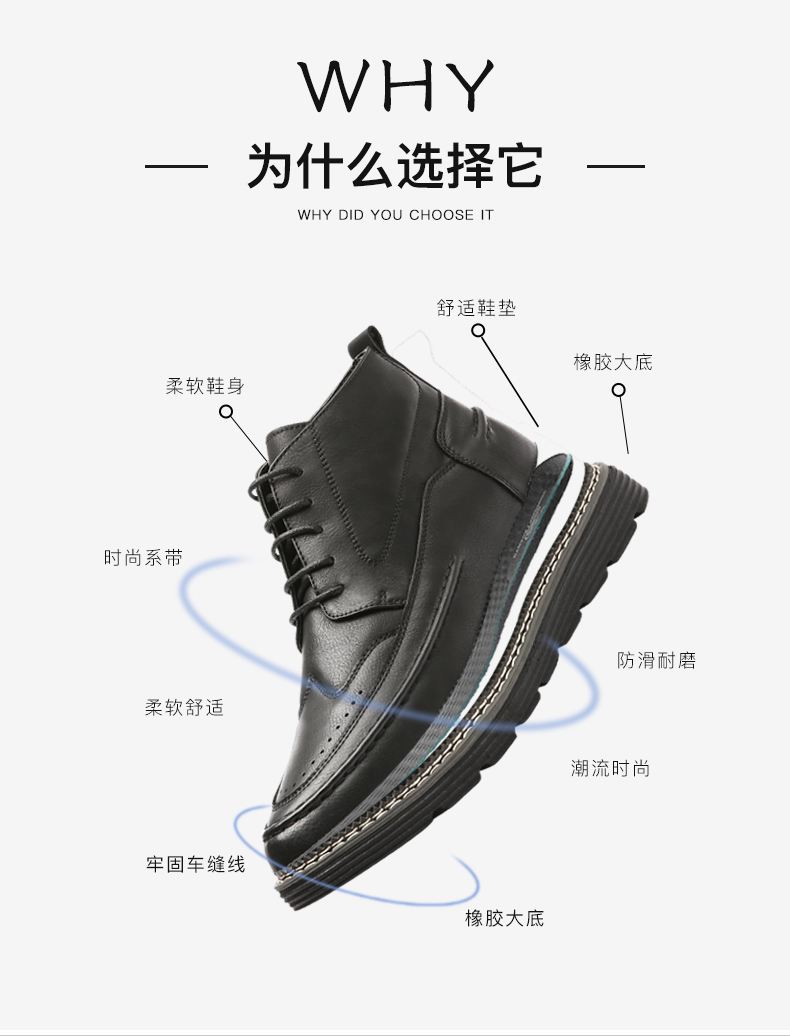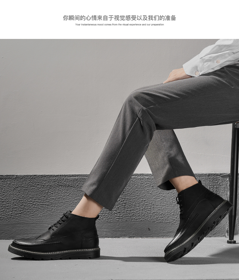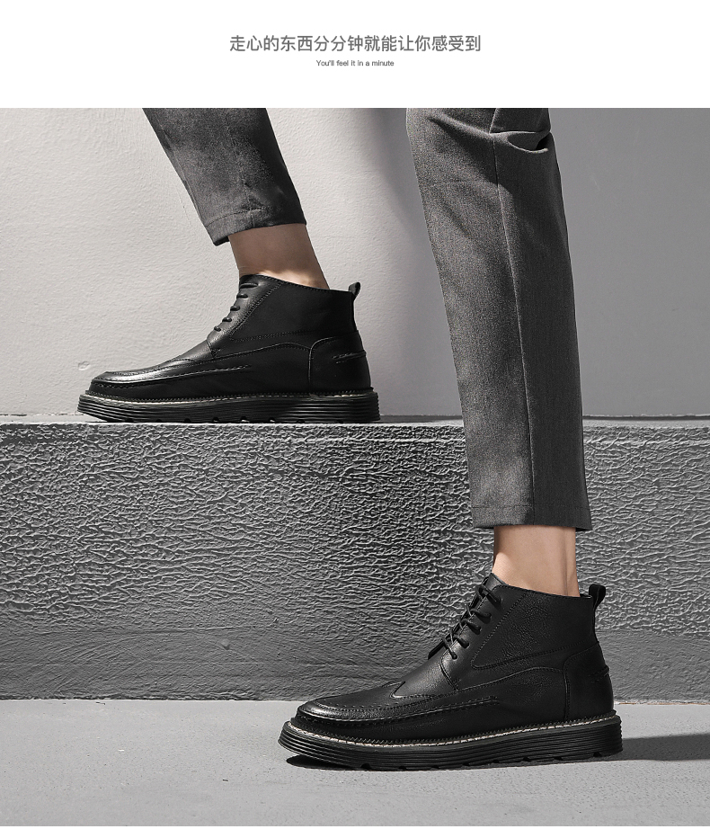 皮鞋男韩版休闲潮流布洛克高帮马丁靴英伦内增高黑色百搭男鞋冬季
