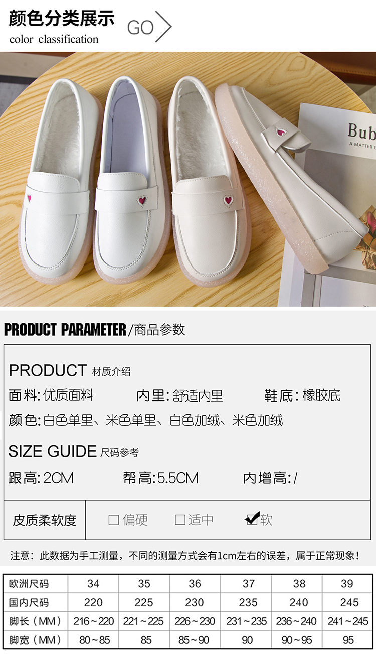 小白鞋护士鞋女秋冬软底透气不累脚平底可爱百搭舒适防滑加绒棉鞋