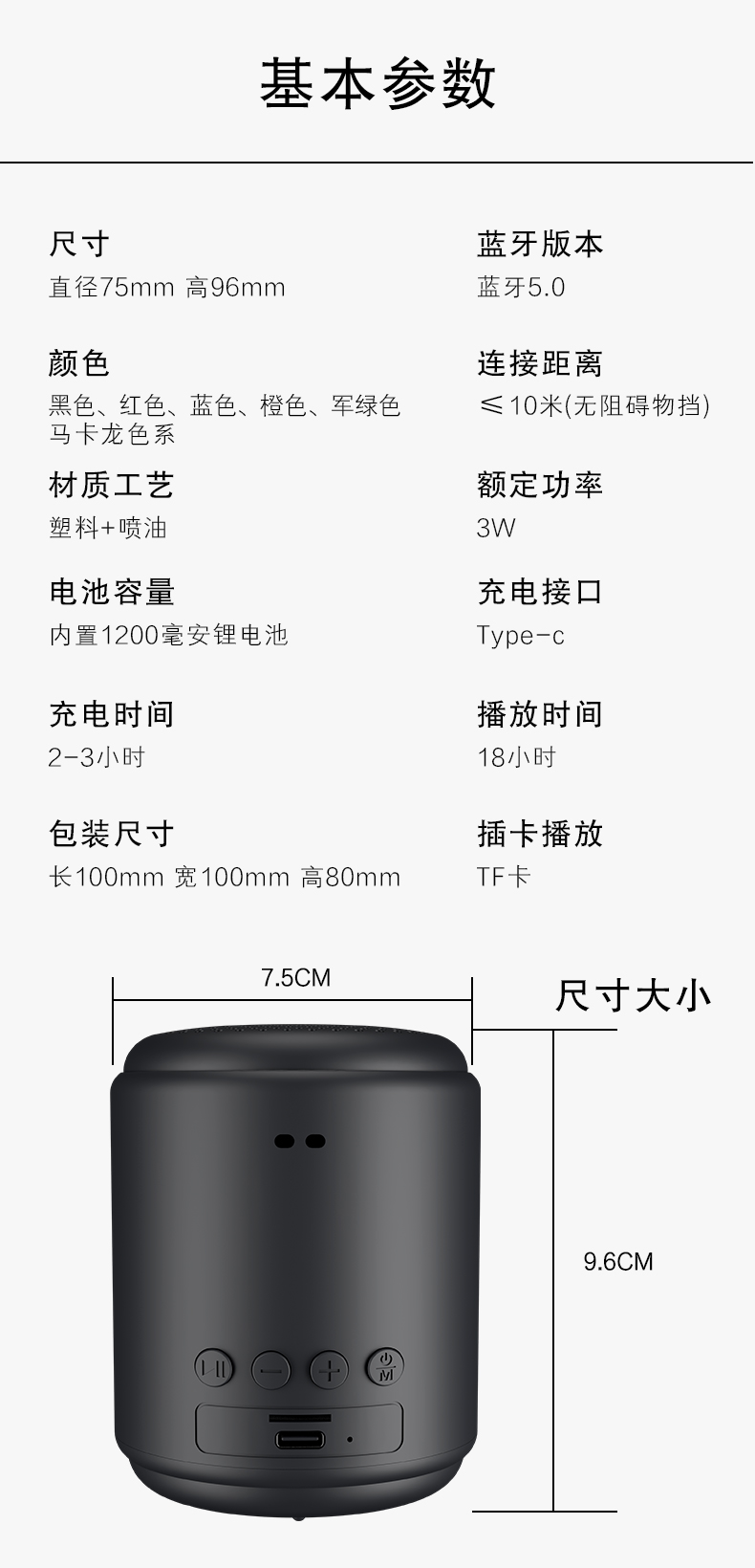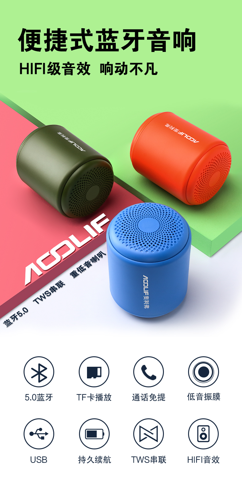 新升级蓝牙5.0,兼容性稳定性,功能性等有明显的提升。震撼低音,立体音效声临其境!免提通话,高清降噪。全面兼容,多种模式一键切换,小巧更实用~