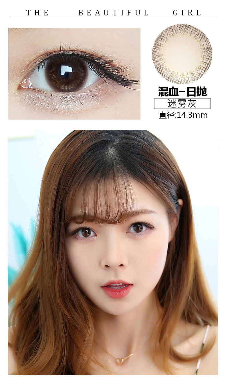 日抛美瞳女10片大小直径正品大牌混血网红款自然蓝色灰色隐形眼镜