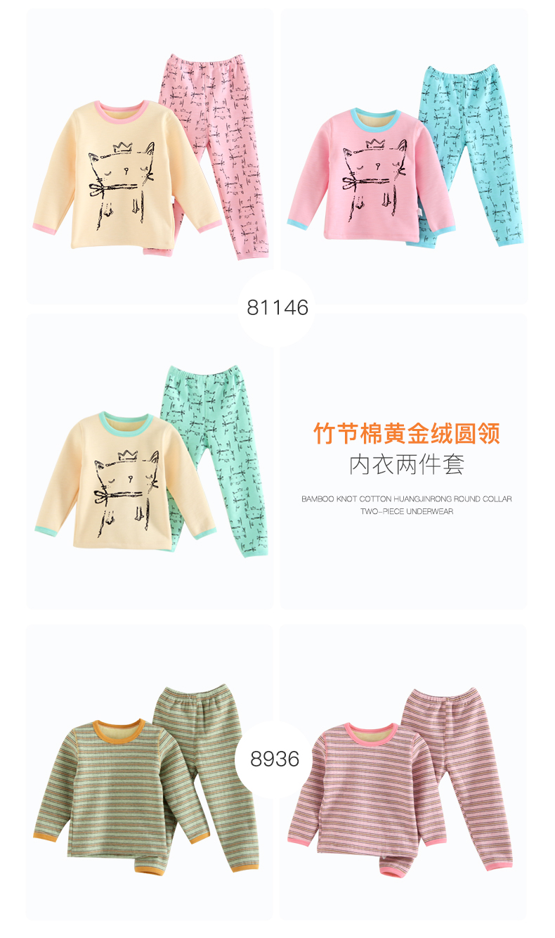 钓鱼猫儿童衣服女冬0-1-2-3岁宝宝套装儿童保暖内衣套装黄金绒男