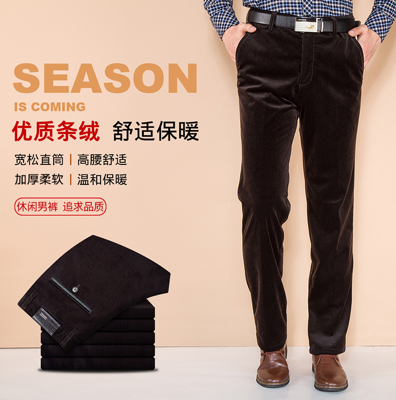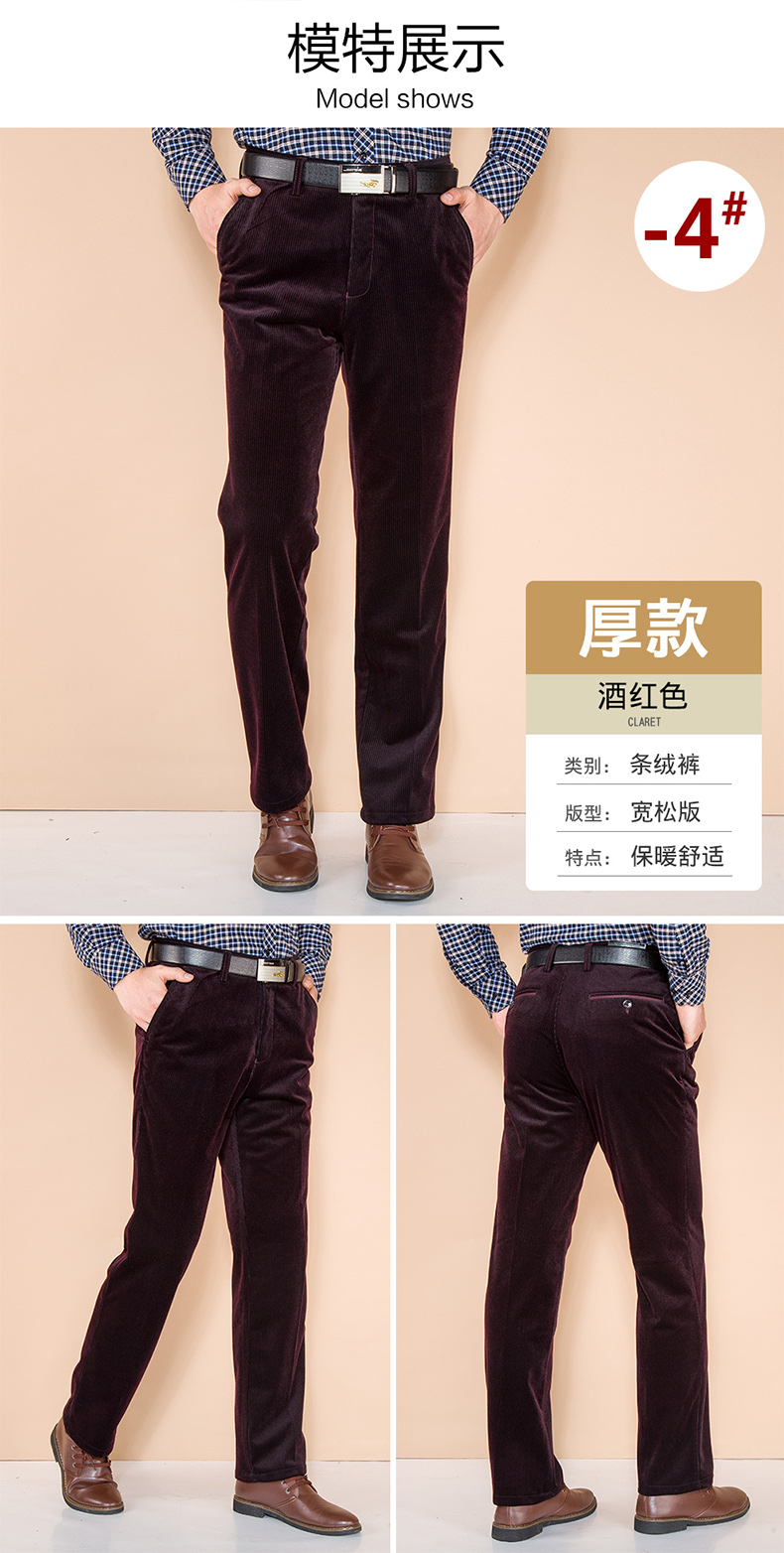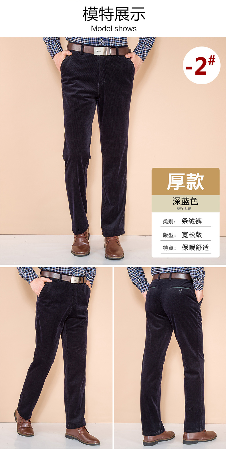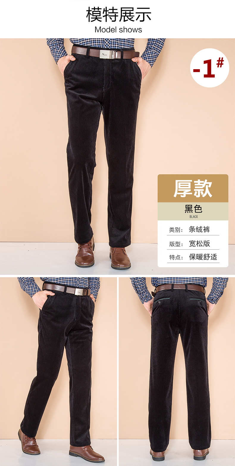 中年男士休闲长裤秋冬季厚款灯芯绒裤子男爸爸款宽松直筒条绒男裤