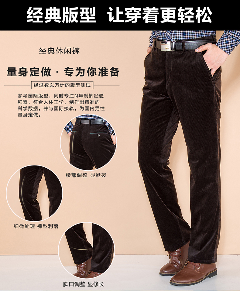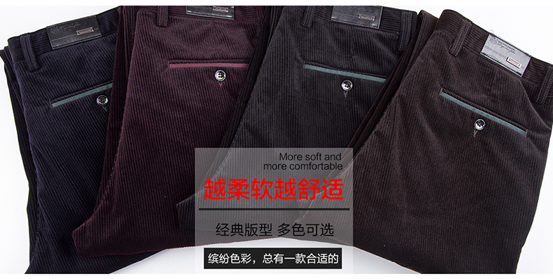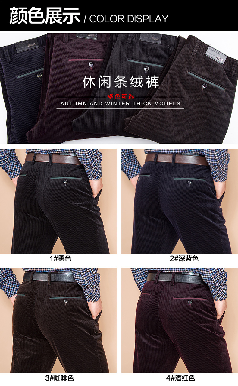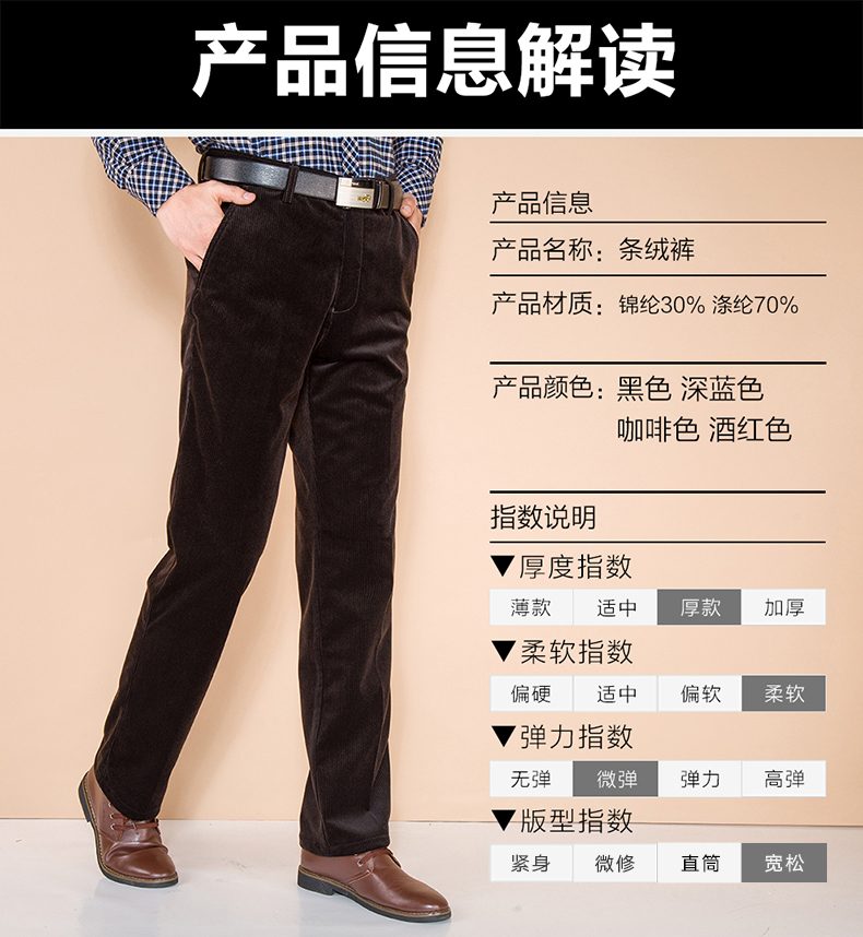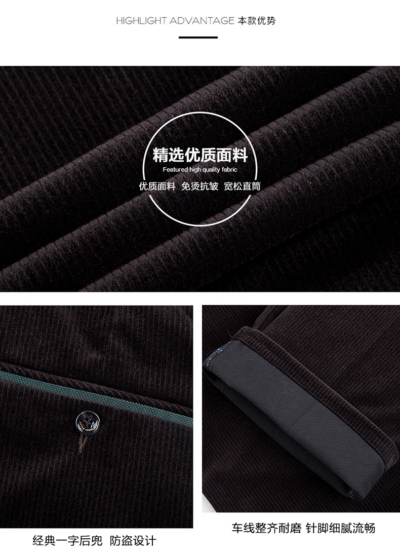 中年男士休闲长裤秋冬季厚款灯芯绒裤子男爸爸款宽松直筒条绒男裤