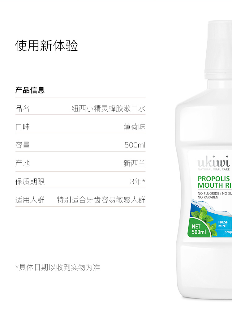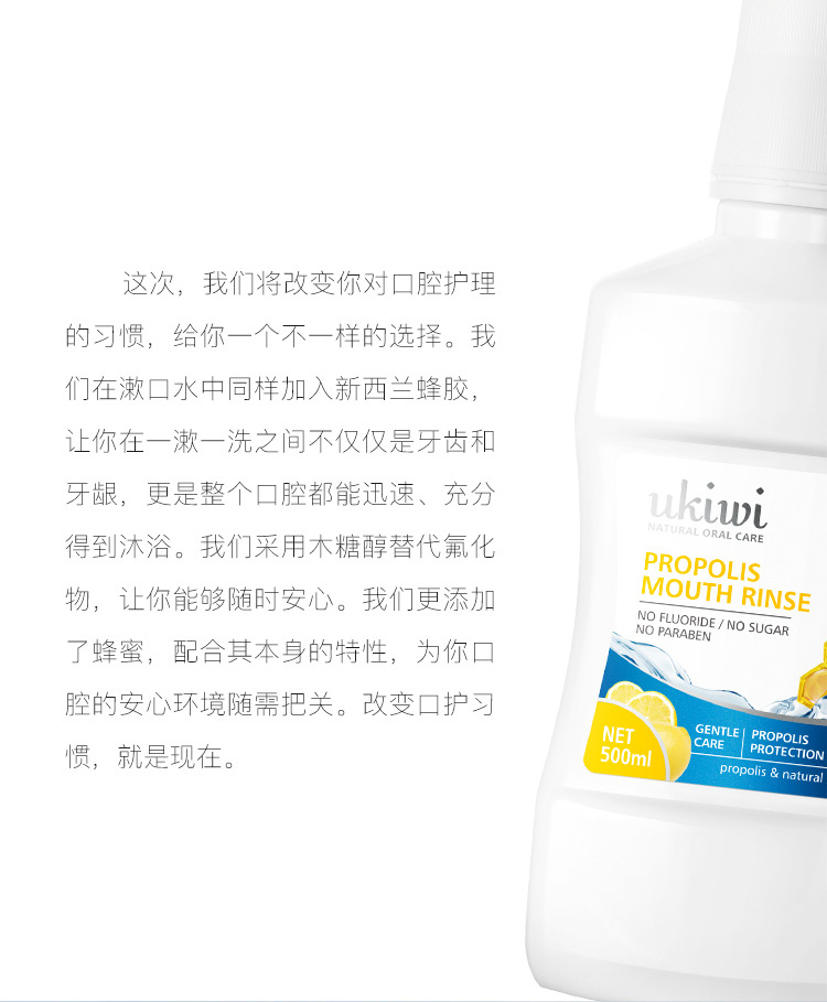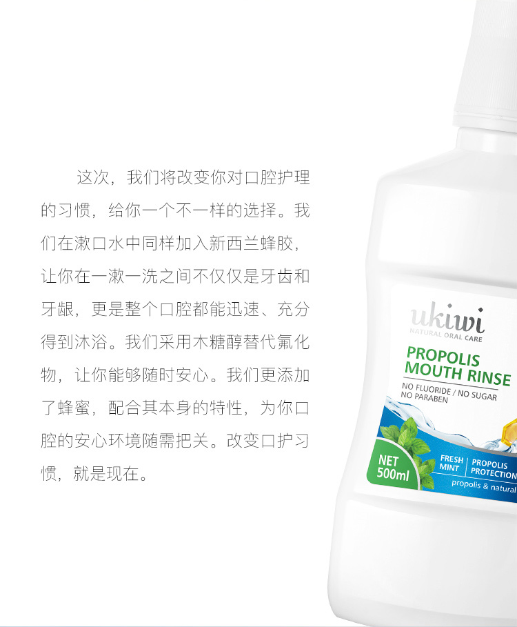 【纽西小精灵】蜂胶漱口水3瓶*500ml一共1500ml,除口臭异味去牙渍清新口气,看试平凡,成就不凡,不加氟更安心。有效保护我们的牙齿。