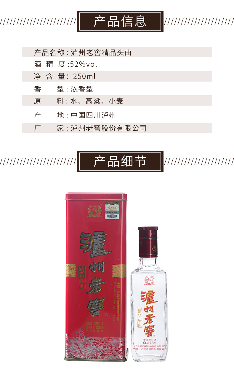 泸州老窖52度精品头曲铁盒,浓香型高度白酒250ml*12瓶。收藏送礼厂家直供,品质保证,售后无忧。醇香可口。
