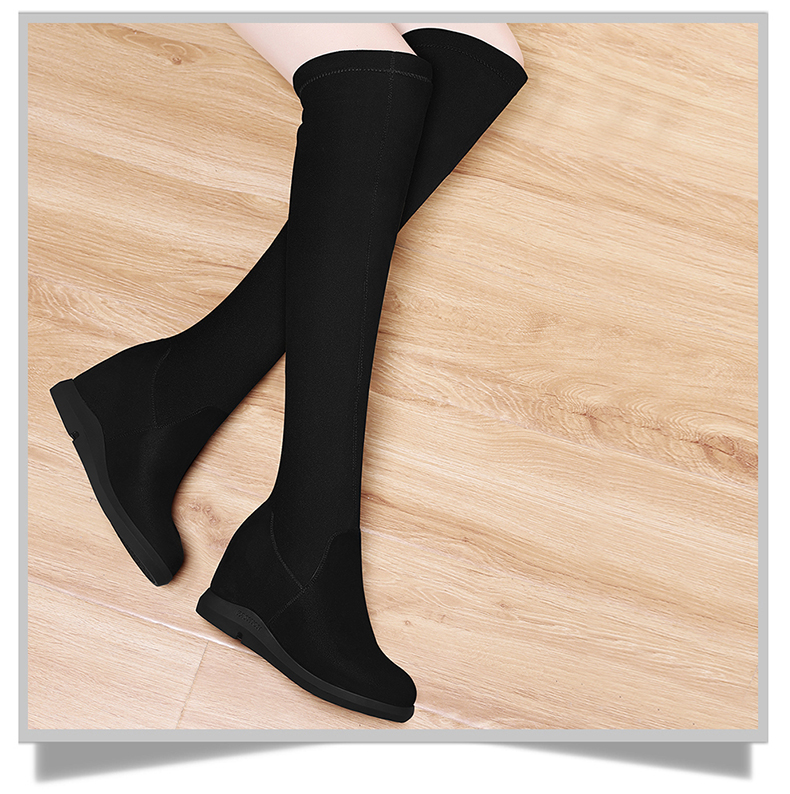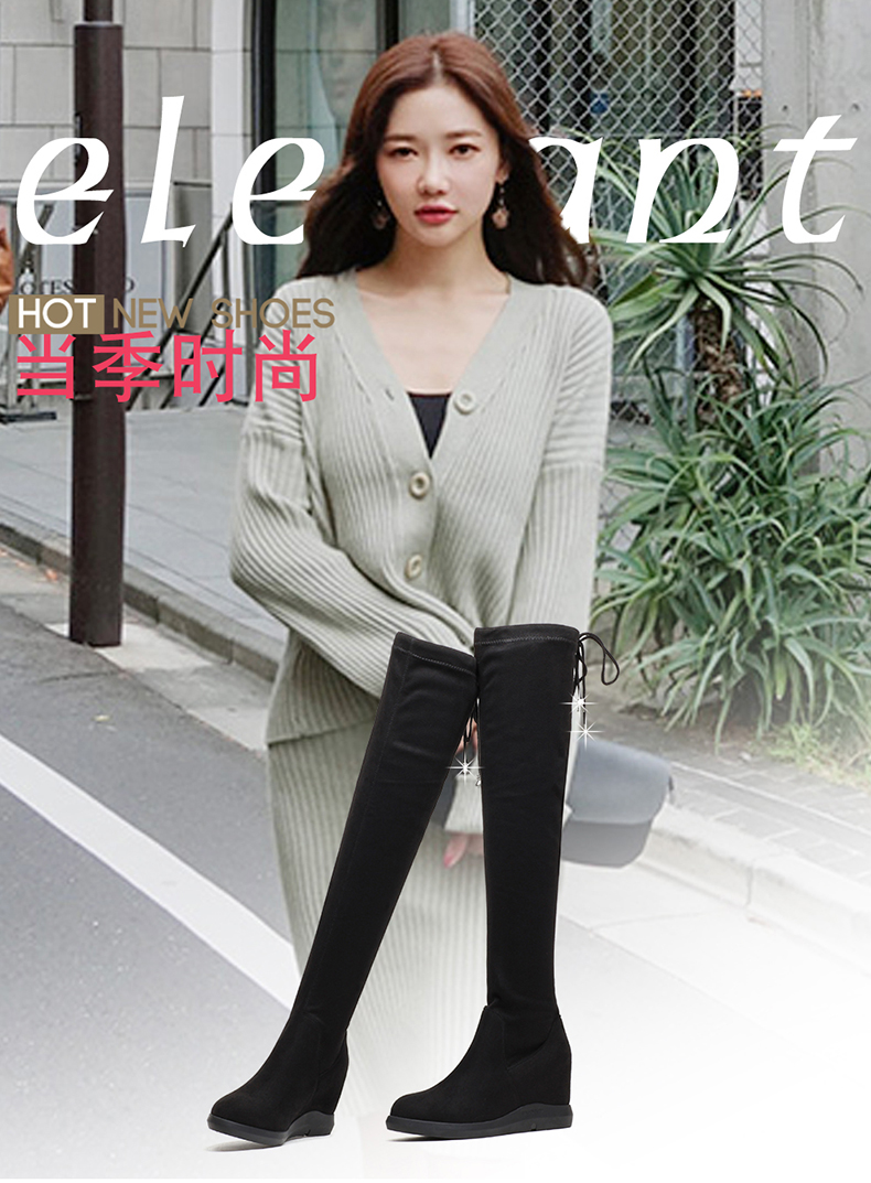 【天猫旗舰店】2019冬季新款,防滑橡胶底,过膝设计,加绒保暖内增高,筒围可拉伸,一秒瘦腿,易脱穿,高颜值显瘦百搭款,不一样的色彩,不一样的风格,快速打造逆天大长腿!!【赠运费险】
