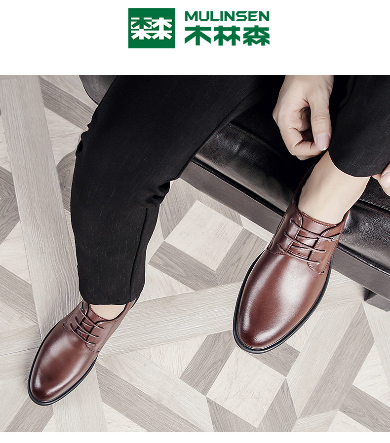 【木林森皮鞋】精选优质牛皮,优质打蜡耐拉系带,柔软透气PU内里,精湛手工缝线,防滑橡胶大底,时尚经典,休闲舒适,绅士品格【赠运险费】