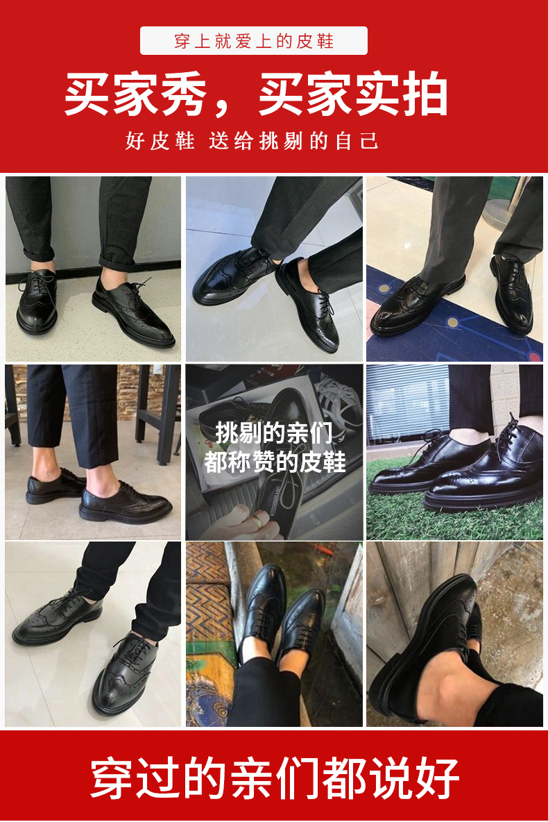 木林森皮鞋男2019新款真皮英伦风雕花商务正装布洛克黑色休闲男鞋