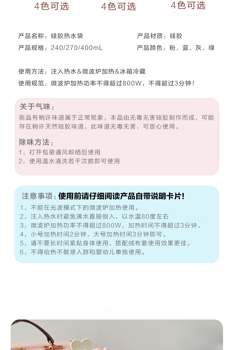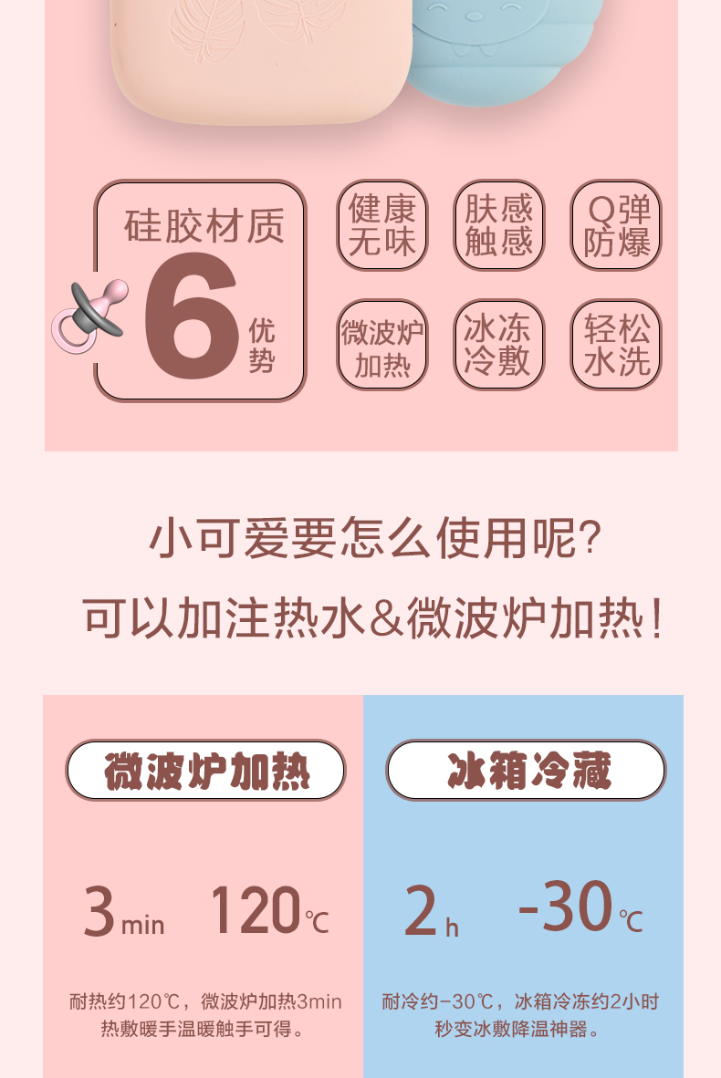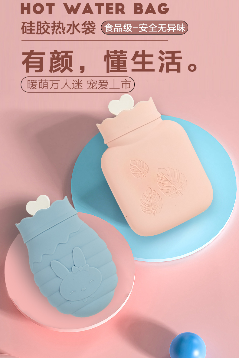 硅胶热水袋充灌注水女迷你可爱随身热敷婴儿暖水袋肚子暖手宝好看