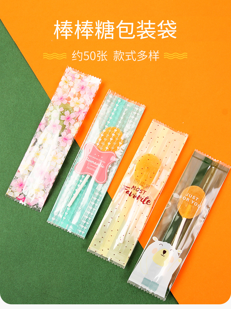 新款水果棒棒糖包装袋麻花密封袋子巧克力糖独立包装机封袋50只