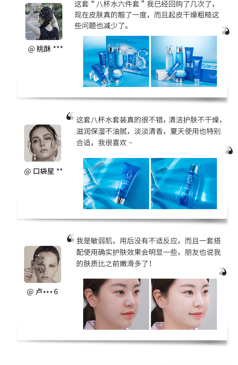 【八杯水】护肤套装6件套抢购:【丽芝雅】八杯水深海奇缘补水护肤套装,超级补水,修护肌底,唤醒肌肤源源水动力,美白肌肤,水润透白,无暇美肌~彻底解决皮肤干燥,改善肌肤~【赠运费险】