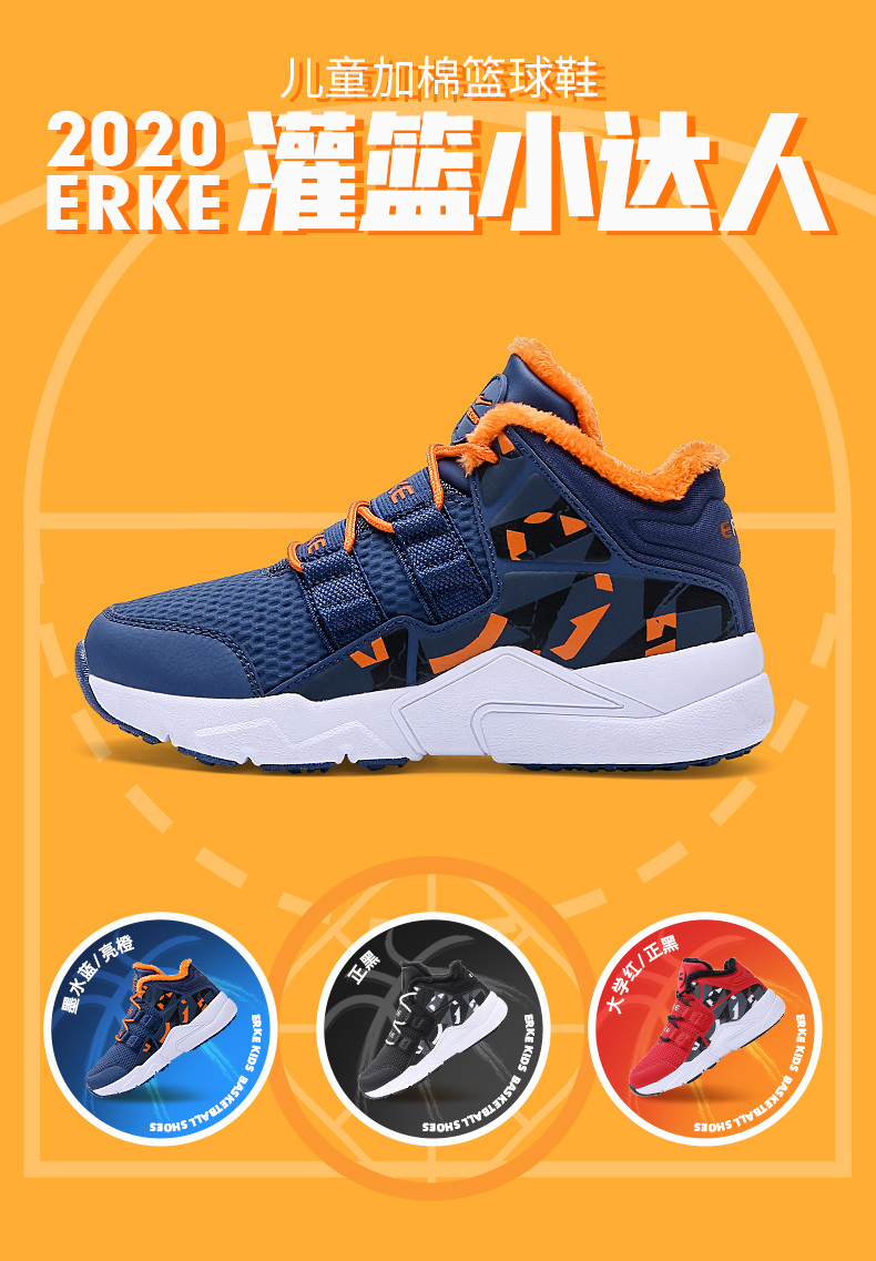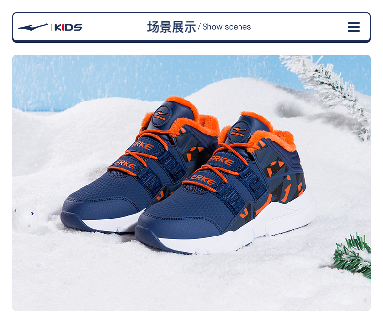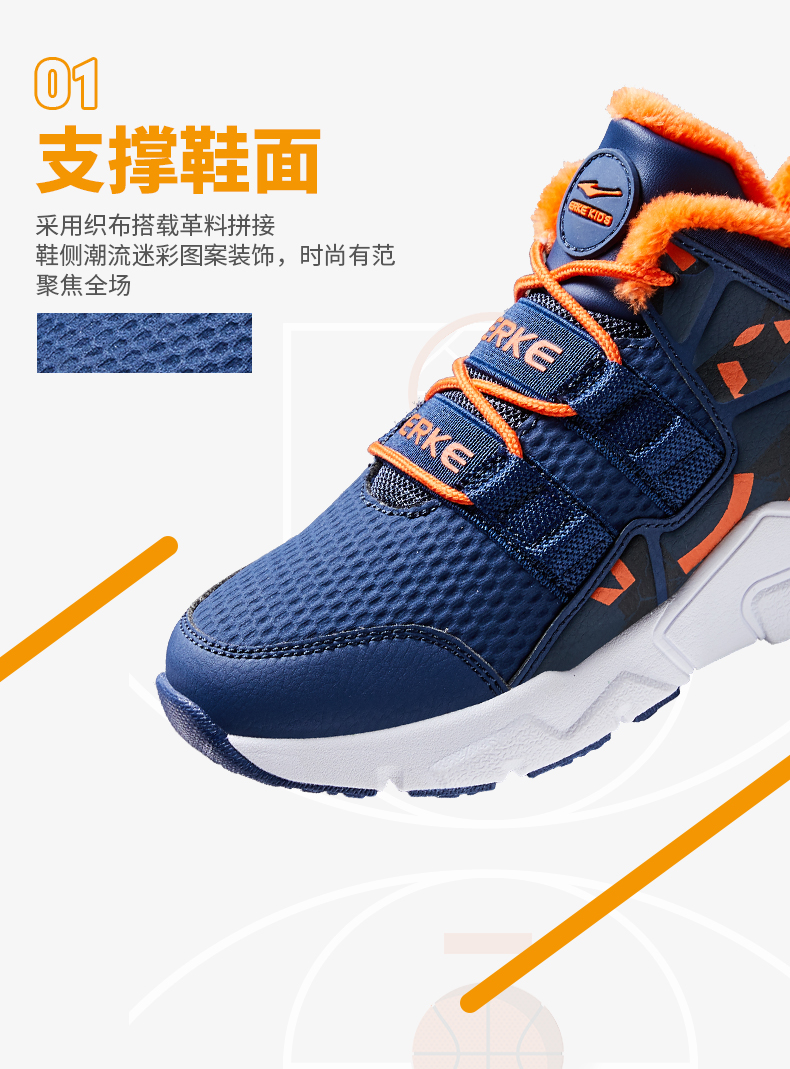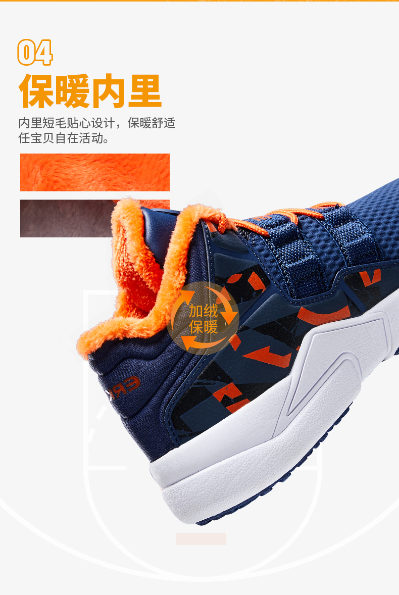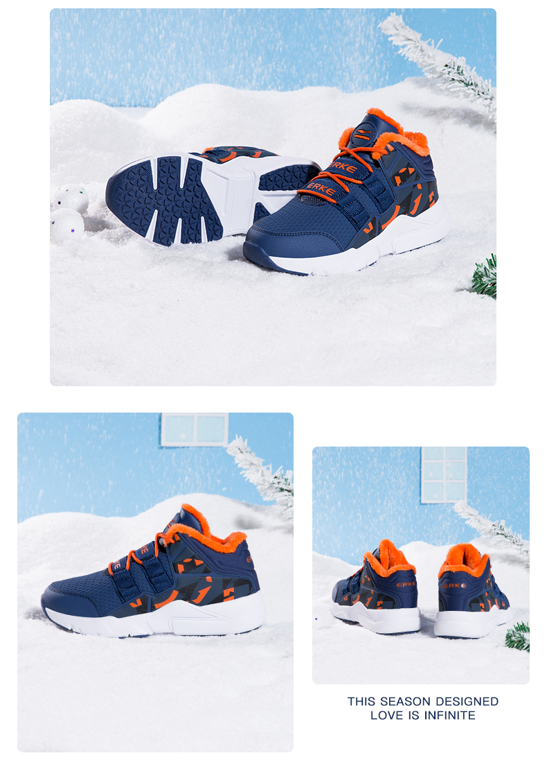 鸿星尔克男童加绒二棉大棉棉鞋2019冬季新款儿童中大童保暖运动鞋