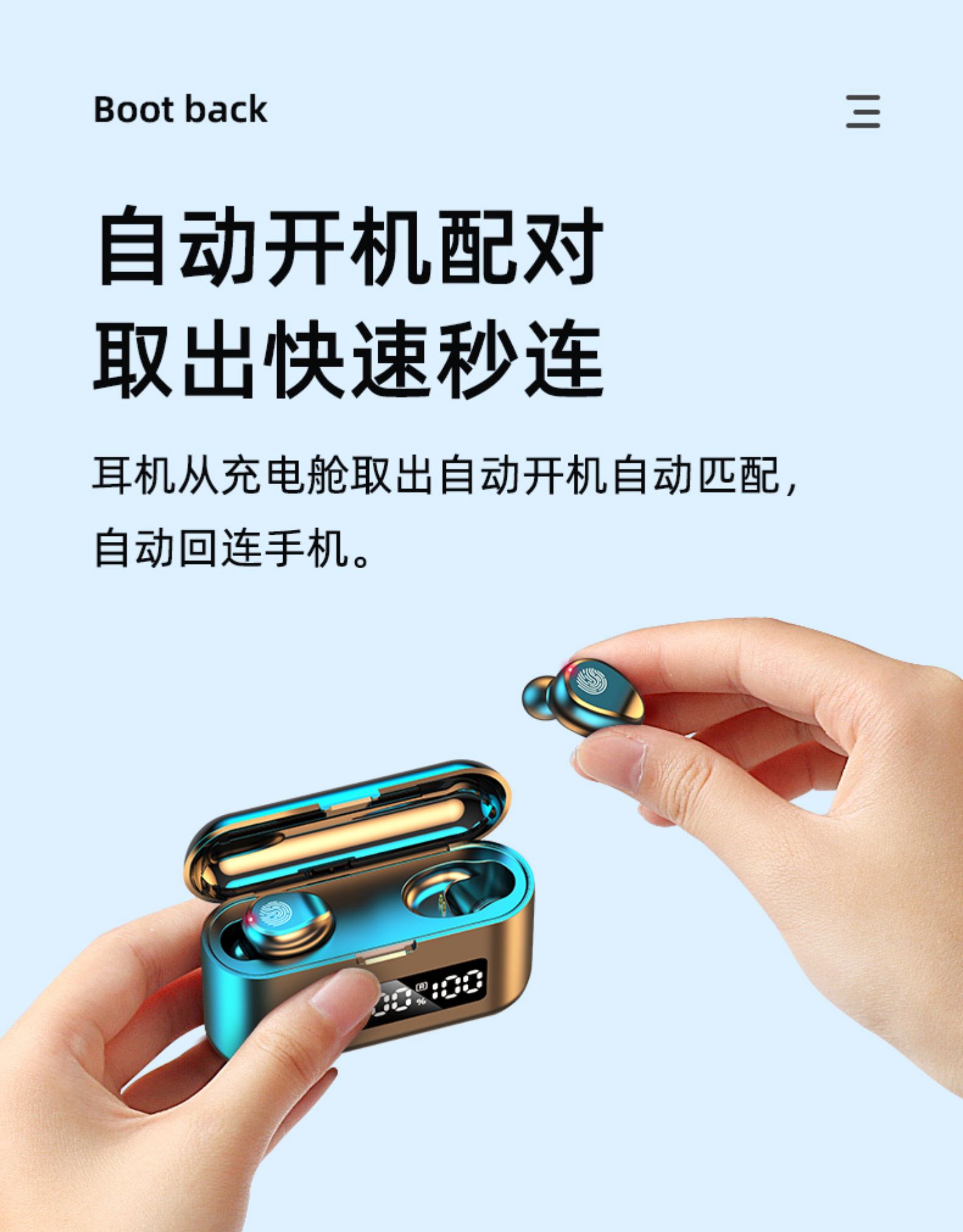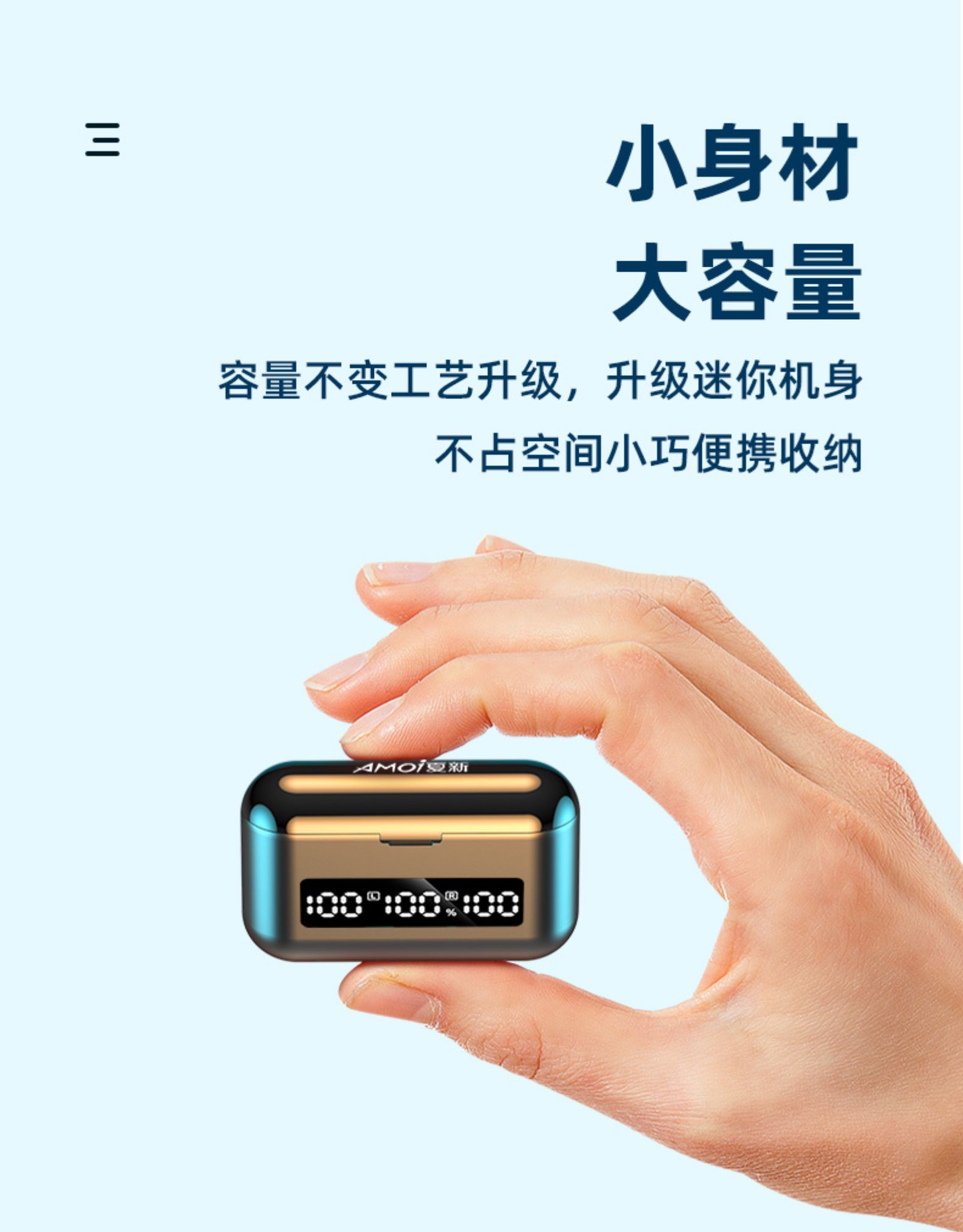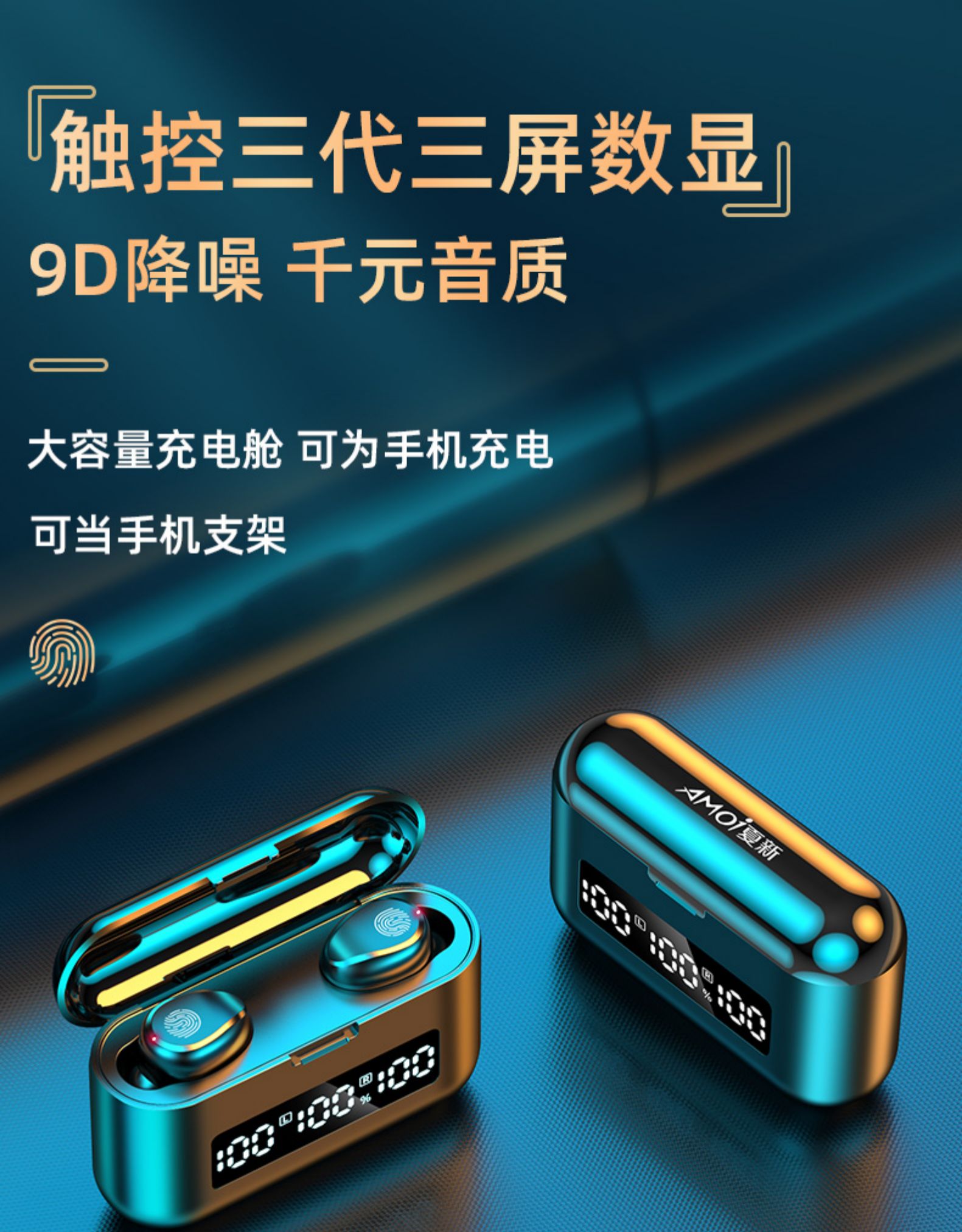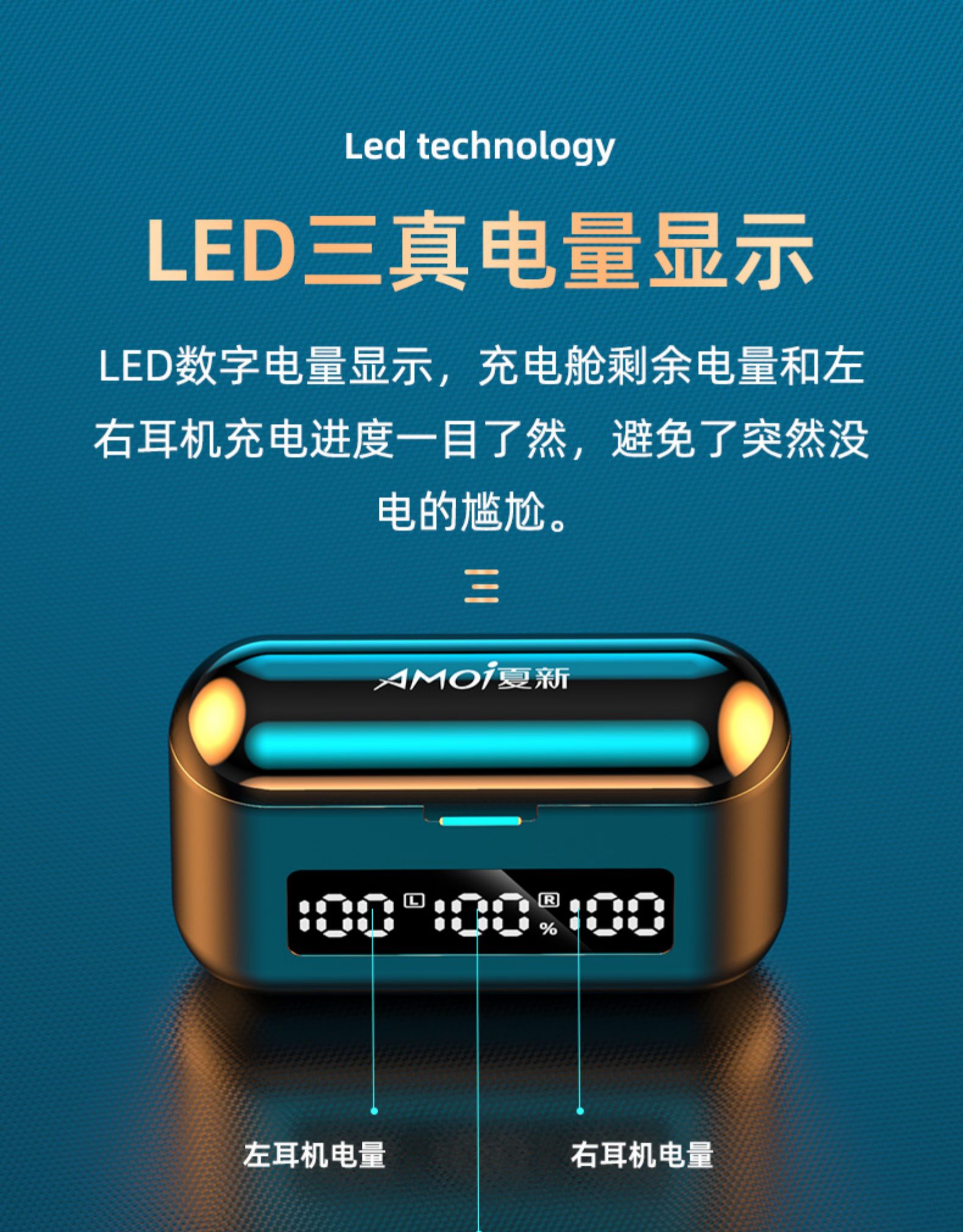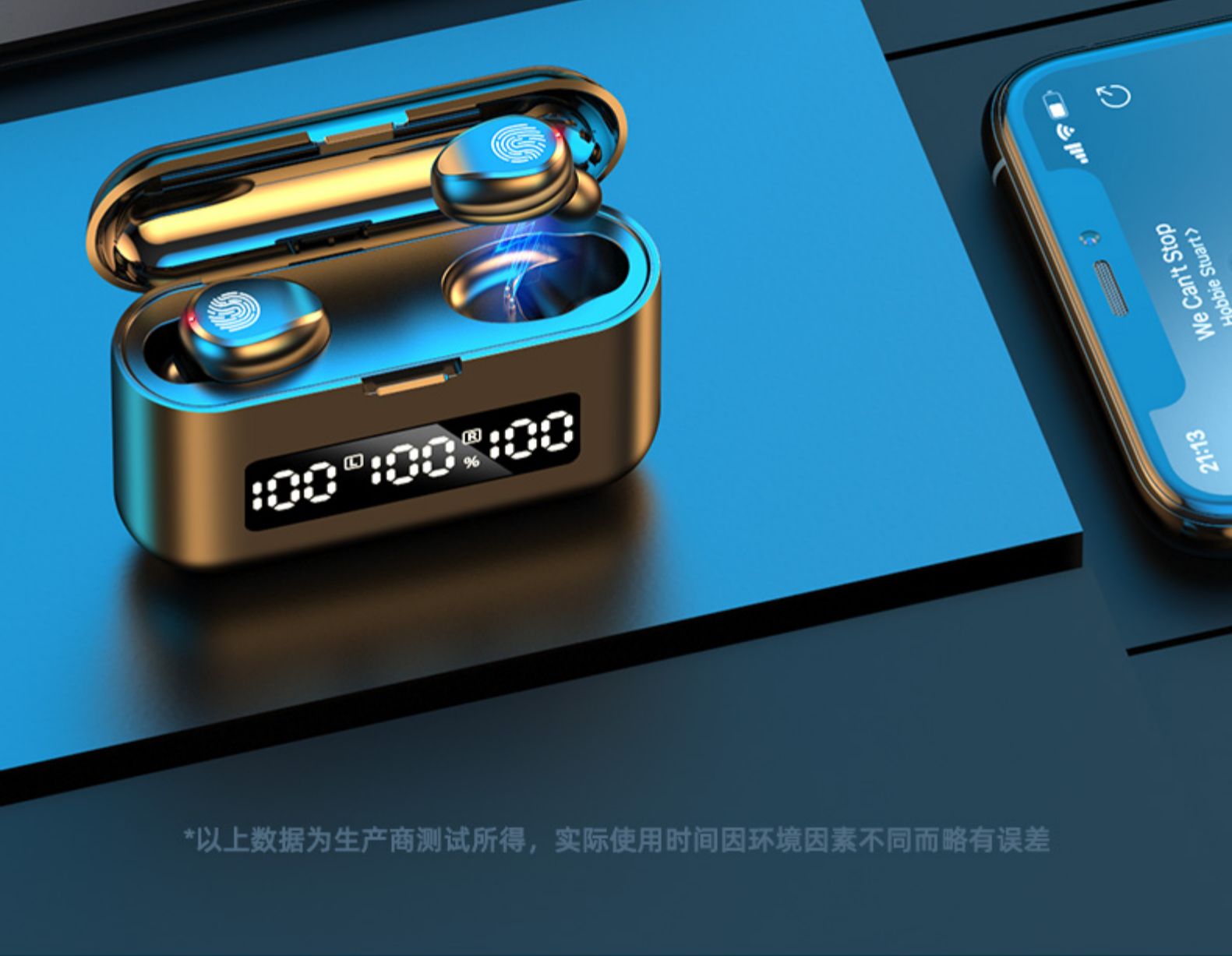 【限时抢购】夏新F9蓝牙耳机5.0,自动开机配对,一键切换上下曲,调节音量,唤醒Siri,8D立体环绕音效,多功能LED充电舱,既可为手机应急充电,还可当手机支架看电影。