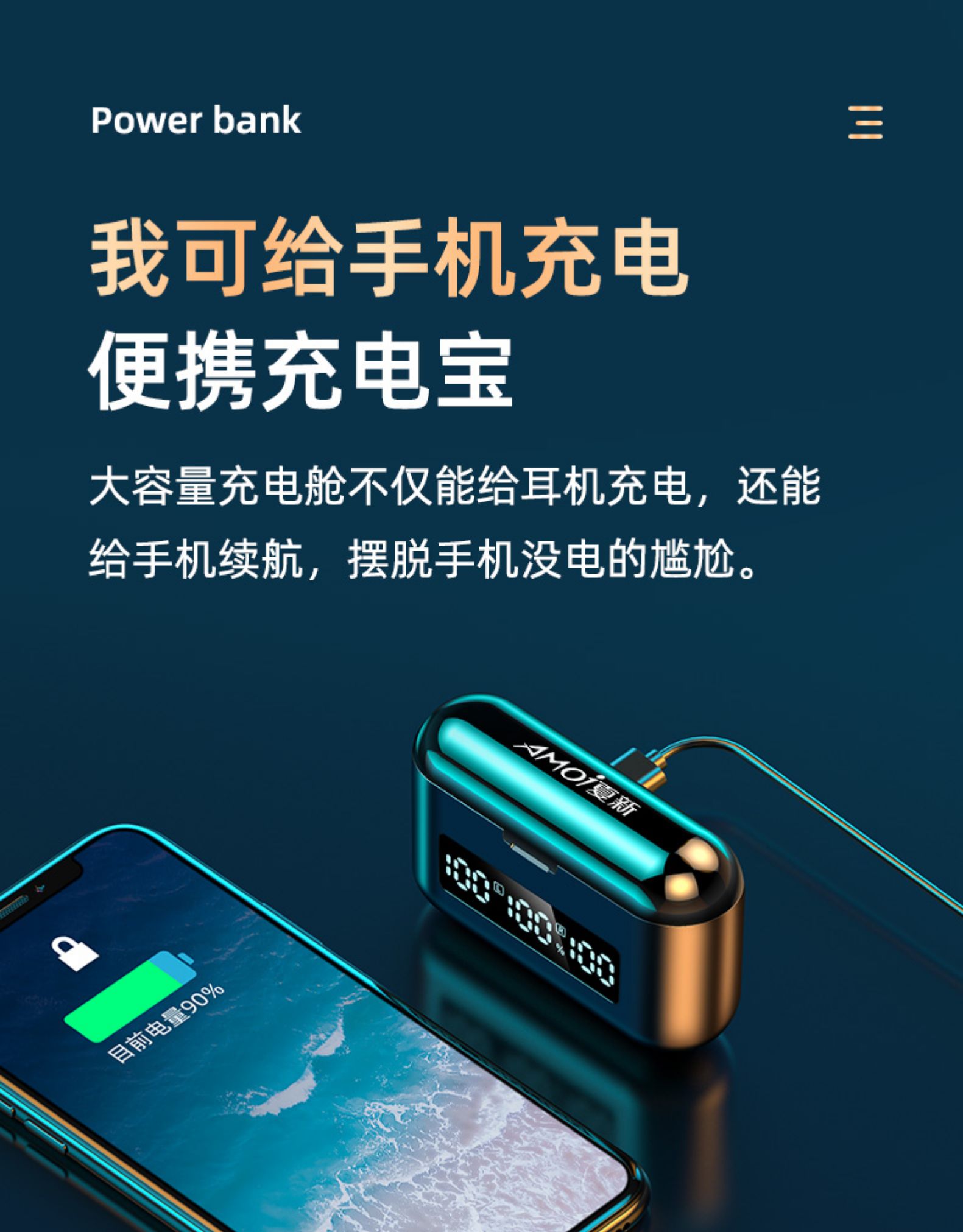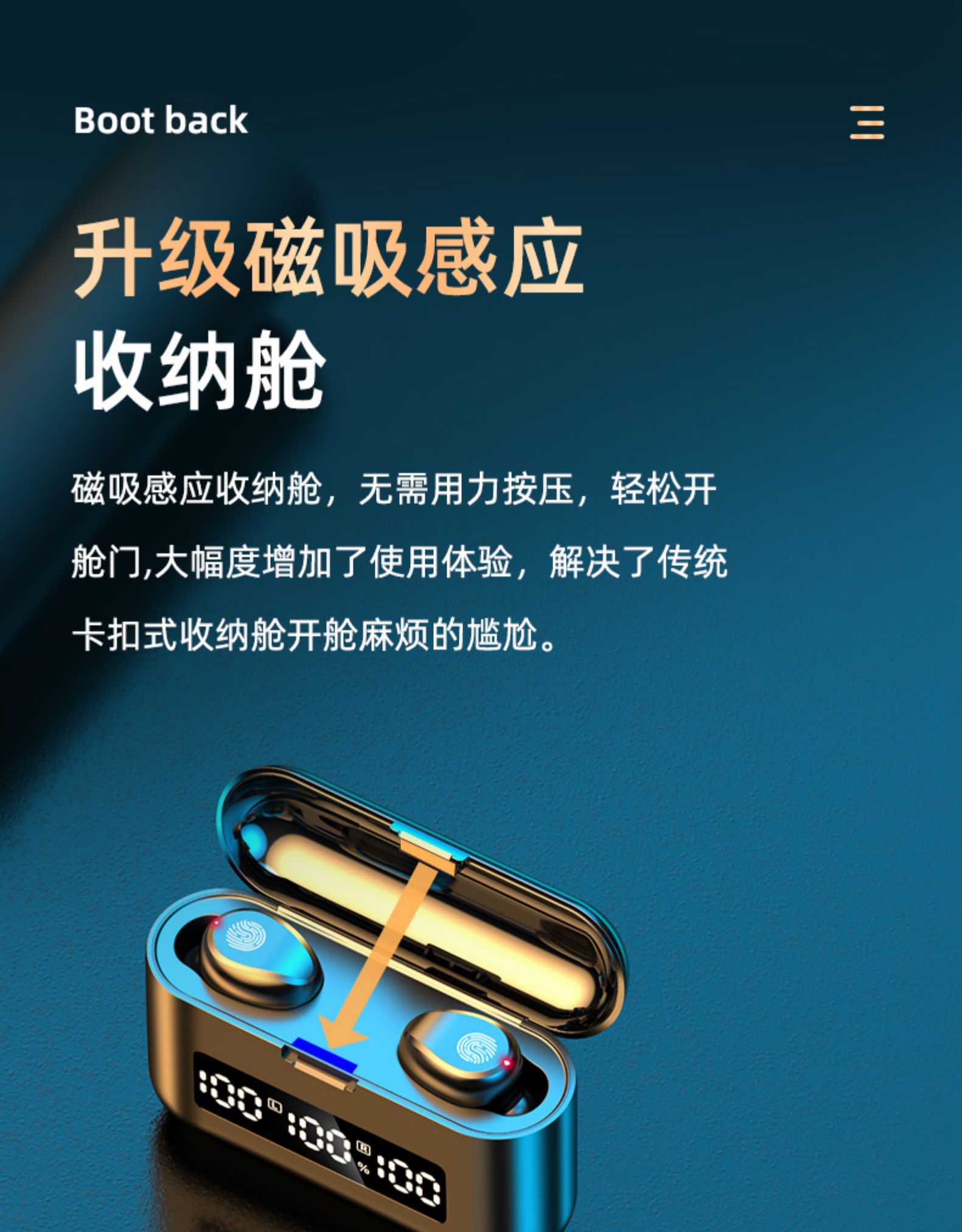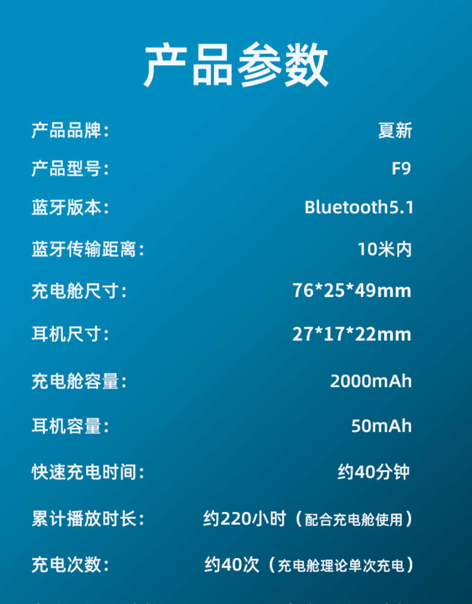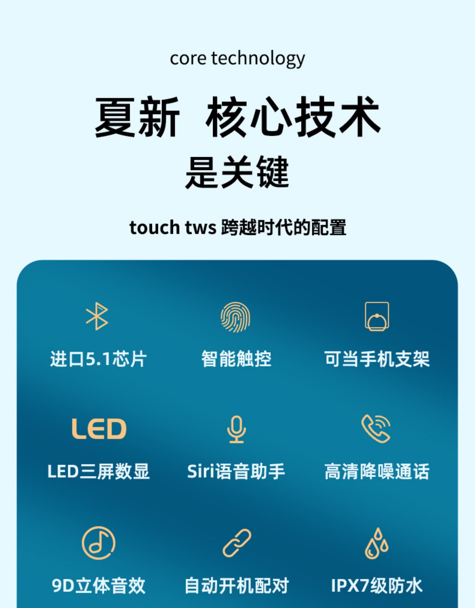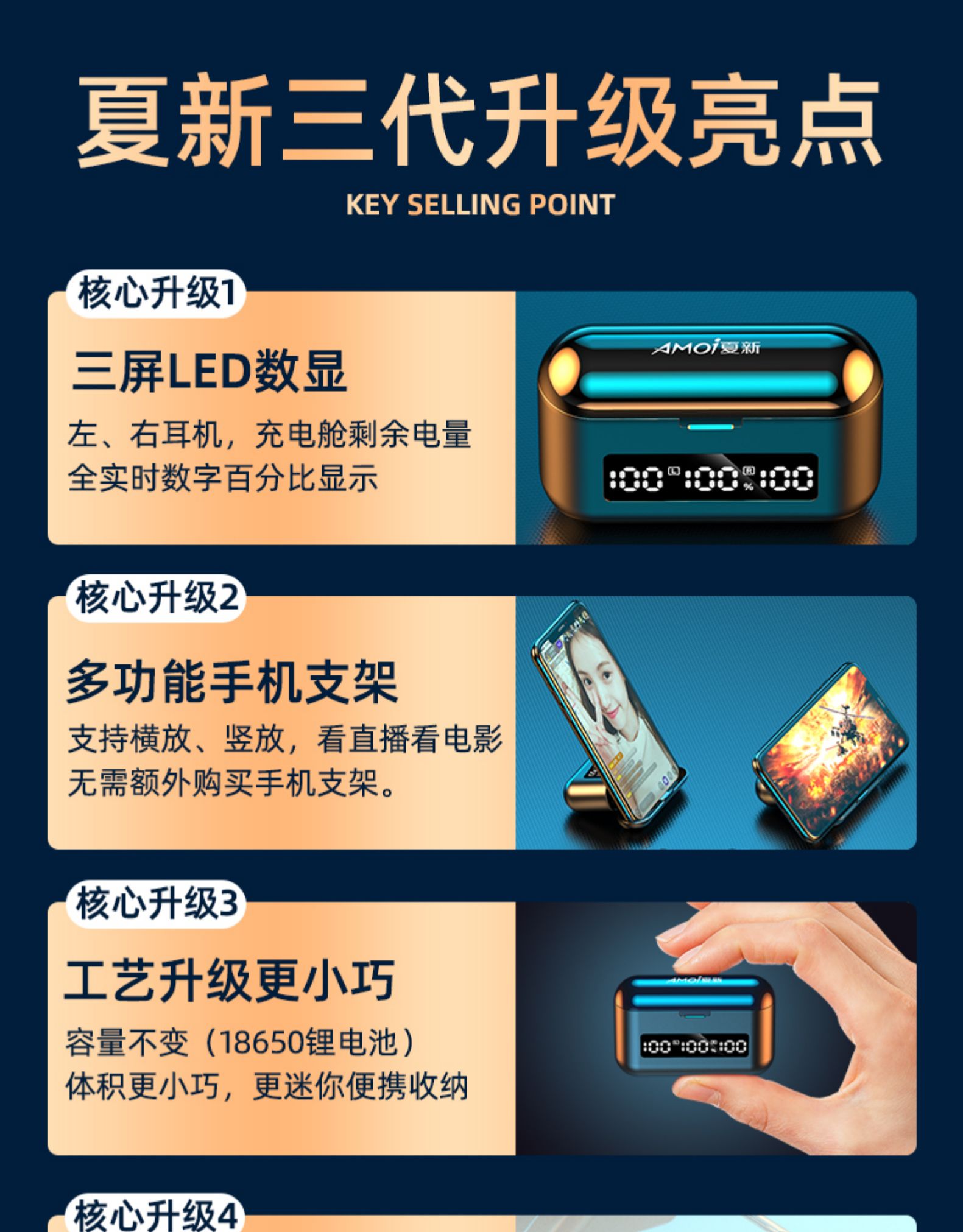 【限时抢购】夏新F9蓝牙耳机5.0,自动开机配对,一键切换上下曲,调节音量,唤醒Siri,8D立体环绕音效,多功能LED充电舱,既可为手机应急充电,还可当手机支架看电影。