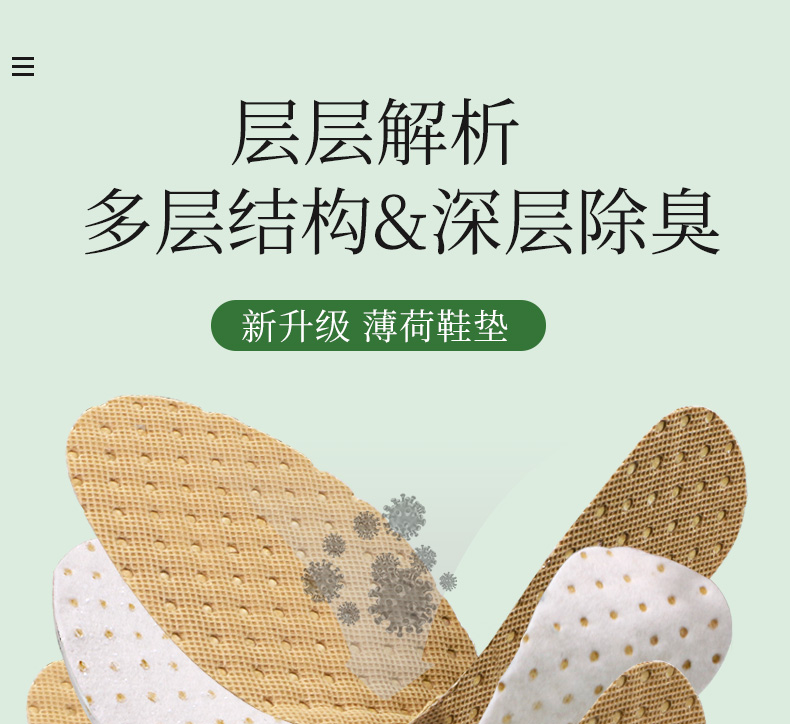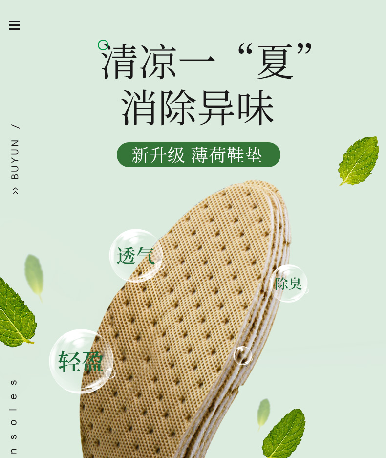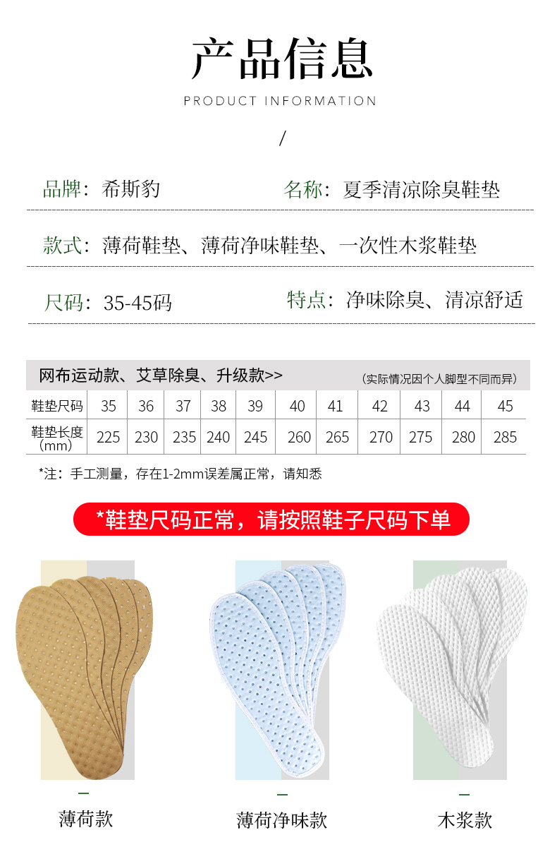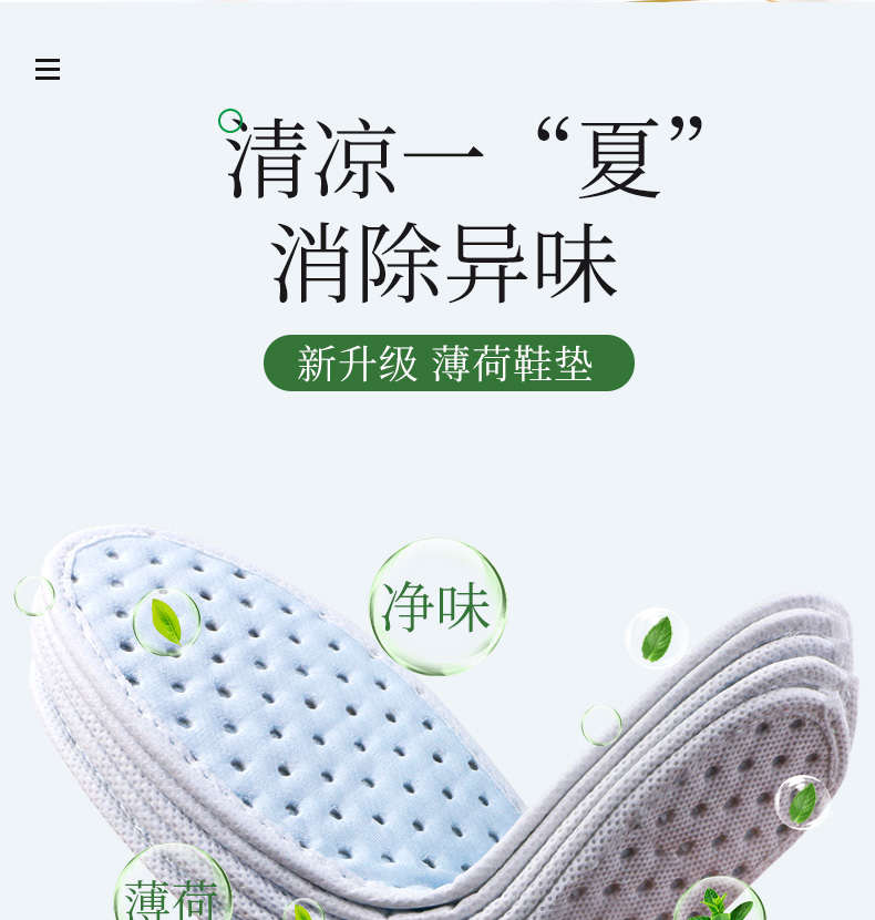 【超值5双装】夏季薄款—薄荷鞋垫,净味除臭、自由裁剪、吸汗干爽、透气舒适,清凉一夏、做你双脚的守护神,清爽过夏天!