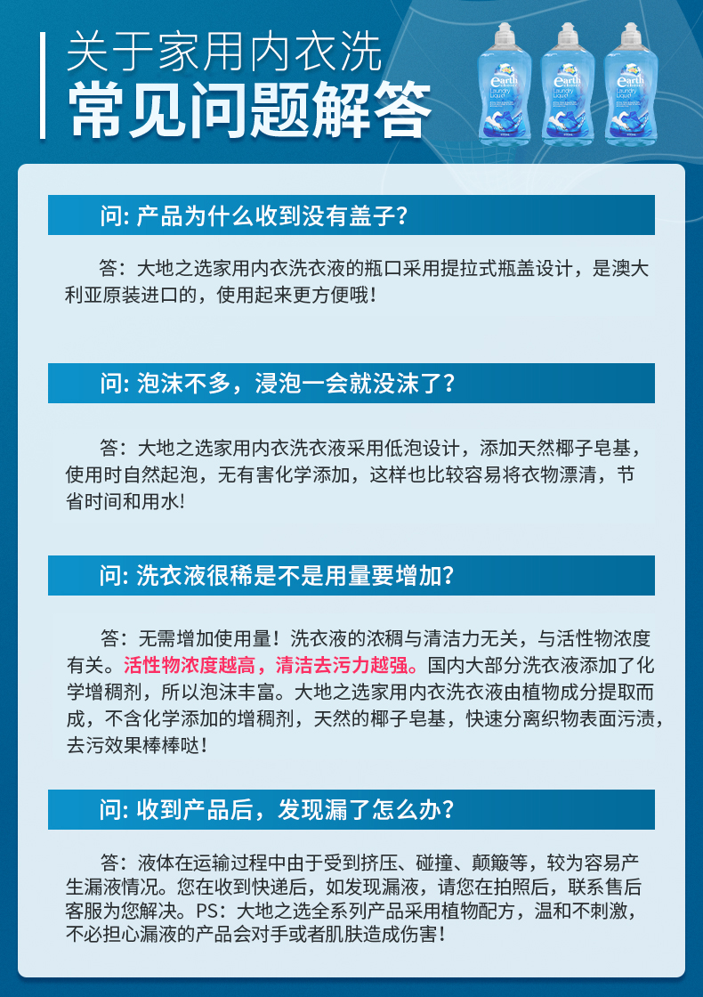 澳洲进口,大份量,专业洗内衣物,内衣专用,温和无刺激,去渍消菌,快速冲洗,不留任何化学残留物,关爱自己,避免妇科病!【赠运费险】