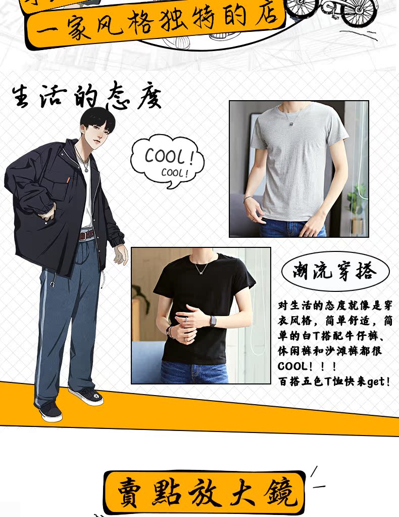 纯棉材料,不起球、不褪色、不缩水,合身舒适,透气吸汗,时尚潮流,简约百搭,出街就是最靓的仔!!