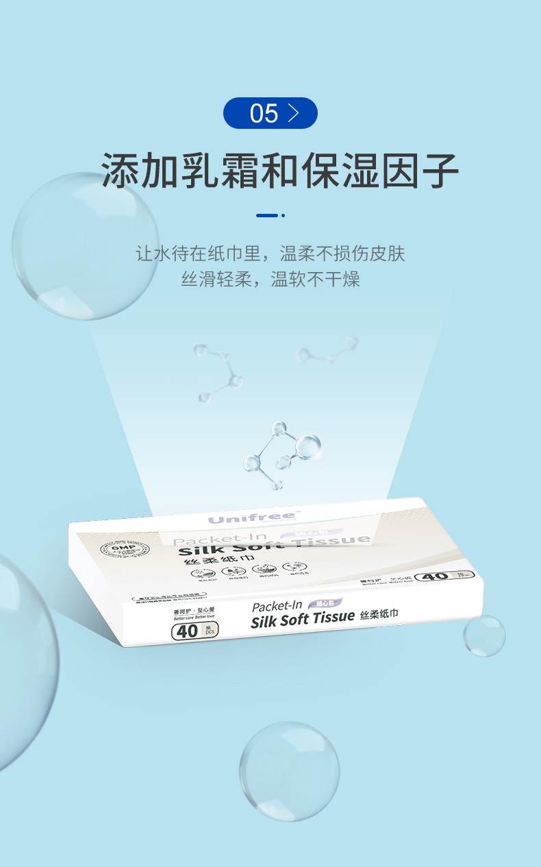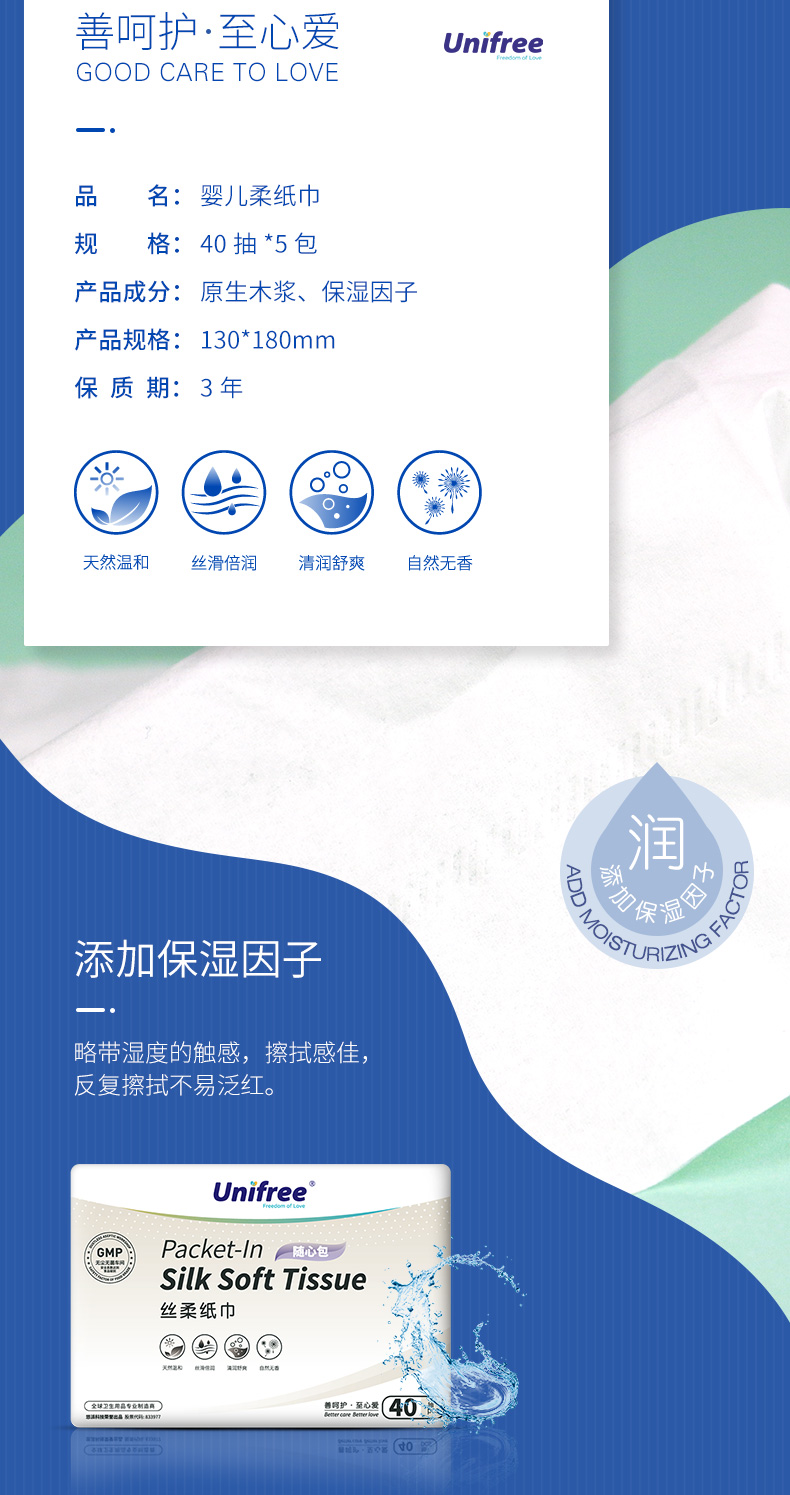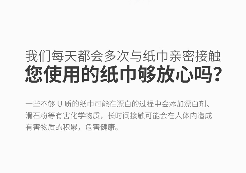 采用原生木浆,不含荧光剂漂白剂,婴儿孕妇专用抽纸,三层加厚湿水不破,纸质如牛奶般丝滑,如棉花般绵柔!