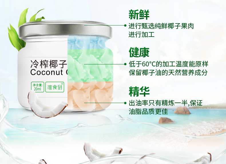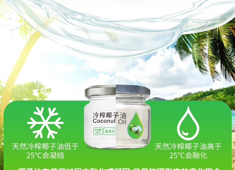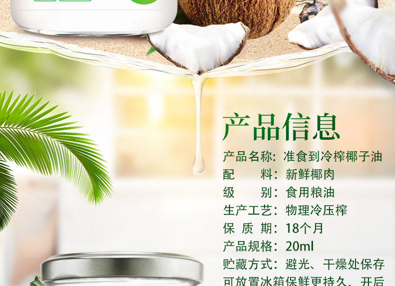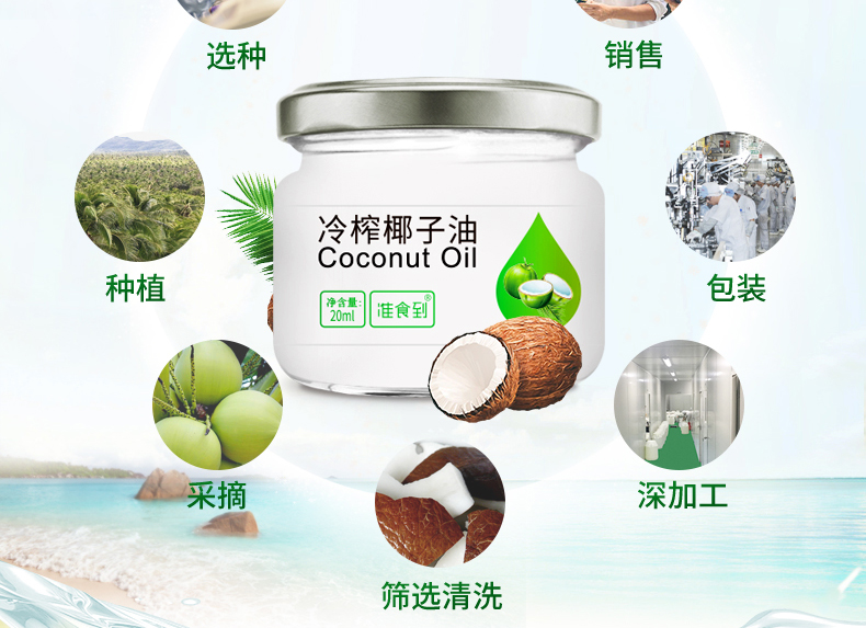 买1送1 准食到冷榨椰子油食用油护发纯小瓶旅行装Coconut oil20ml