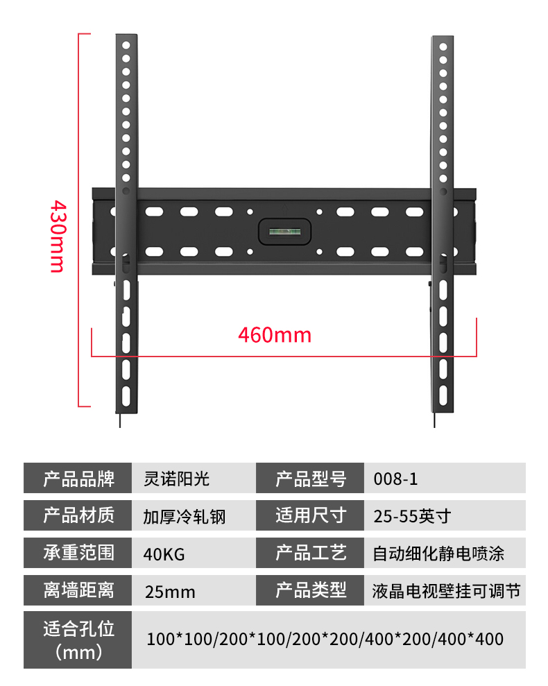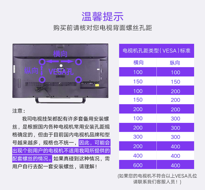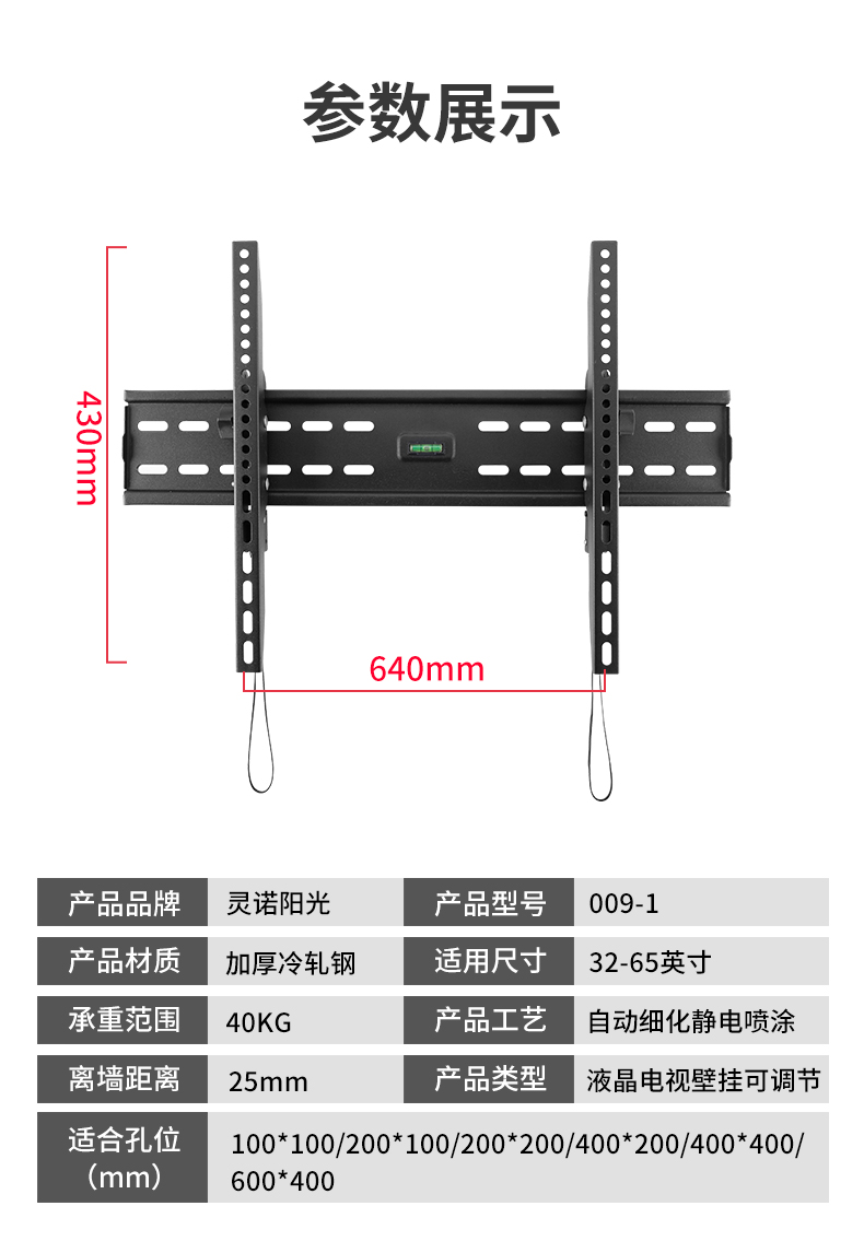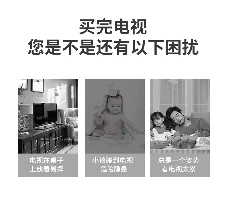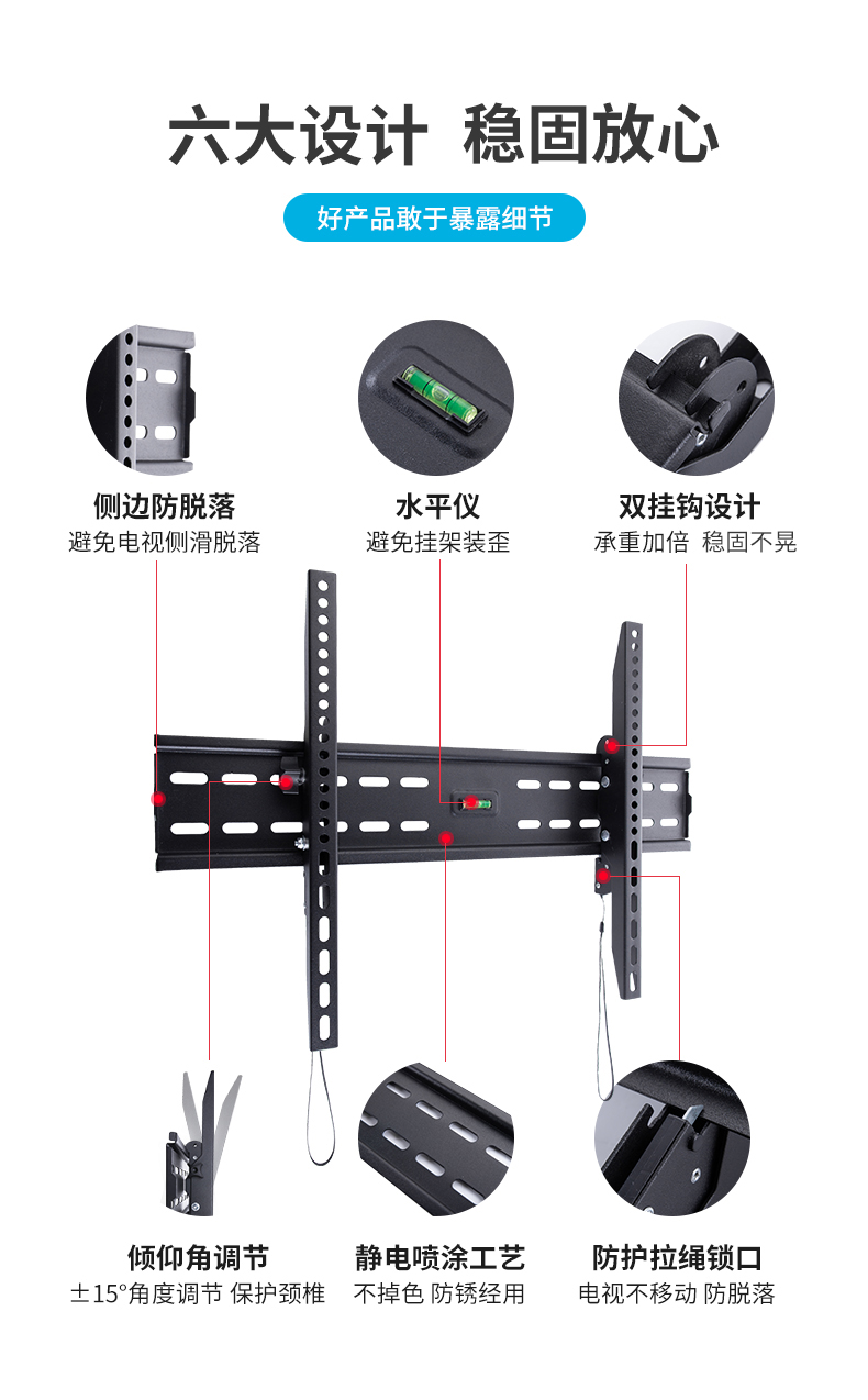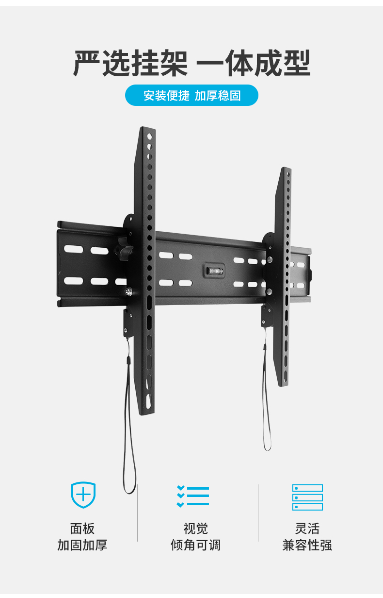终身质保,五年内换新,送螺丝包。加重加厚冷轧钢通用挂架,安全螺丝稳固视听,弧形边角时尚安全,静电喷涂,防腐耐绣,安装简单,价格优惠,赠运费险。
