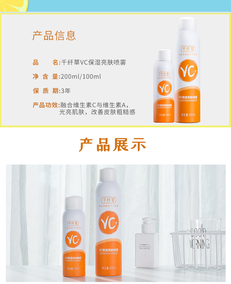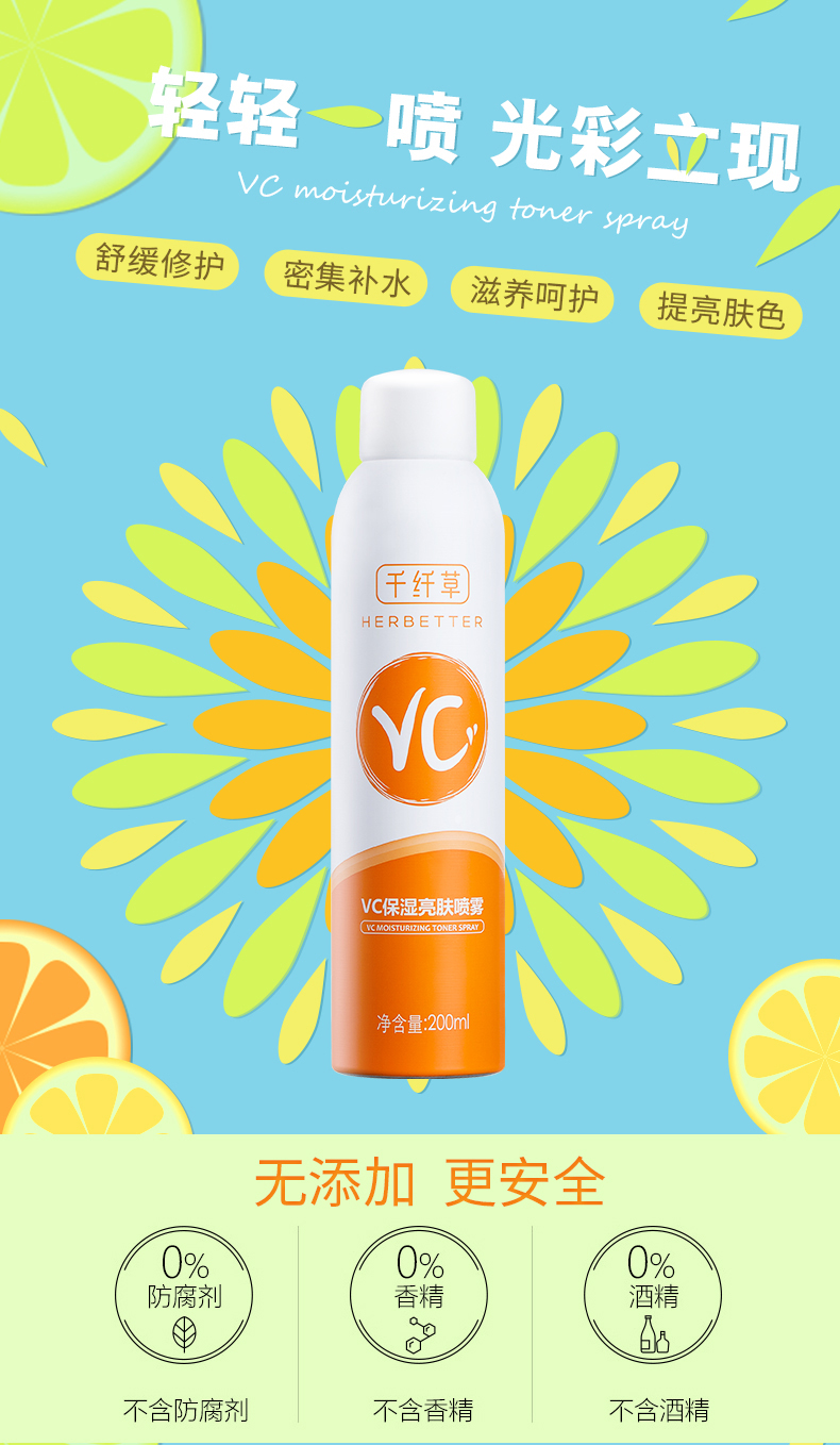 千纤草vc喷雾 补水保湿舒缓提亮肤色 爽肤水化妆水 定妆喷雾200ml