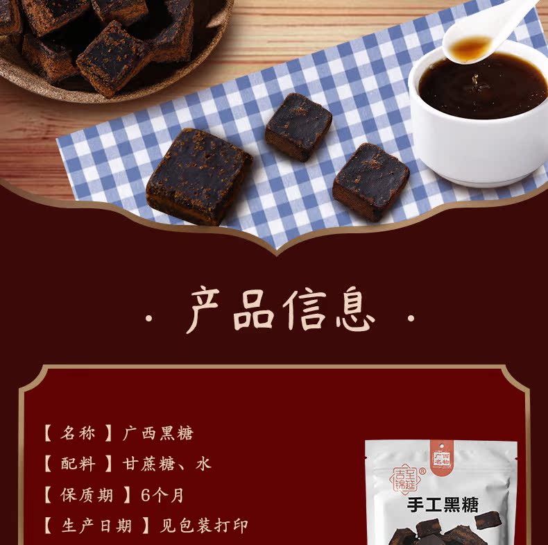 广西正宗古法黑糖姜茶蔗糖纯正调理土老红糖块手工正品气血250g