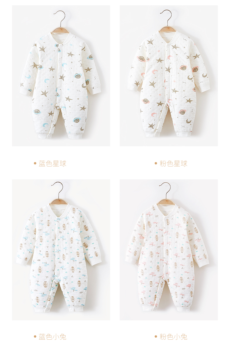 婴儿连体衣秋冬季纯棉夹棉加厚0新生儿衣服冬装1男女宝宝哈衣爬服