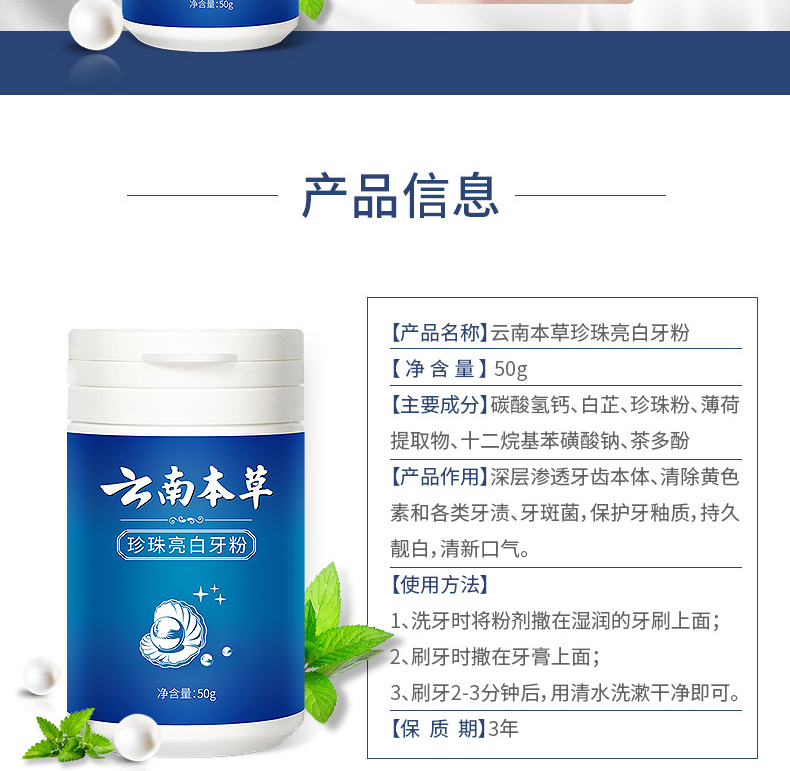 云南本草亮白洗牙粉非牙结石速效去黄牙齿洗白美白神器牙黄去除器