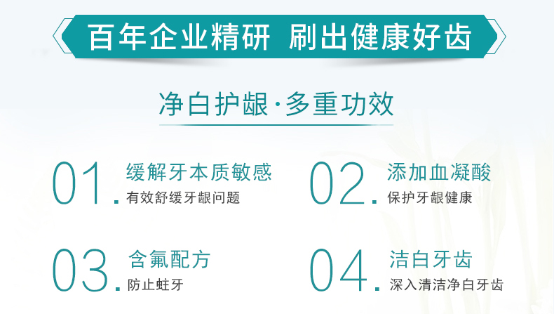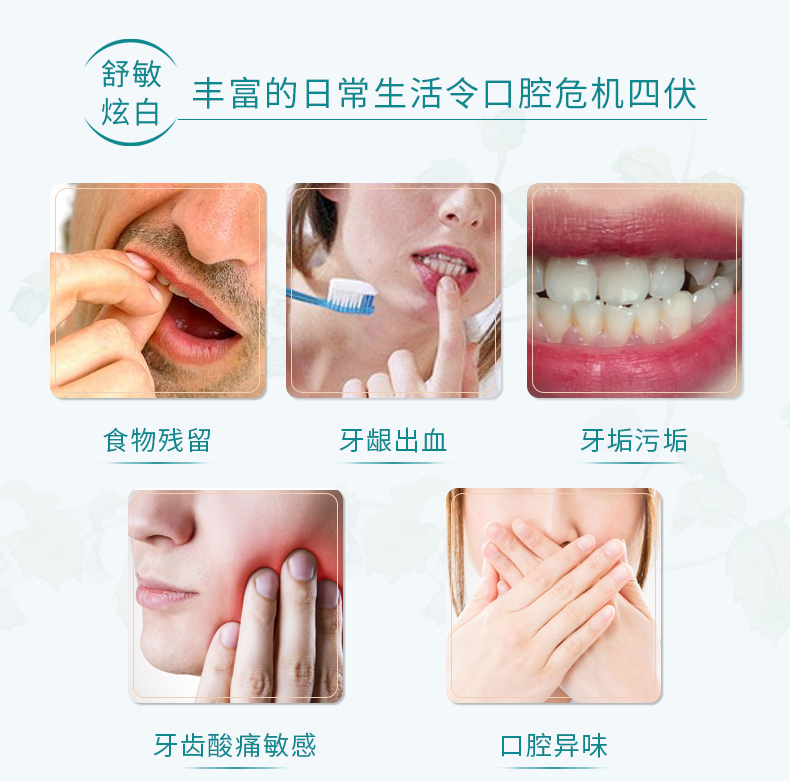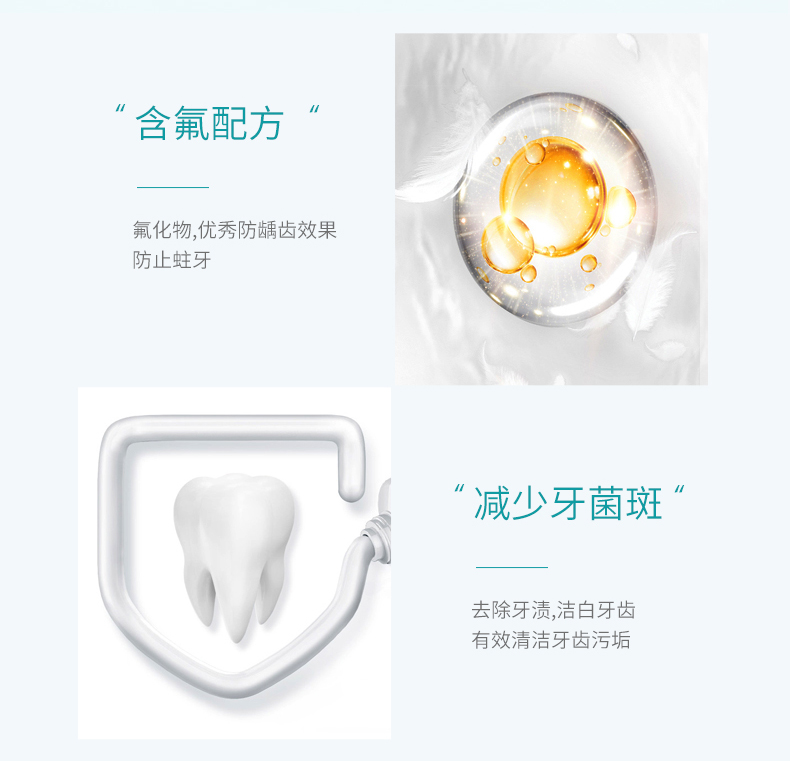 温和去渍,亮白牙齿,清新口气,让你彻底摆脱蛀牙、口臭带来的烦恼!从牙齿根部出发,有效去黄去渍,由内而外的亮白,自信就是这么笑出来!