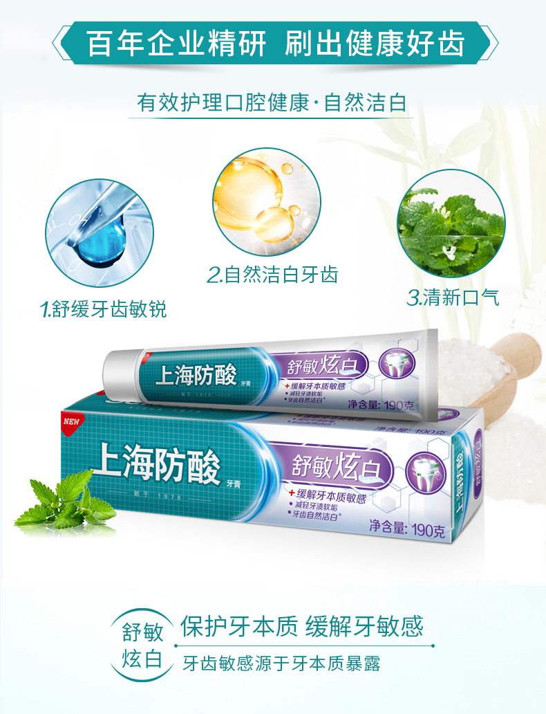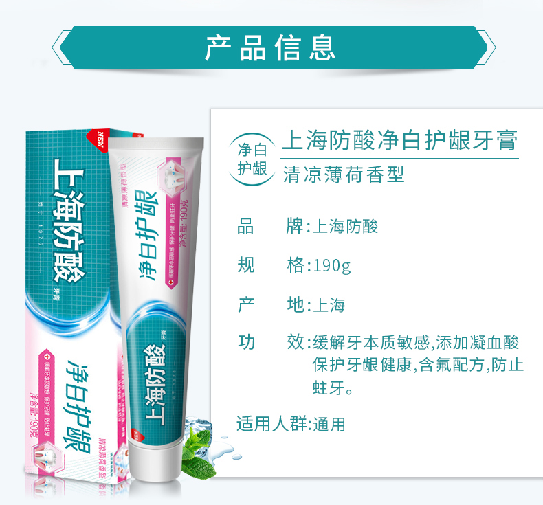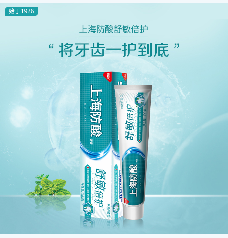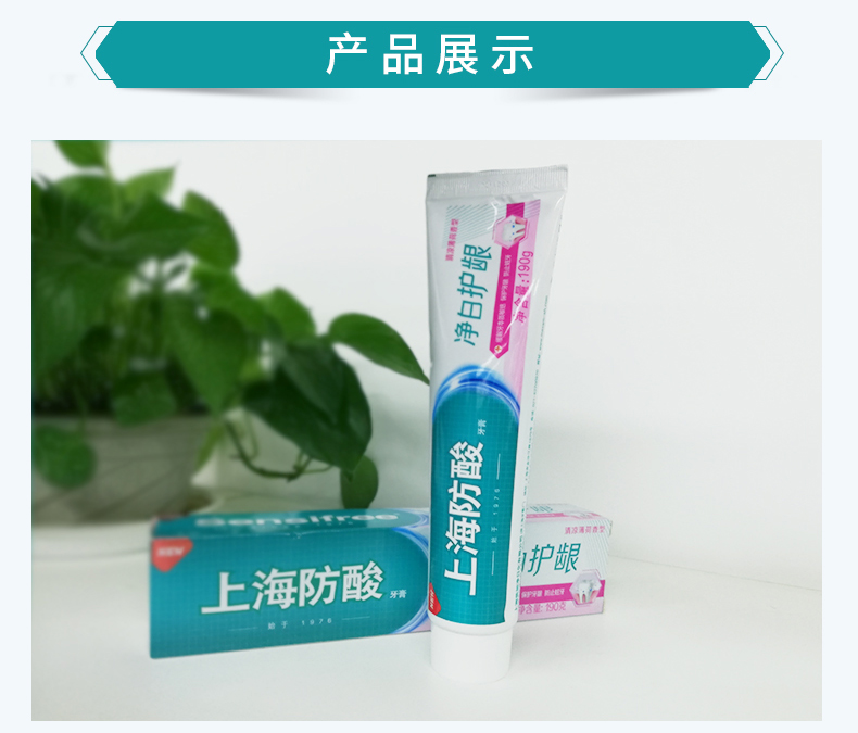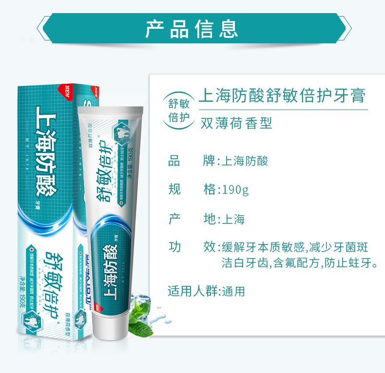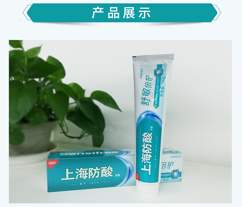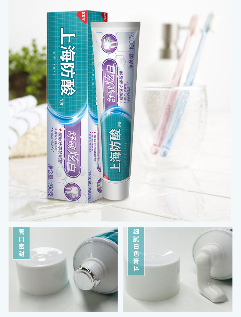 上海防酸牙膏净白护龈舒敏倍护清新口气防蛀固齿190g*2支