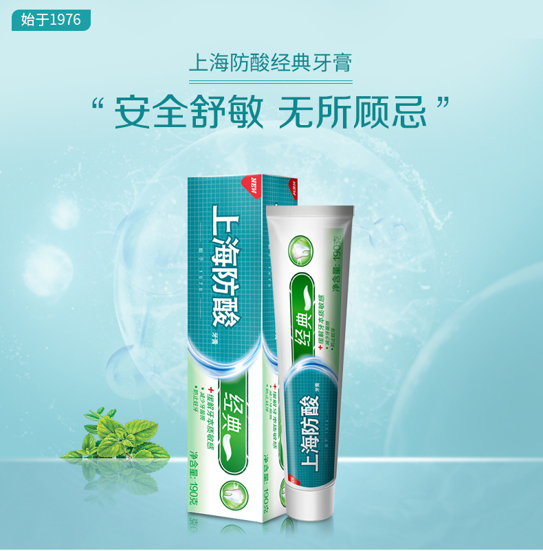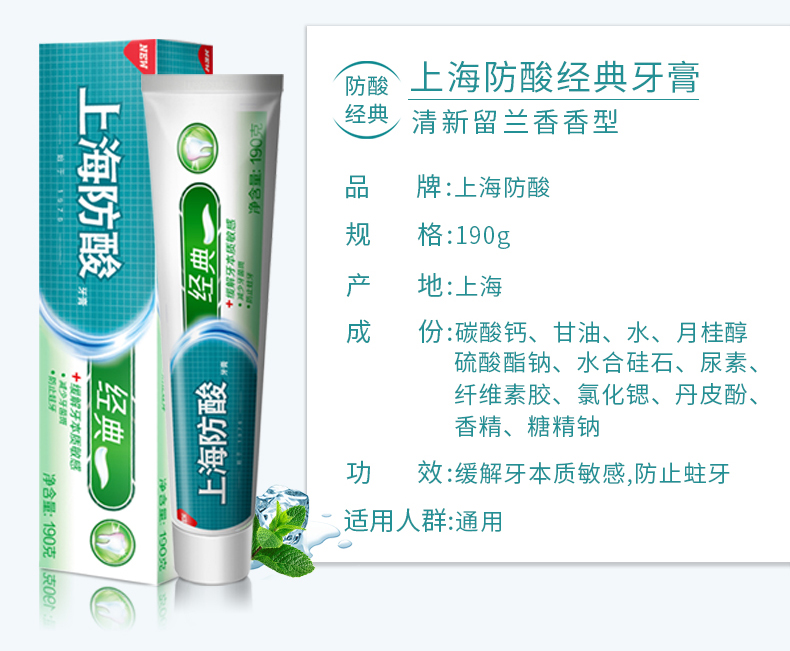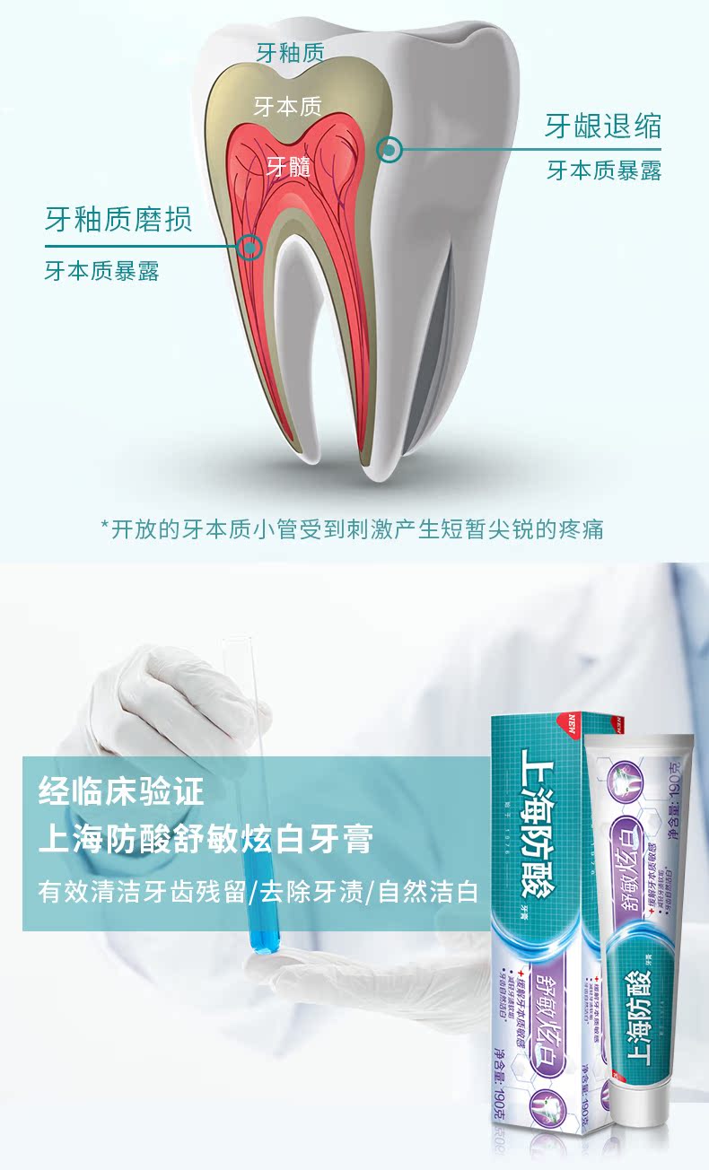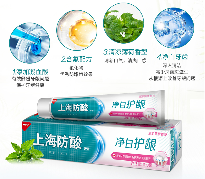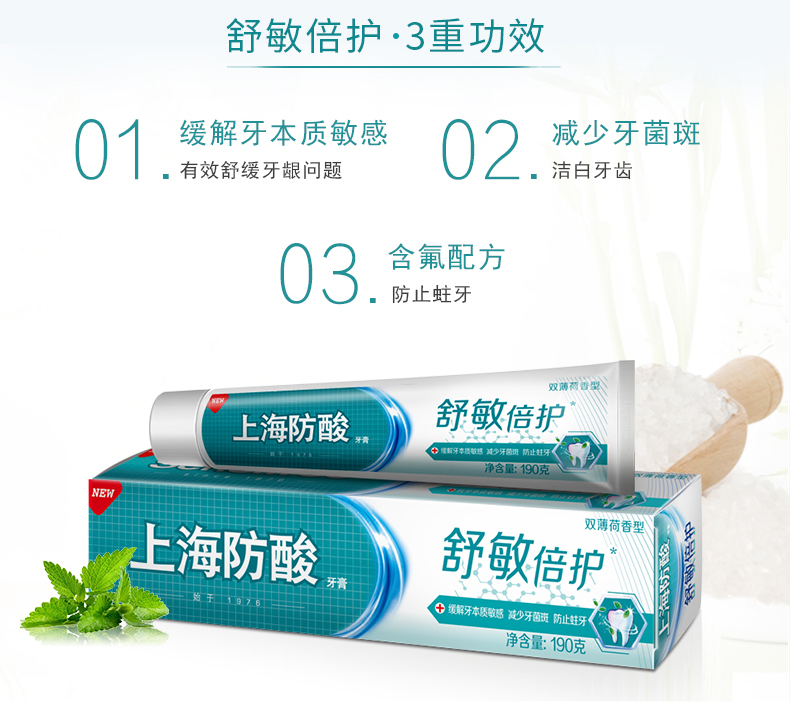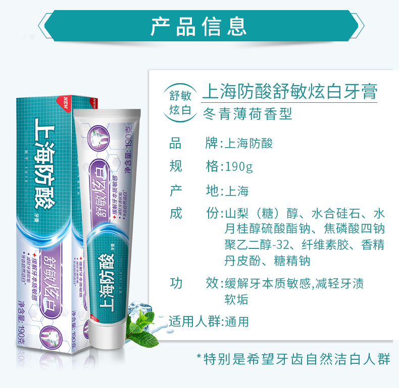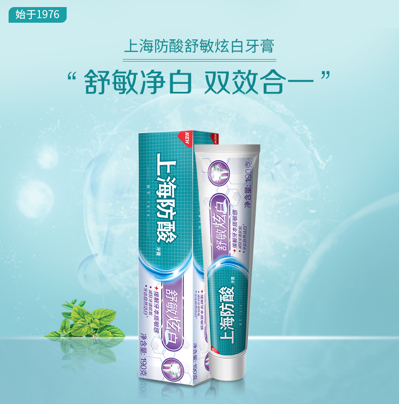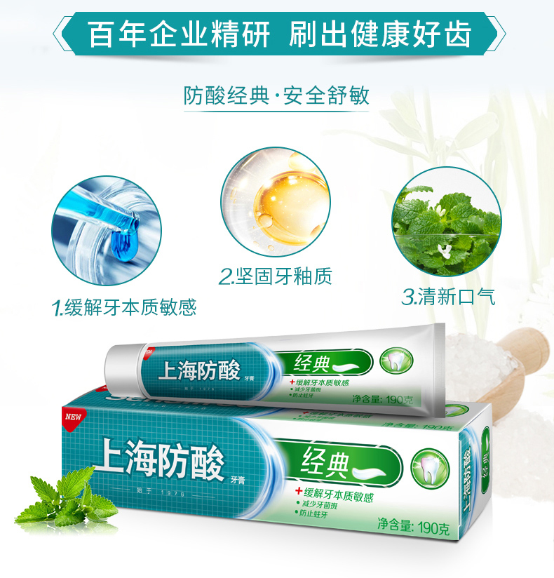 上海防酸牙膏净白护龈舒敏倍护清新口气防蛀固齿190g*2支