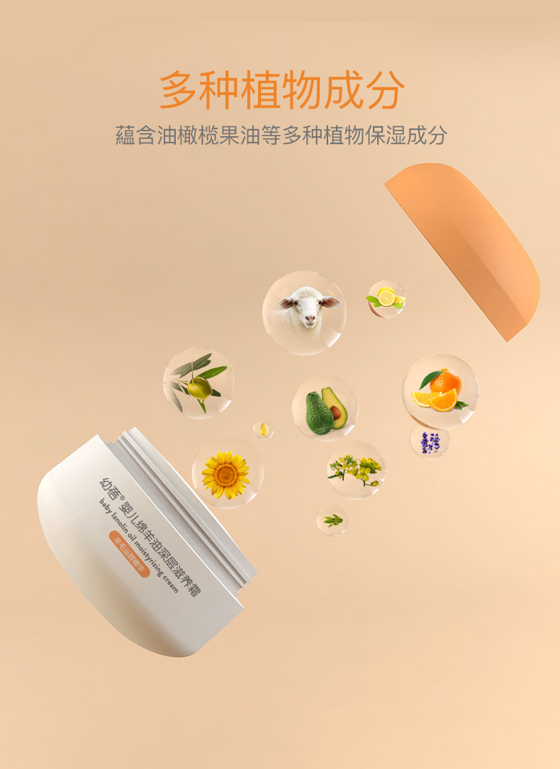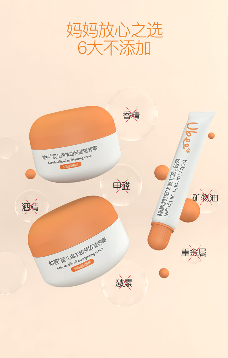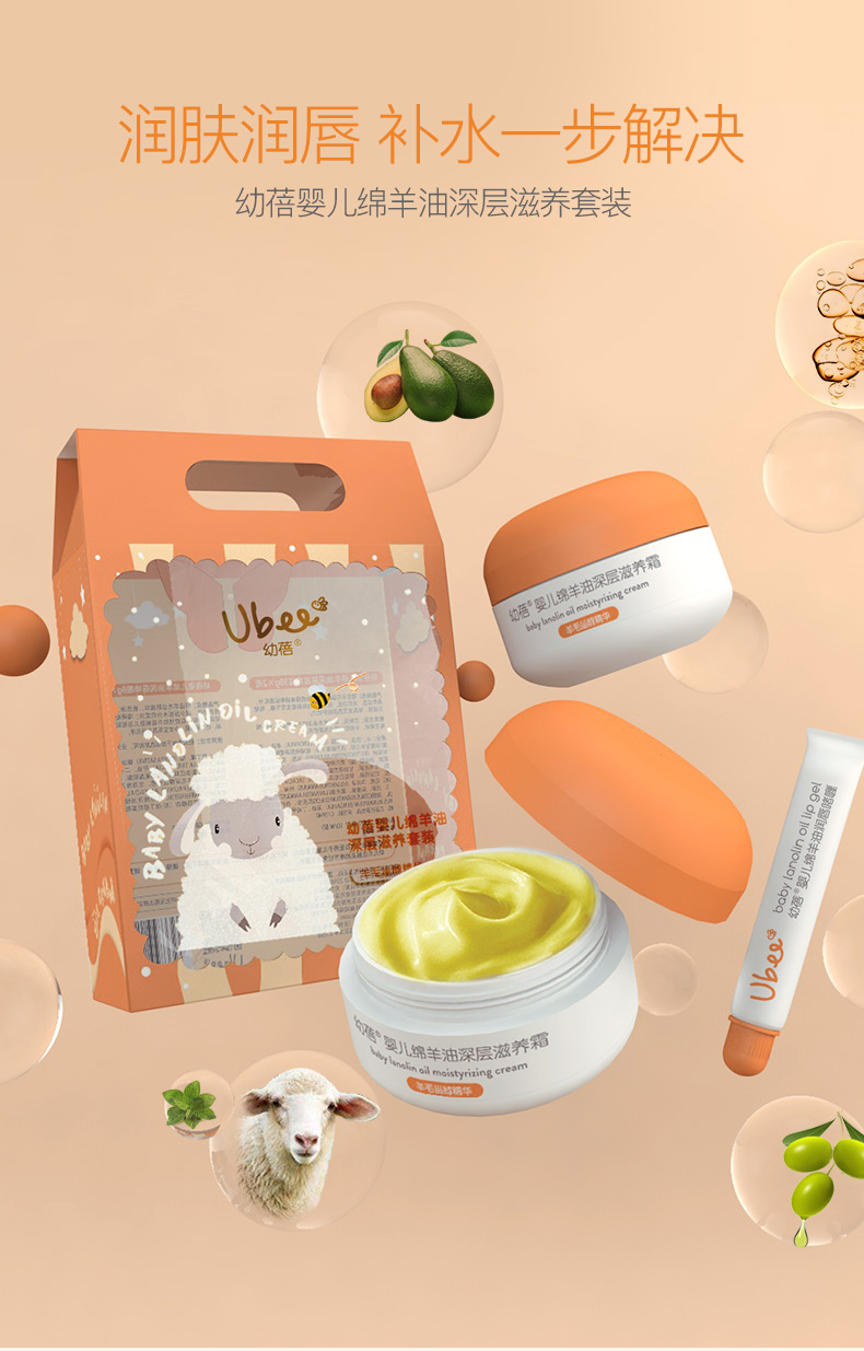 【30g*2瓶+8g*1支护肤滋养润肤霜】:幼蓓Ubee婴儿绵羊油深层滋养霜,蕴含羊毛脂精华,多种植物成分,轻易透气易吸收,护肤补水,深层滋养,温和亲肤,拒绝干裂,是宝宝优选商品之一。