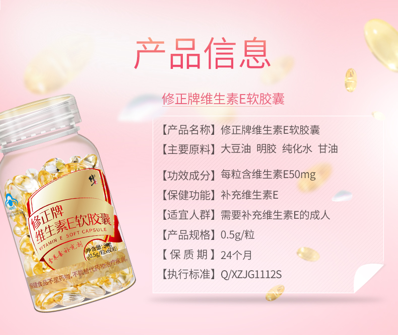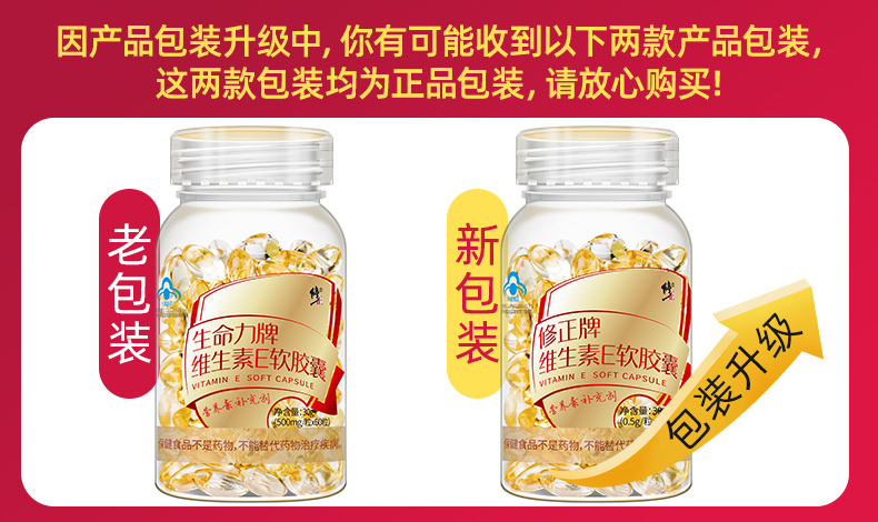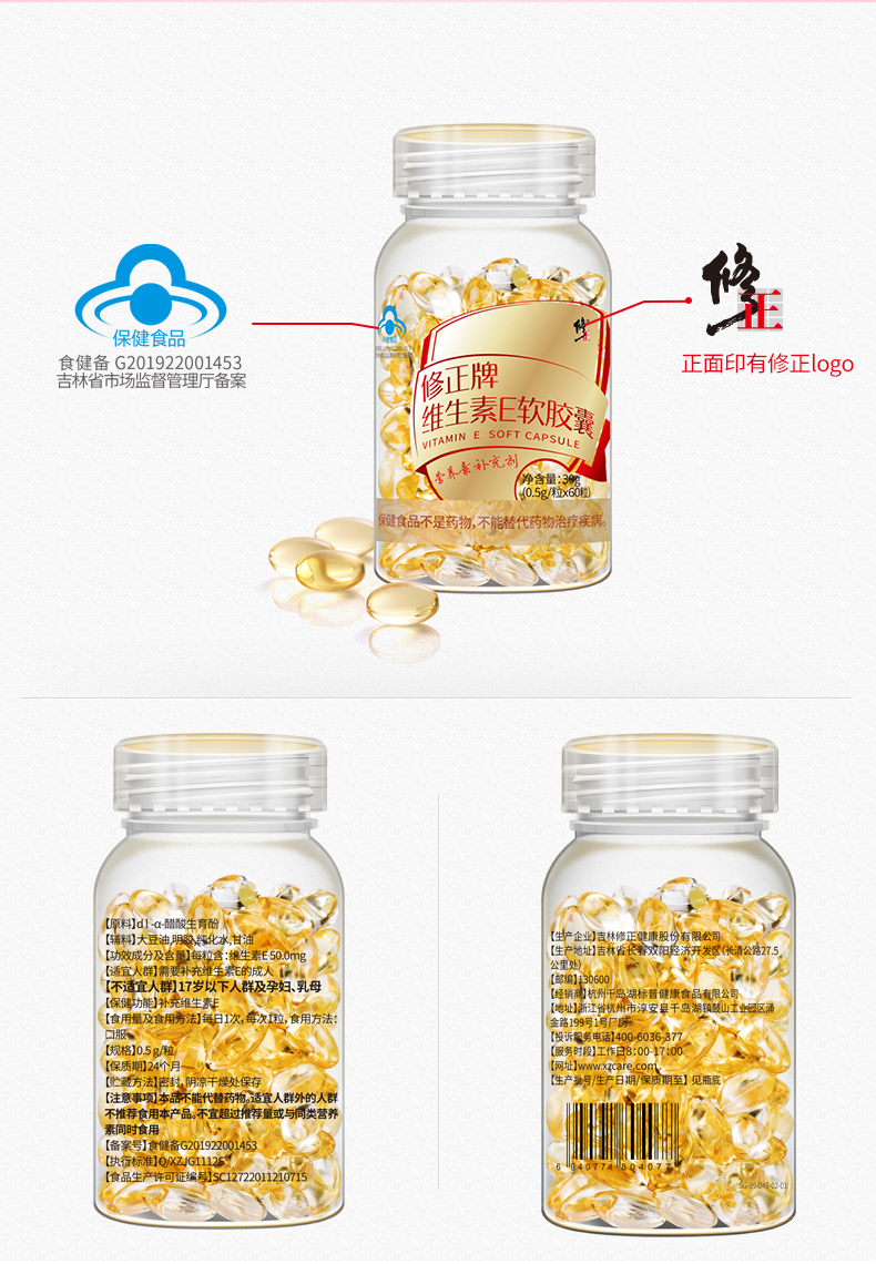 【蓝帽认证!】肌肤保新“肌”密!修正维E软胶囊~萃取天然维E精华,每粒含量高达50mg!内服外用,每天1粒,淡化斑纹痘印~唤醒肌肤红润光泽,让你的美丽由内而外的散发出来!